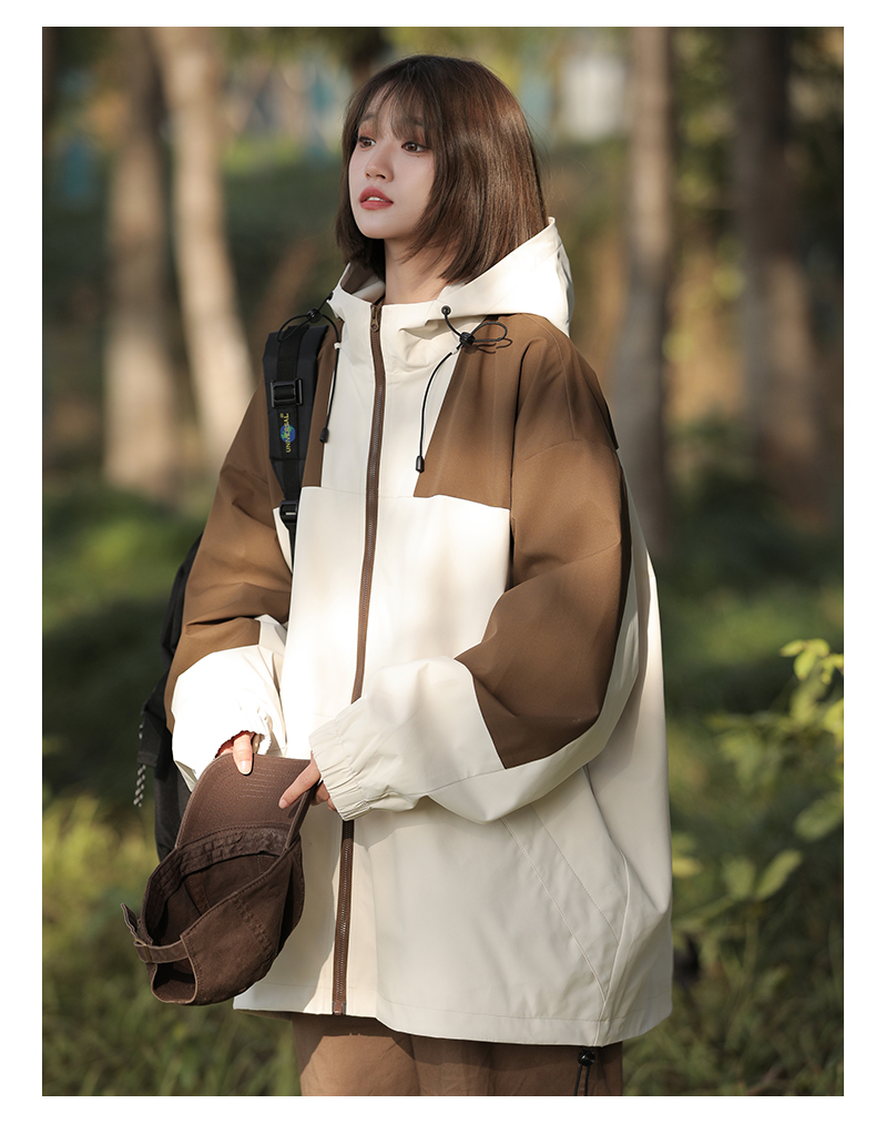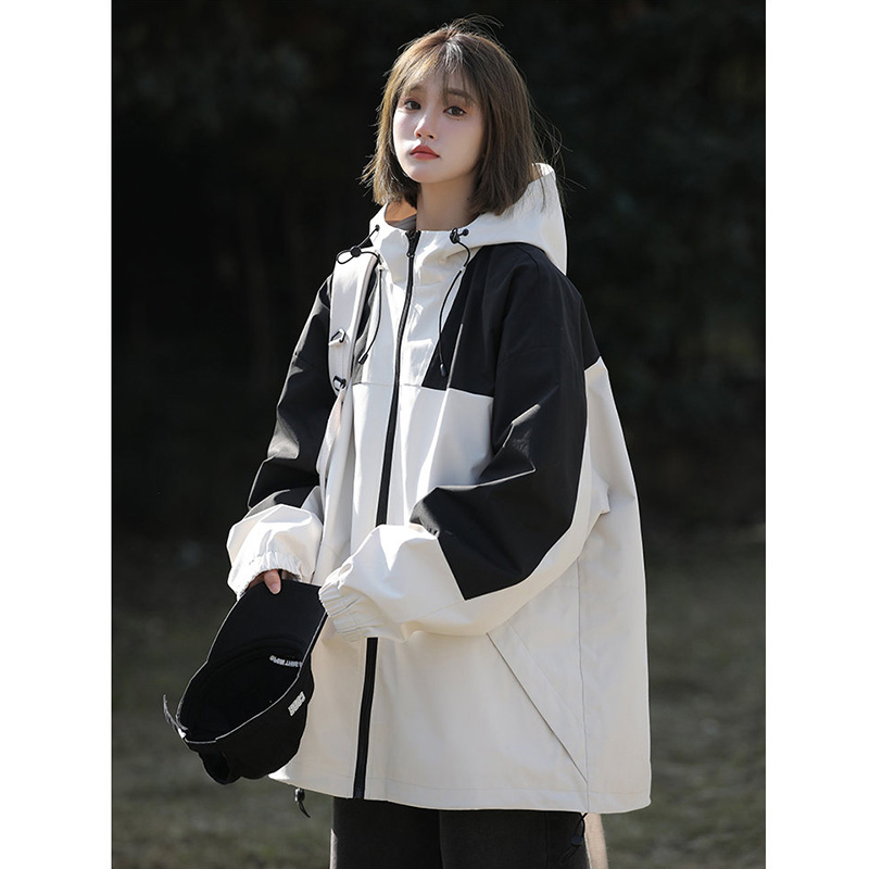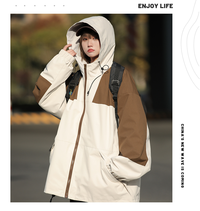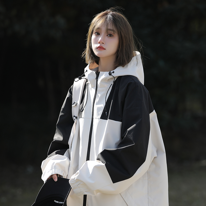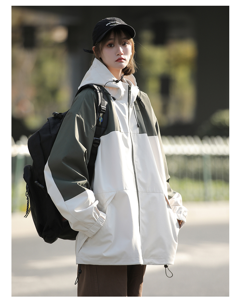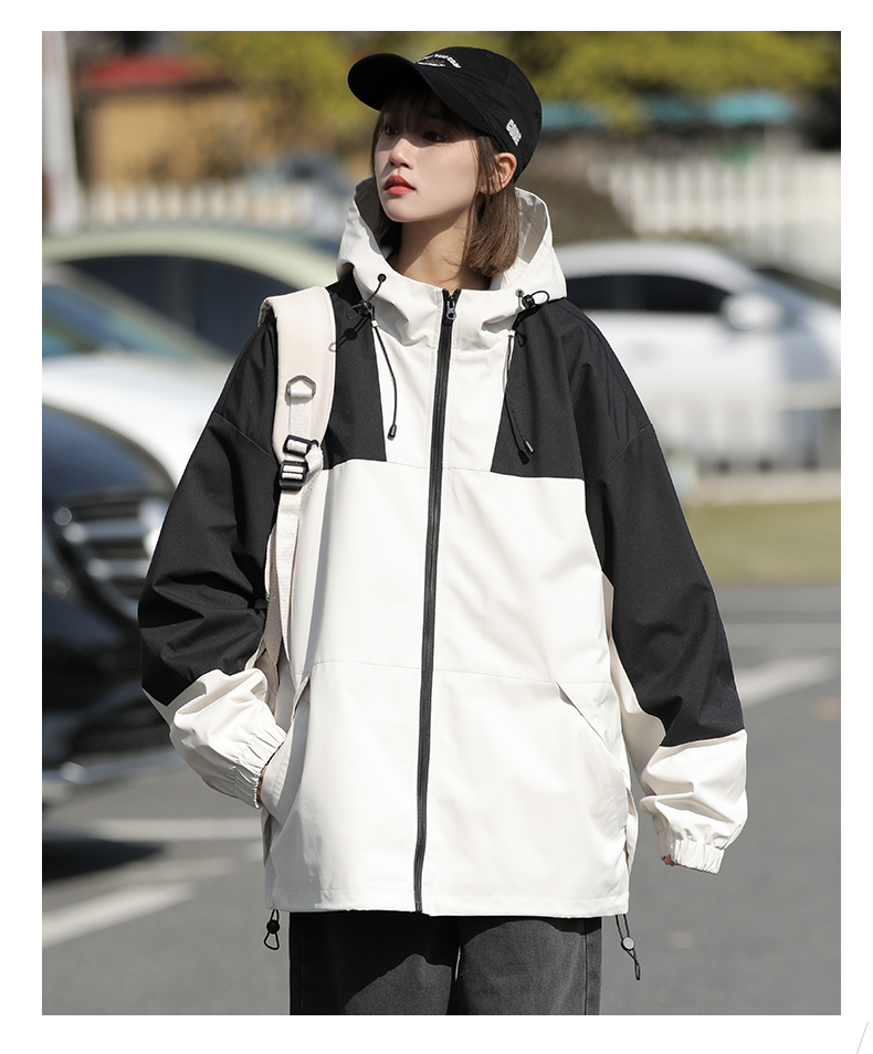黑白拼接美式機能衝鋒衣三合一戶外情侶外套潮牌短版風衣工裝夾克