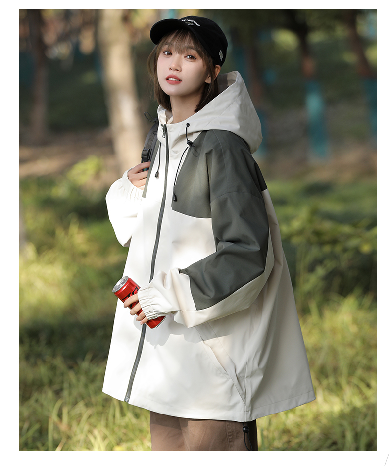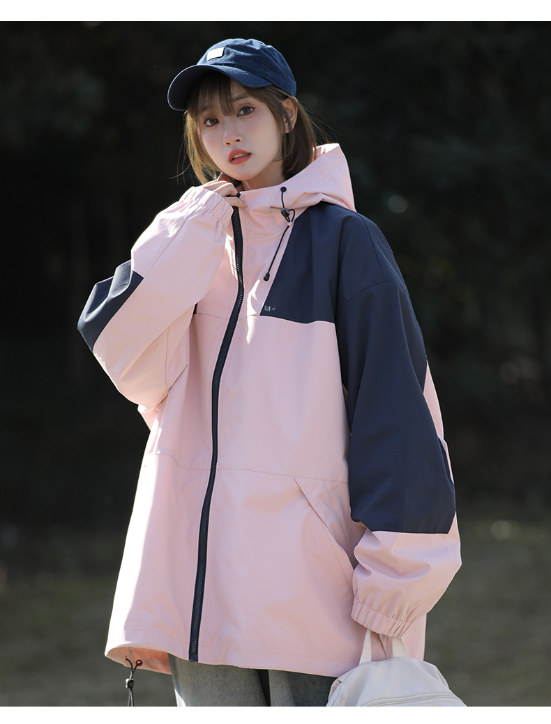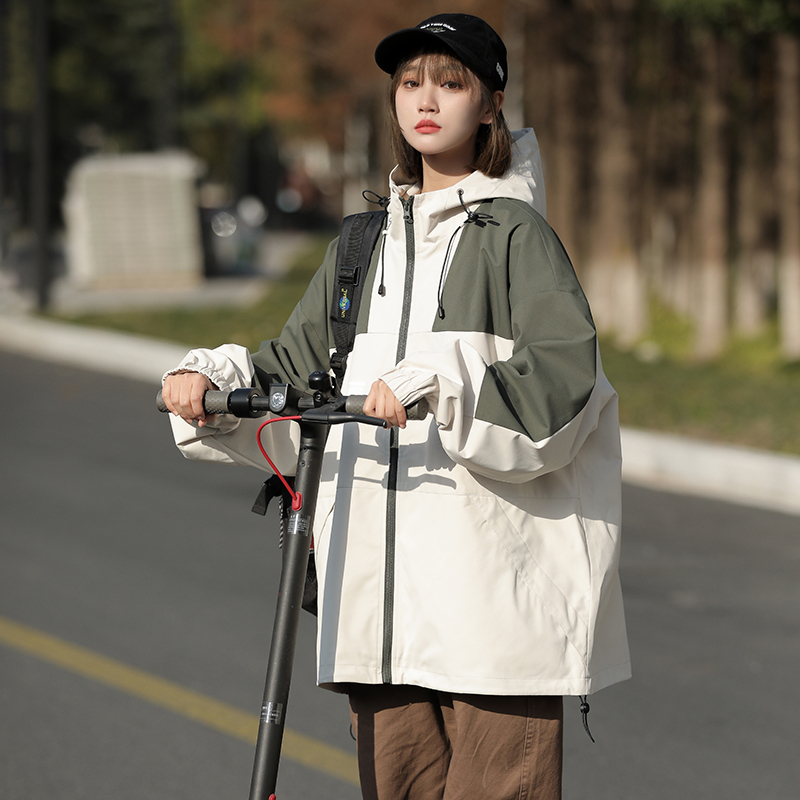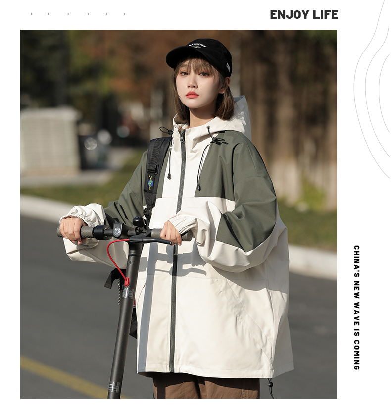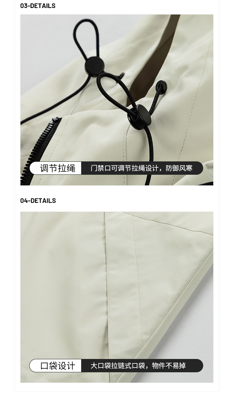 黑白拼接美式機能衝鋒衣三合一戶外情侶外套潮牌短版風衣工裝夾克