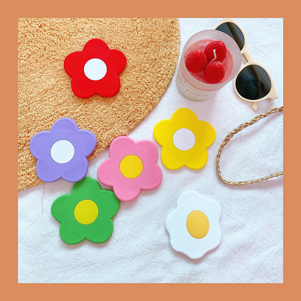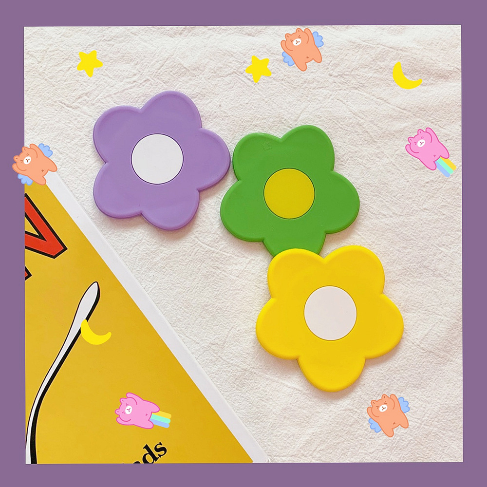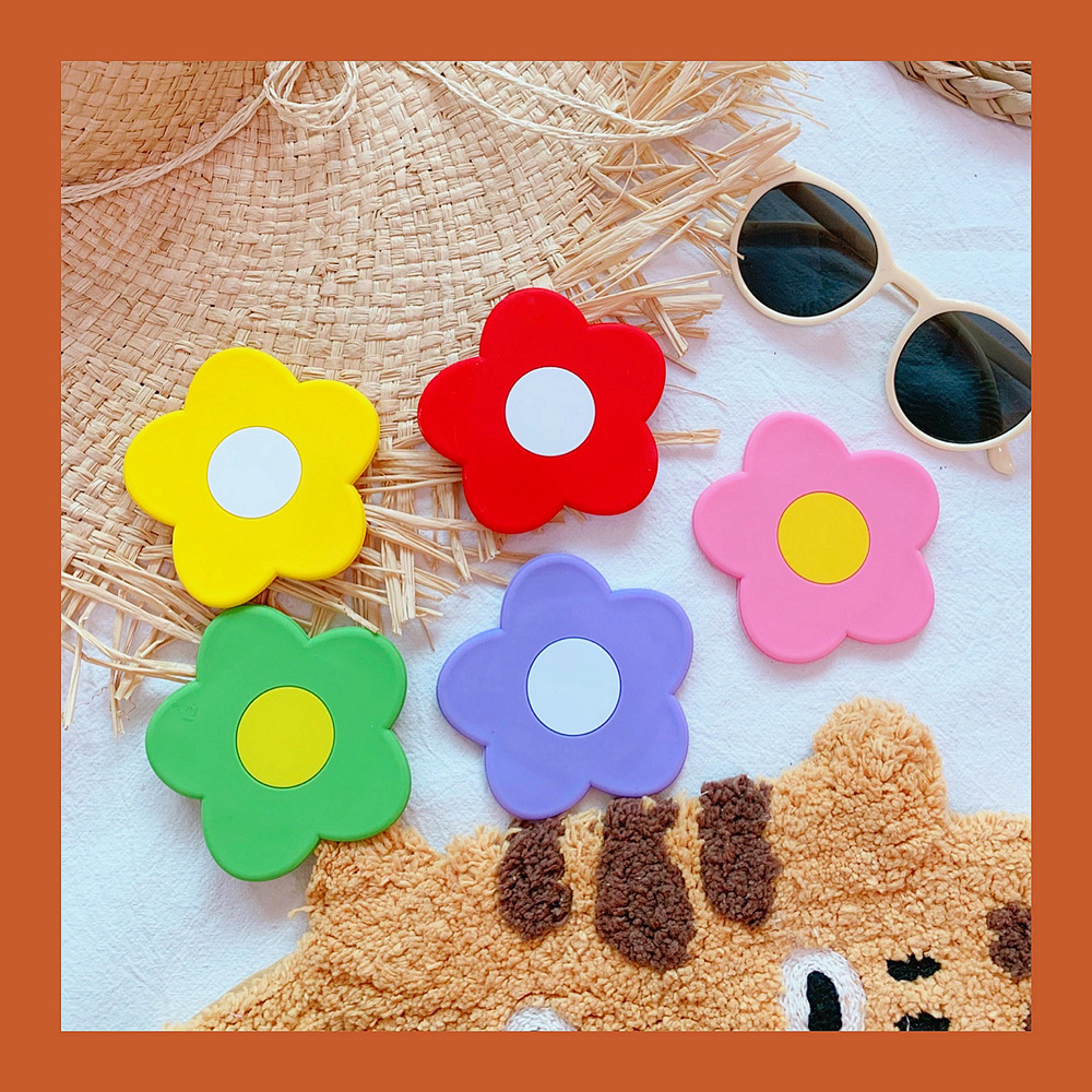 韩版ins风彩色花朵随身镜便携化妆镜子小号可爱创意硅胶小镜子