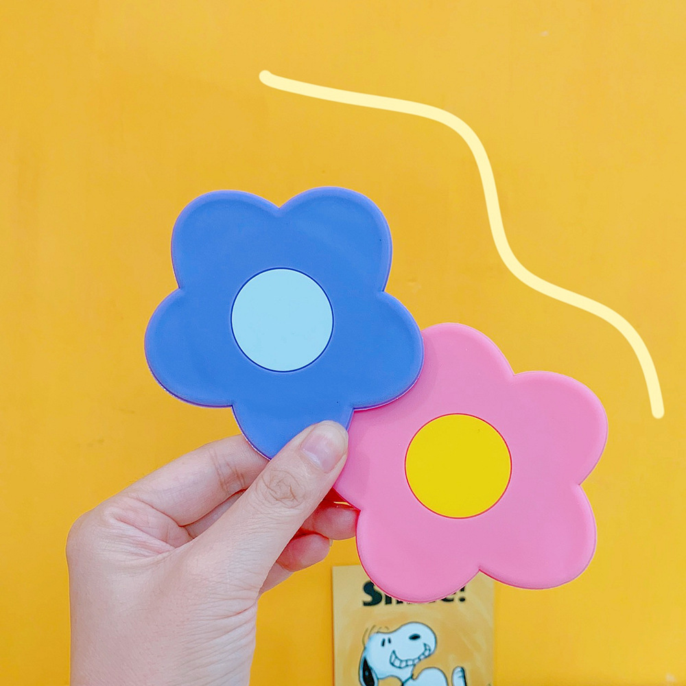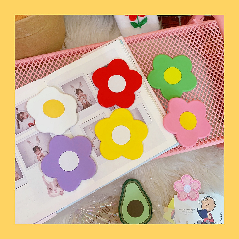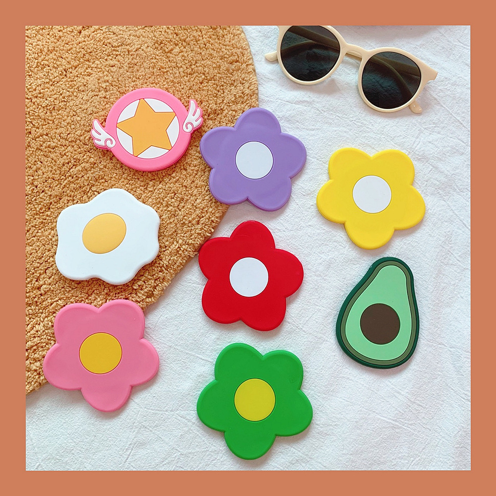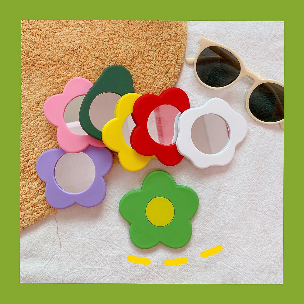 韩版ins风彩色花朵随身镜便携化妆镜子小号可爱创意硅胶小镜子