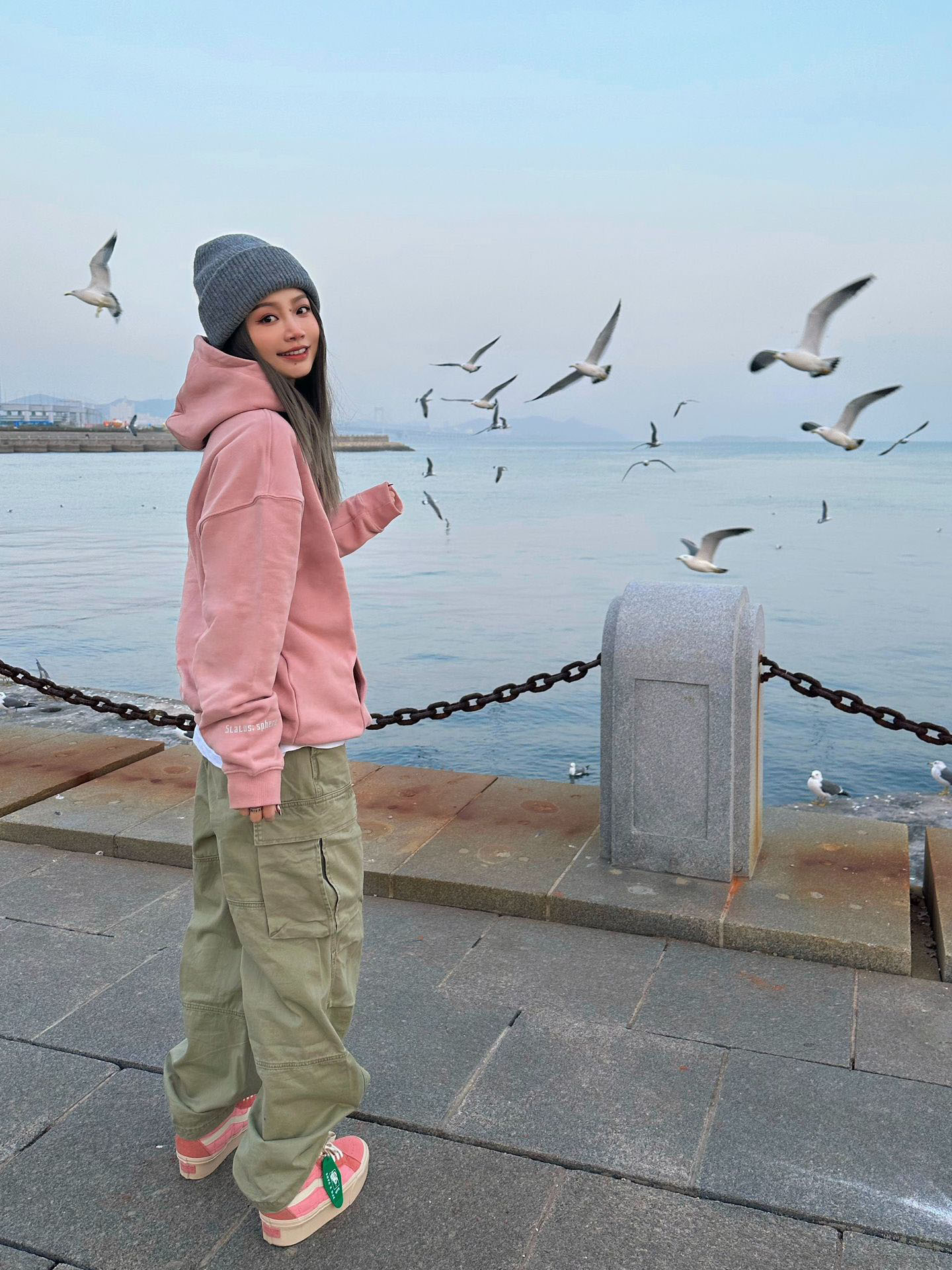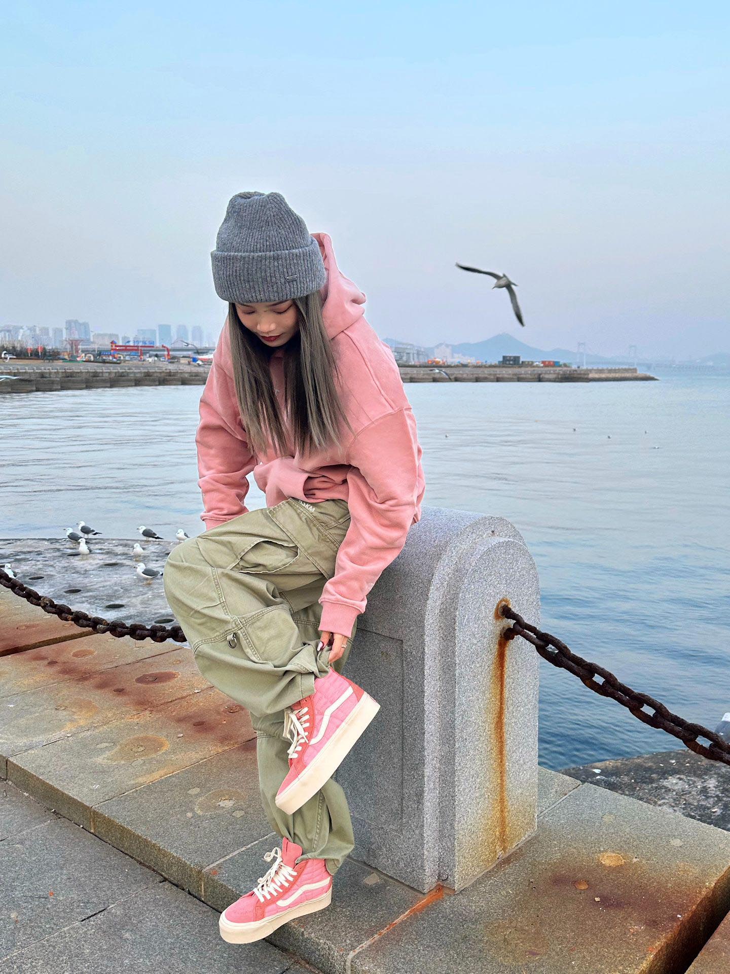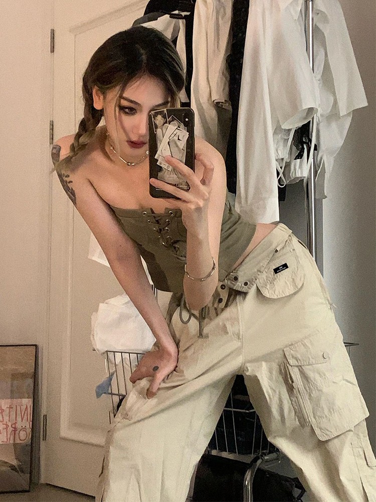 綠色美式工裝褲子女春季潮牌復古高街vibe風小個子寬鬆闊腿直筒褲