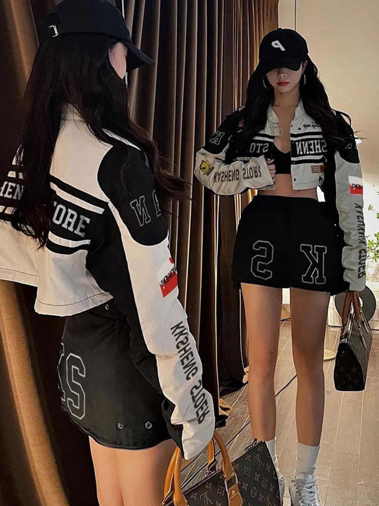 情侶可拆卸機車棒球服外套女秋季薄vintage美式復古賽車辣妹套裝