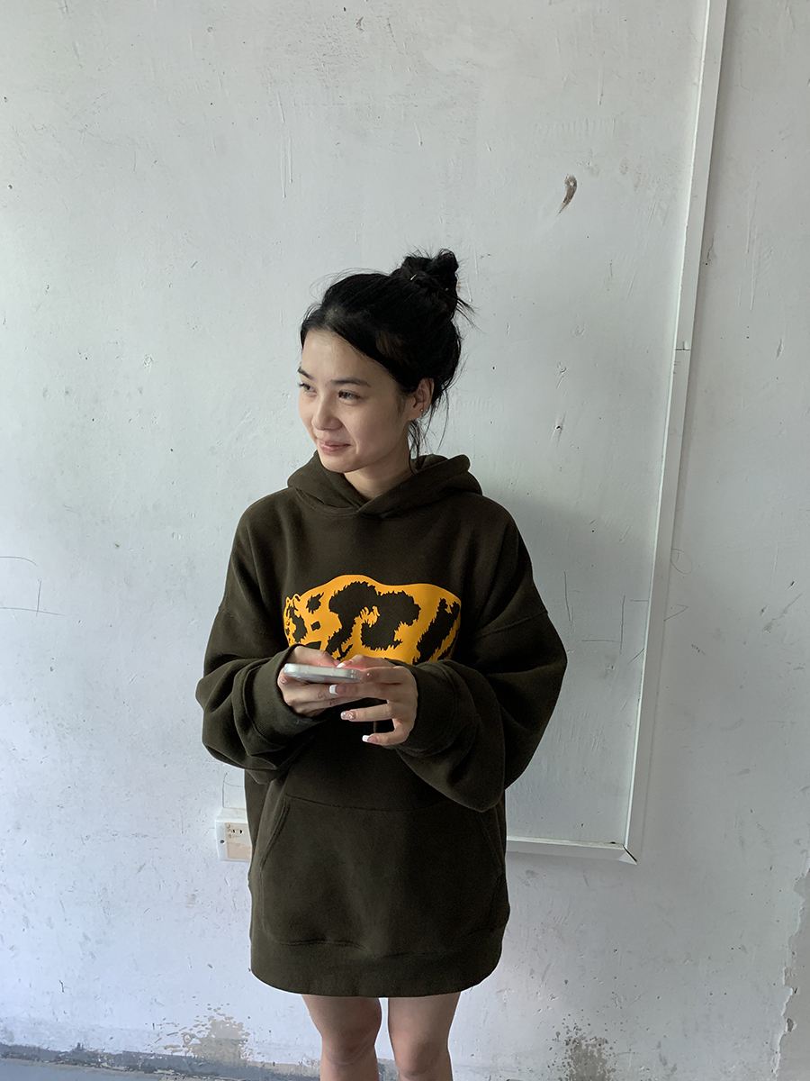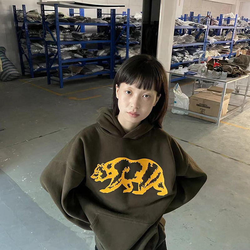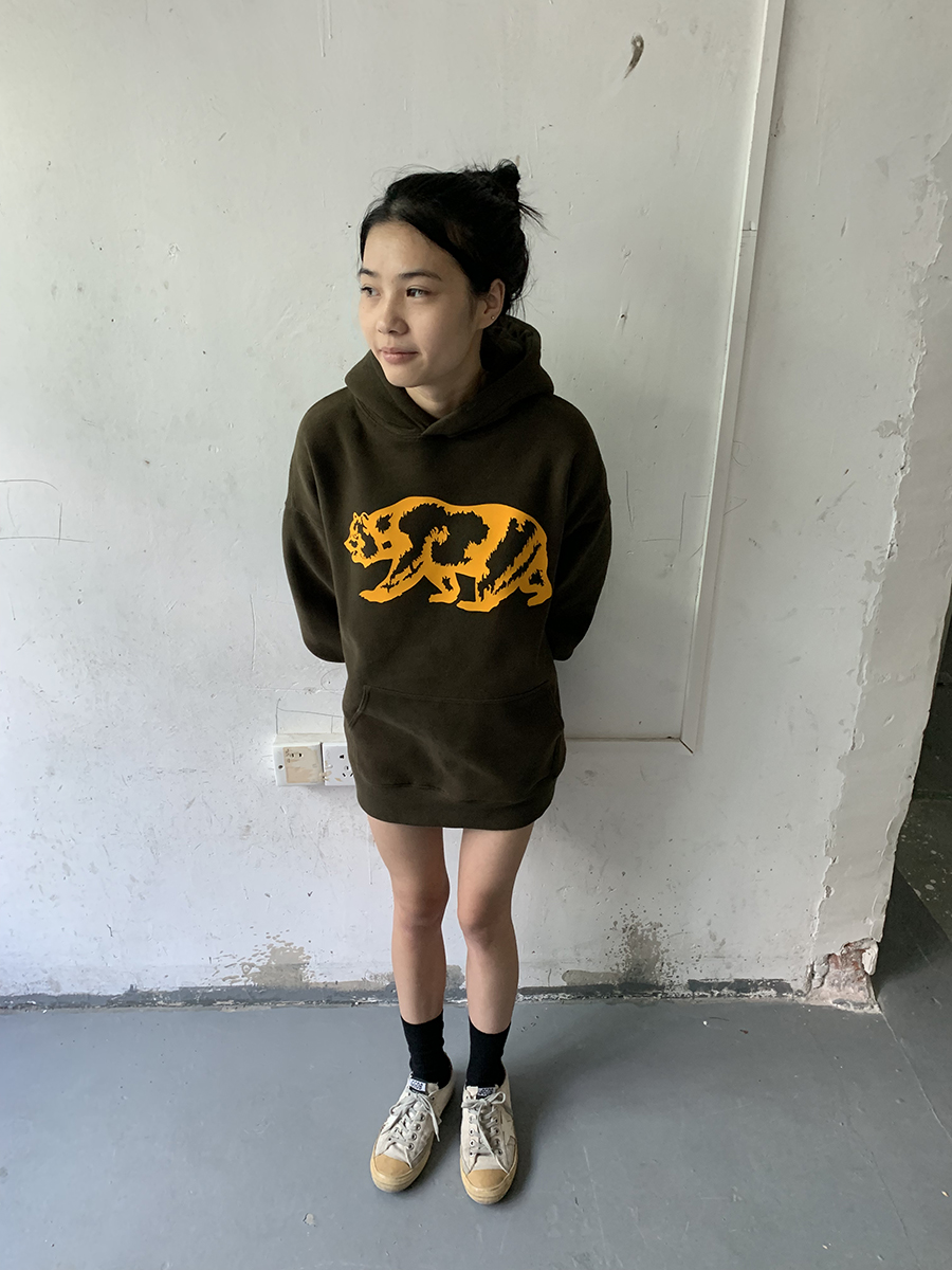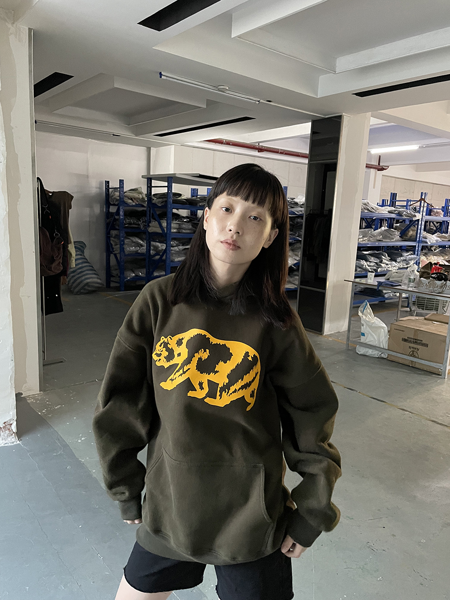 我睡著了 原創圖案 暗綠色寬鬆熊連帽運動衫 男女款