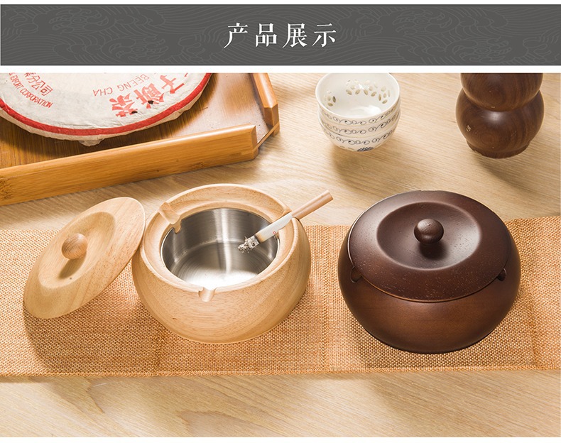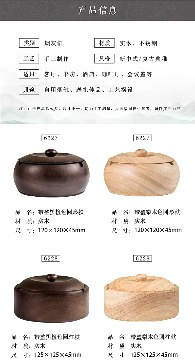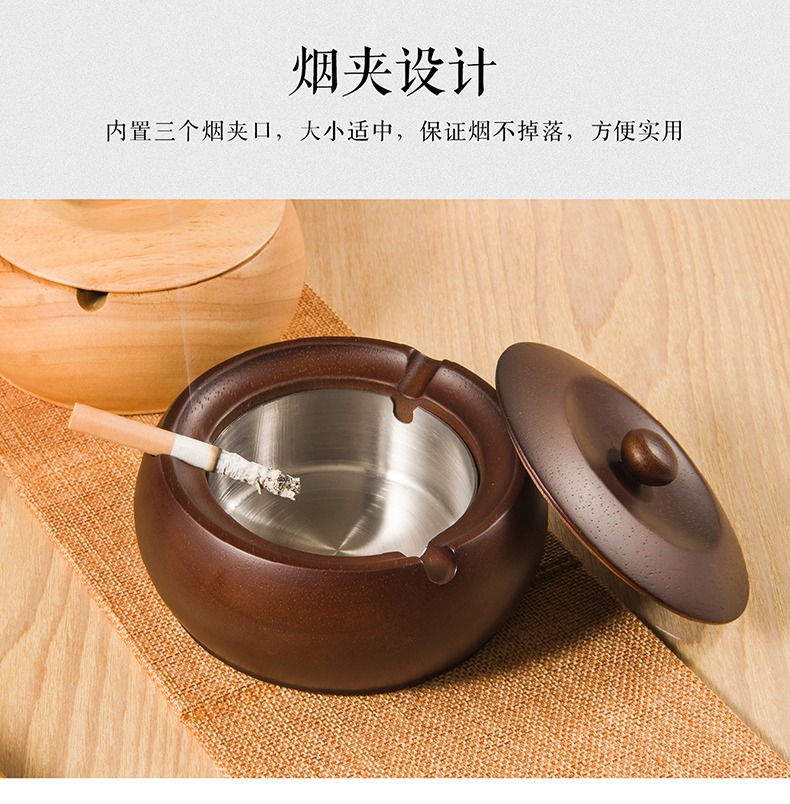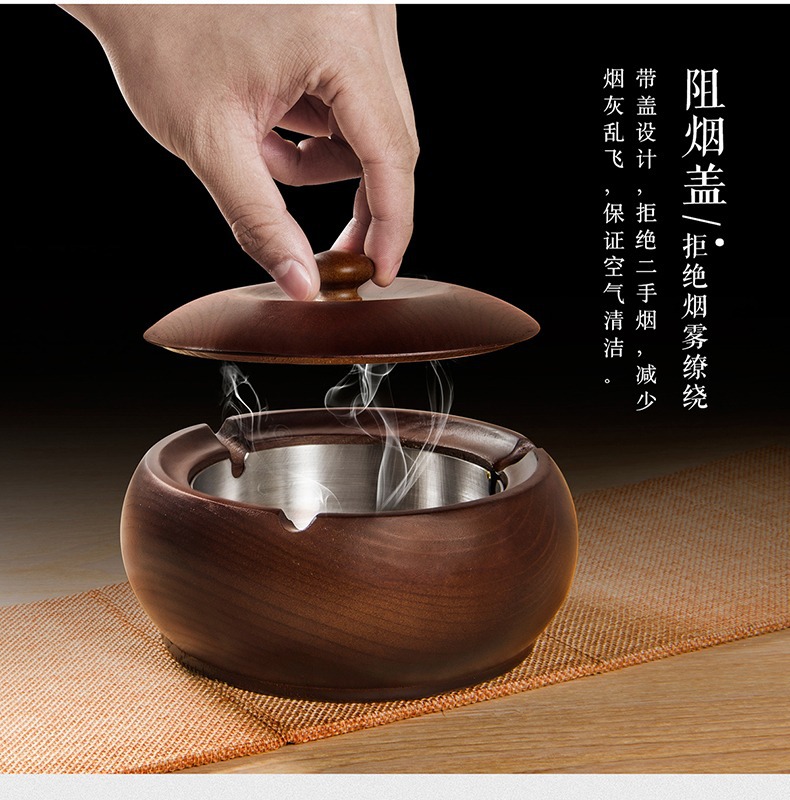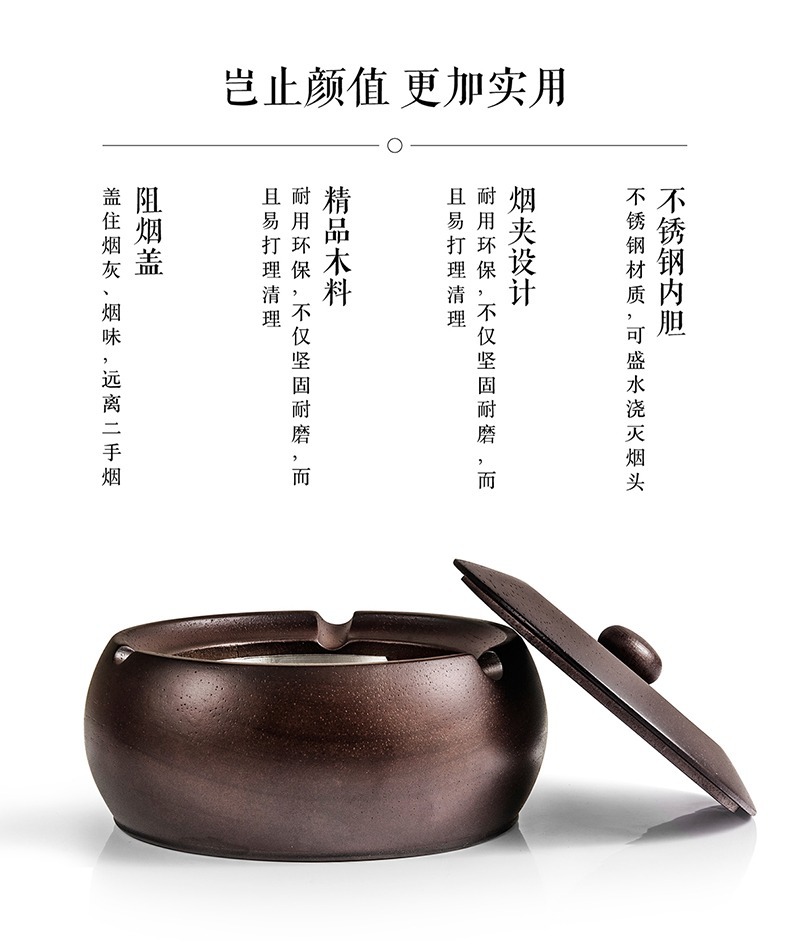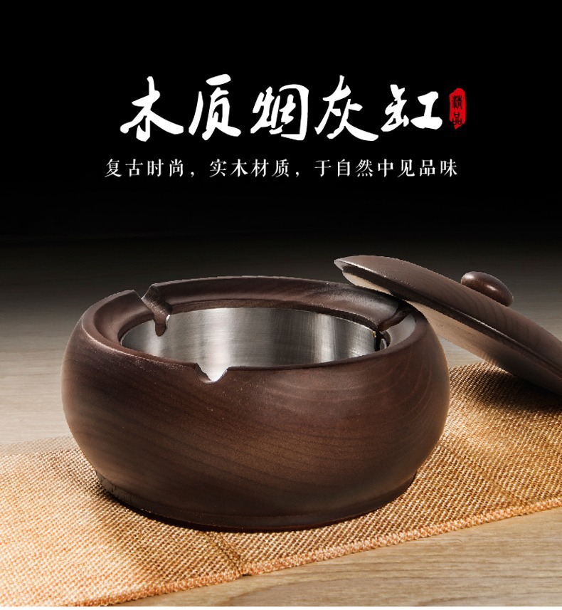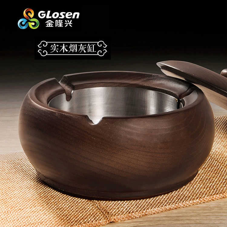 金隆兴烟灰缸实木复古中式办公室客厅茶几木质带盖烟灰缸一件代发