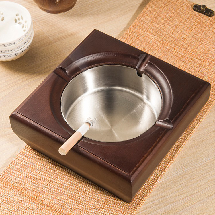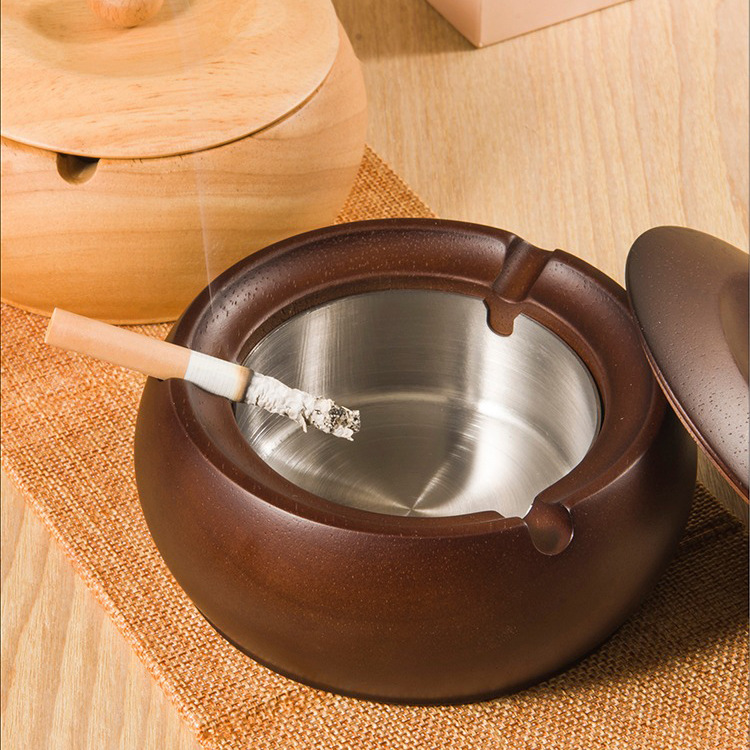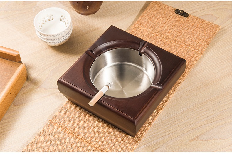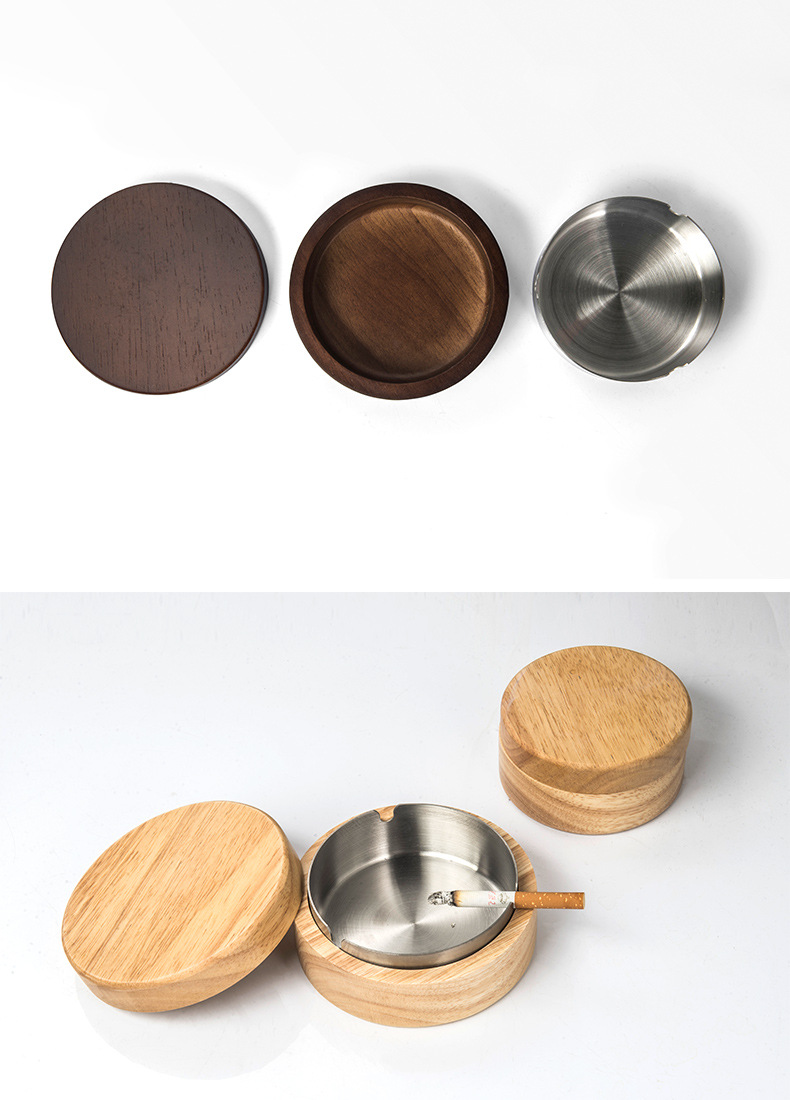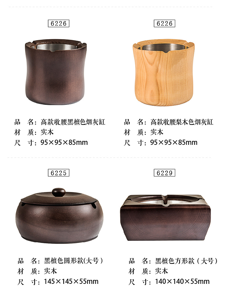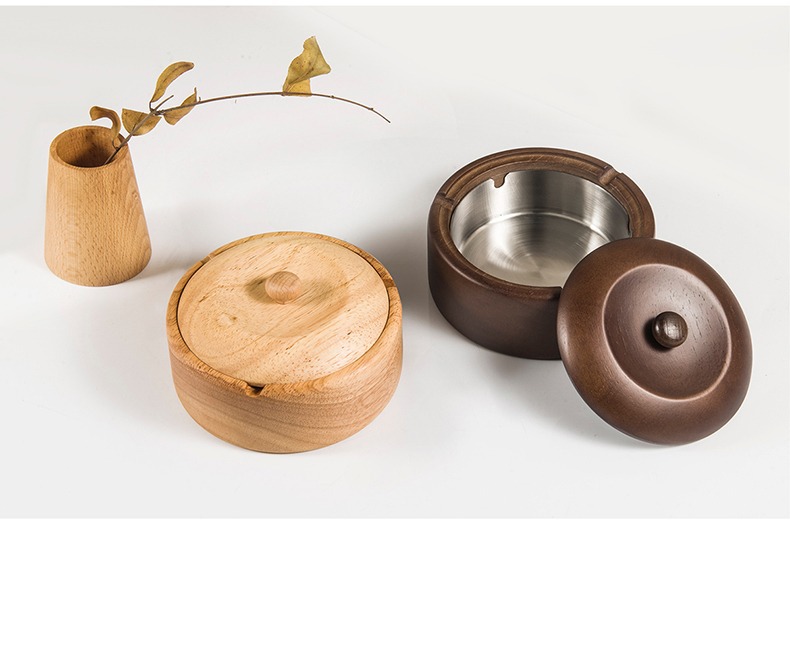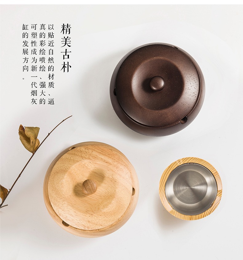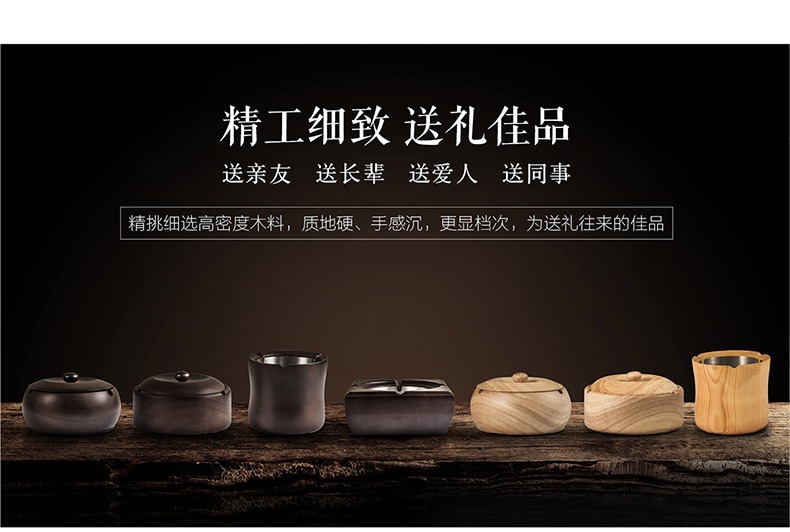 金隆兴烟灰缸实木复古中式办公室客厅茶几木质带盖烟灰缸一件代发