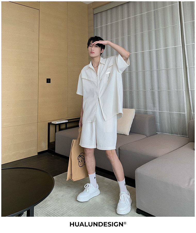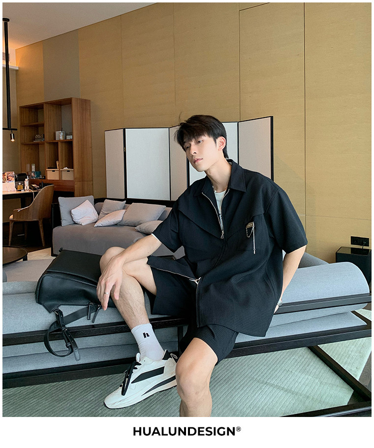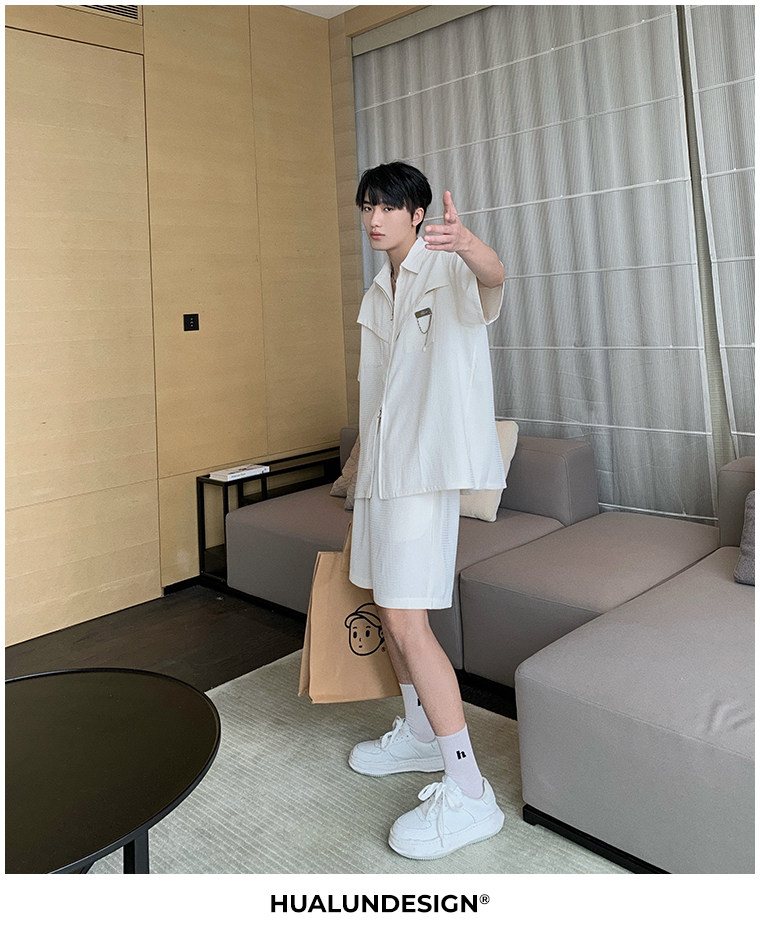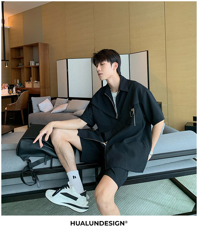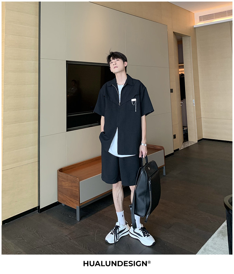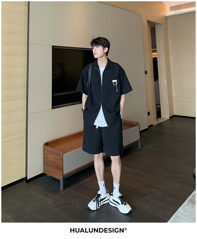 Hualun男士帥氣搭配運動套裝夏季新款痞帥爆款男裝休閒百搭兩件套