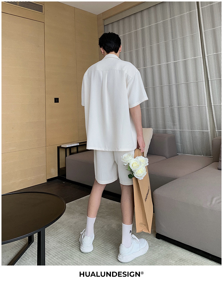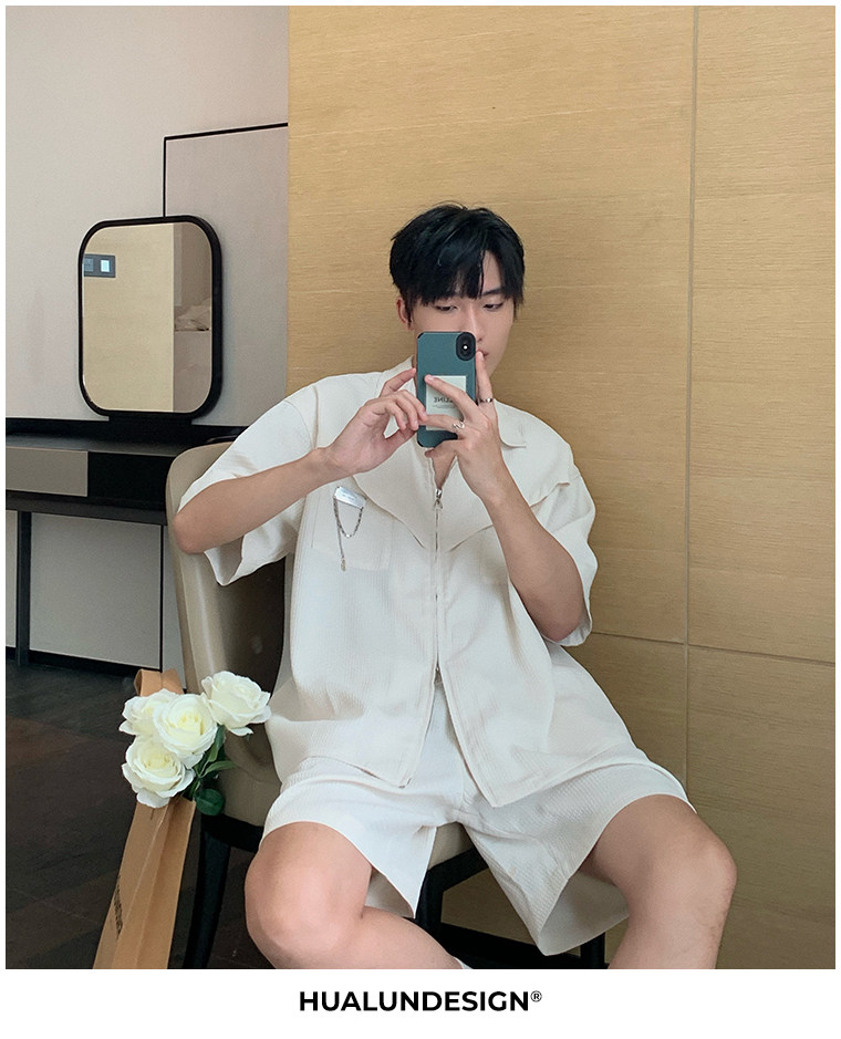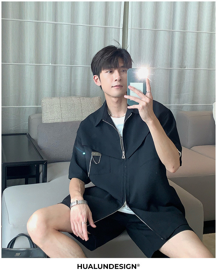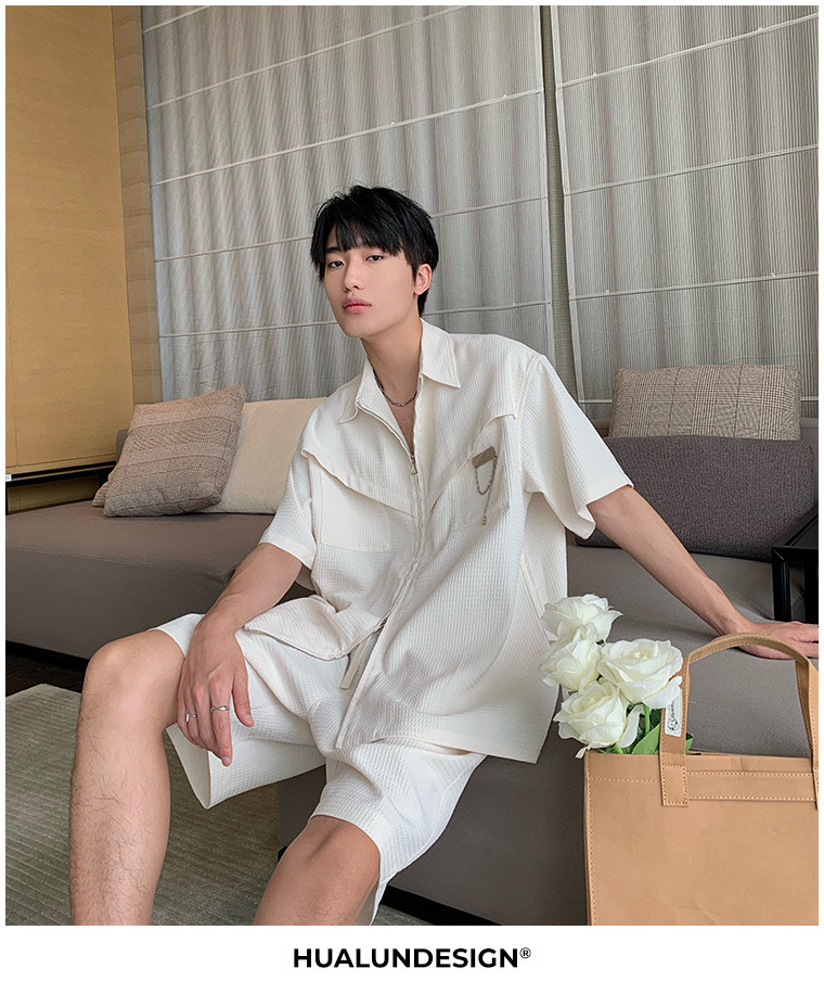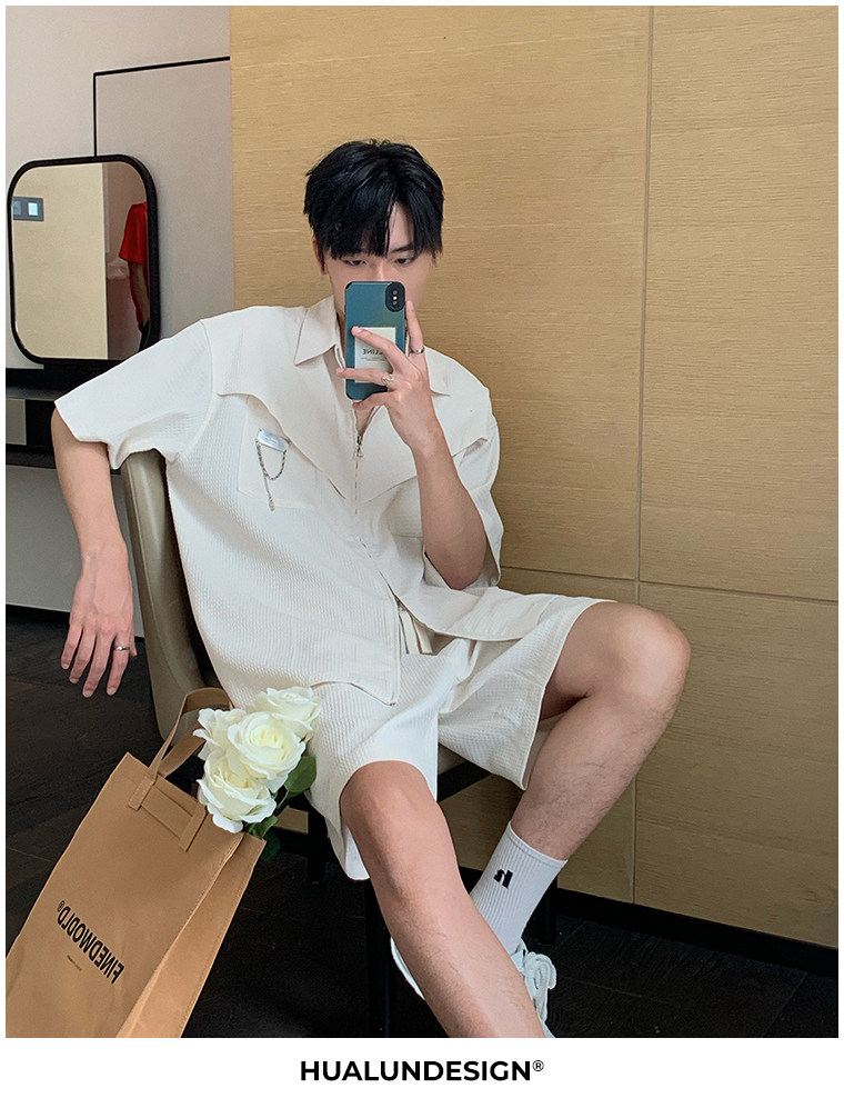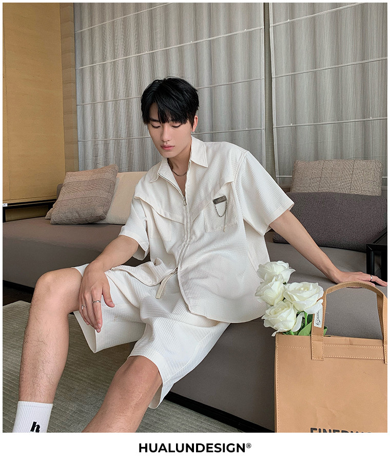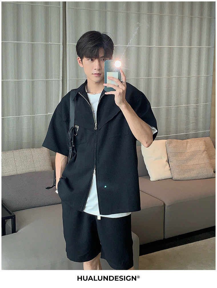 Hualun男士帥氣搭配運動套裝夏季新款痞帥爆款男裝休閒百搭兩件套