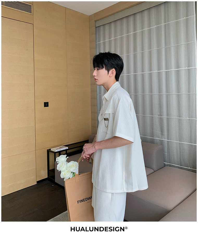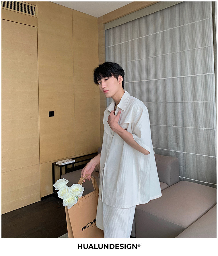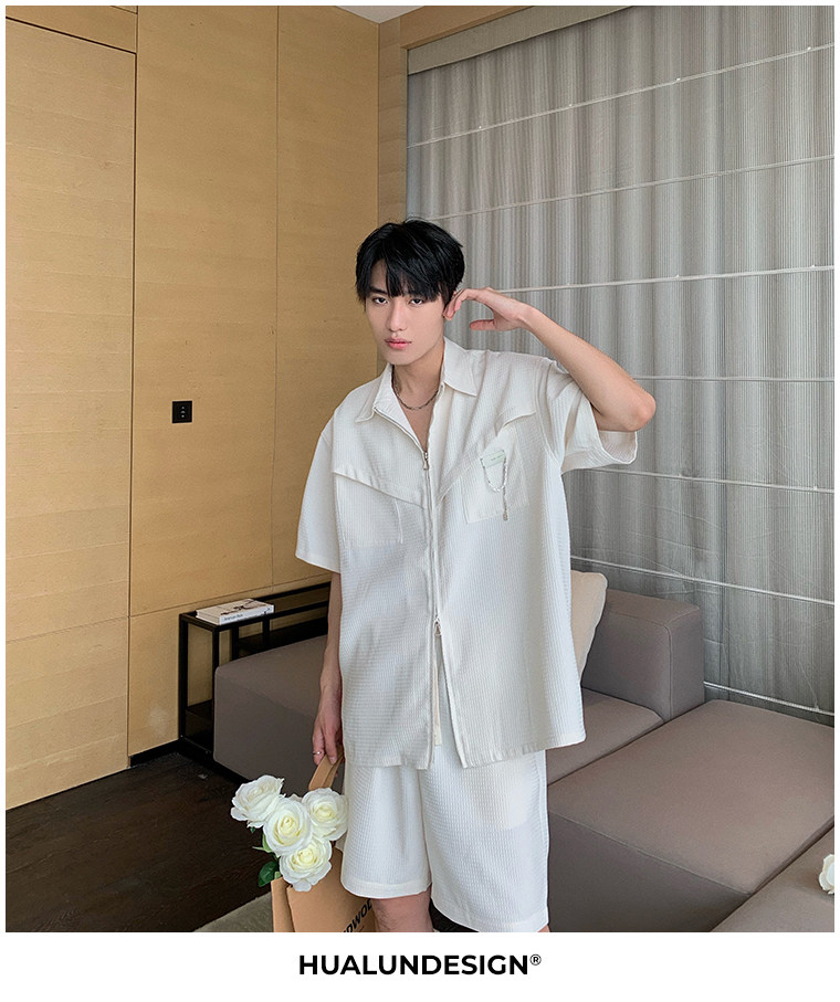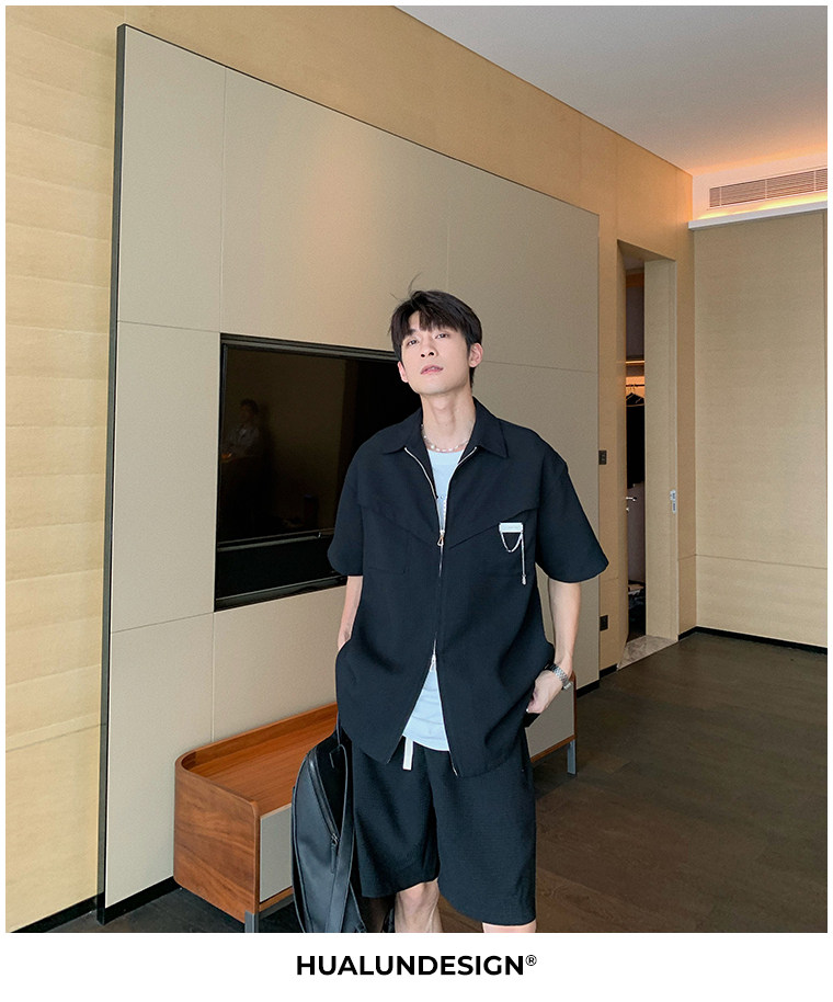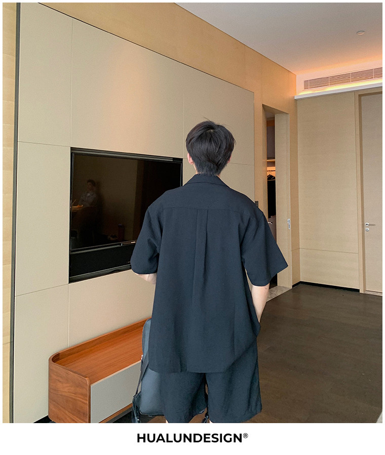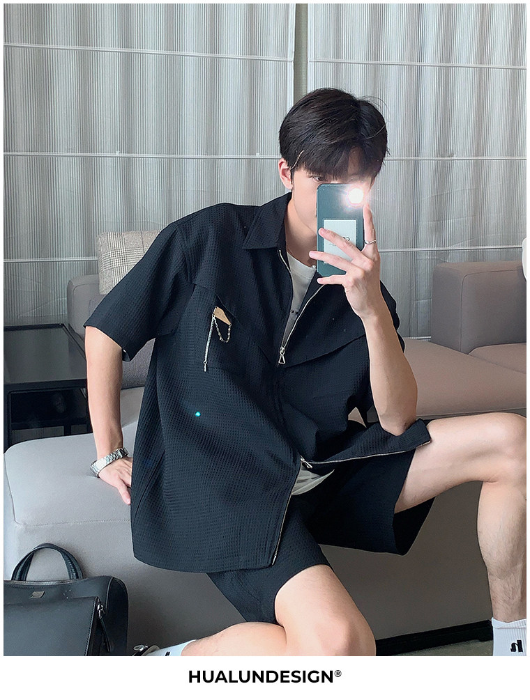 Hualun男士帥氣搭配運動套裝夏季新款痞帥爆款男裝休閒百搭兩件套