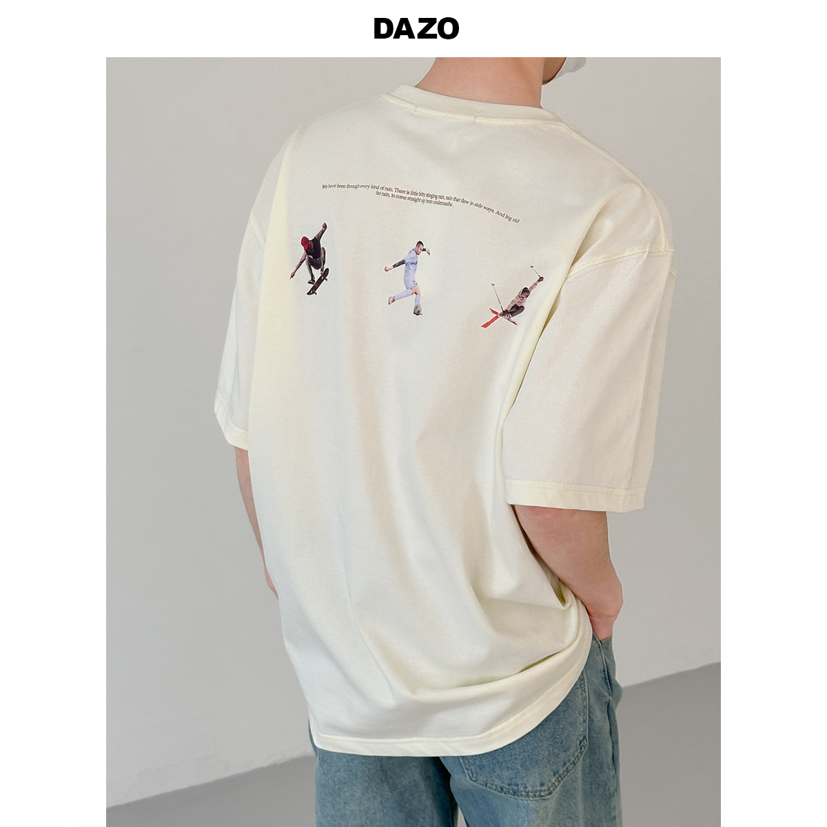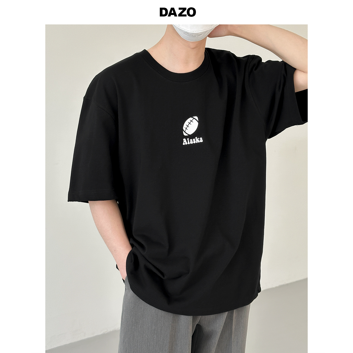 DAZO 夏季純棉短袖T恤男趣味少年感小清新五分袖上衣男韓版寬鬆