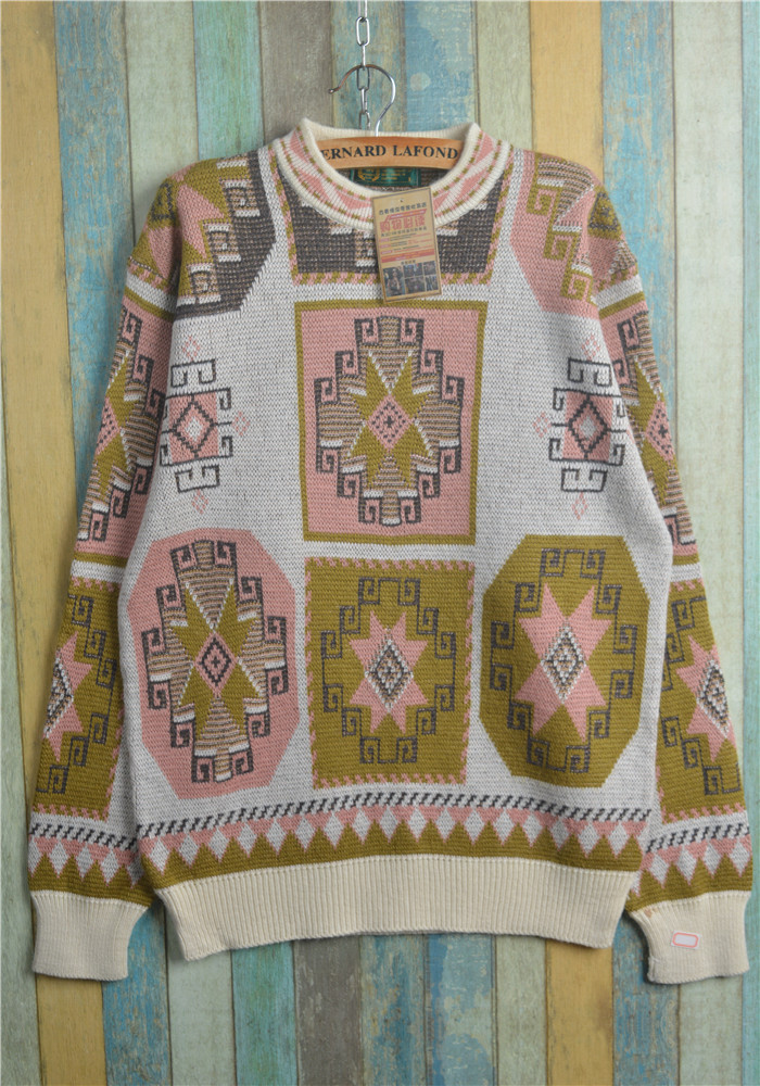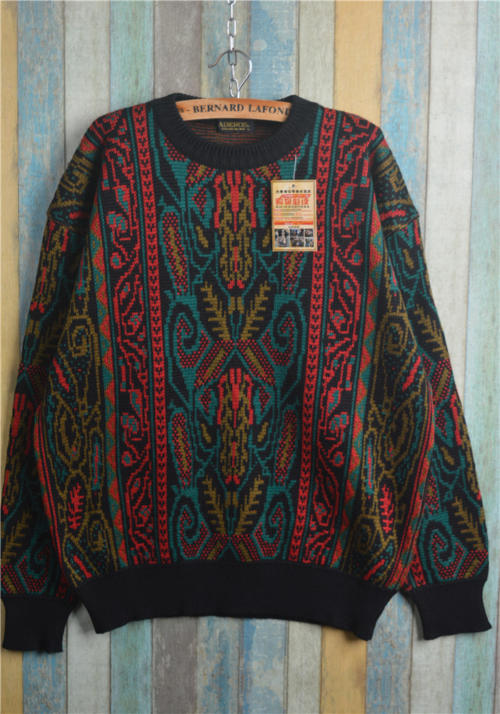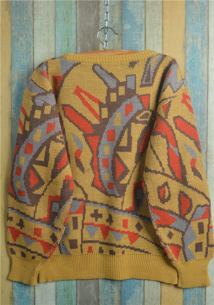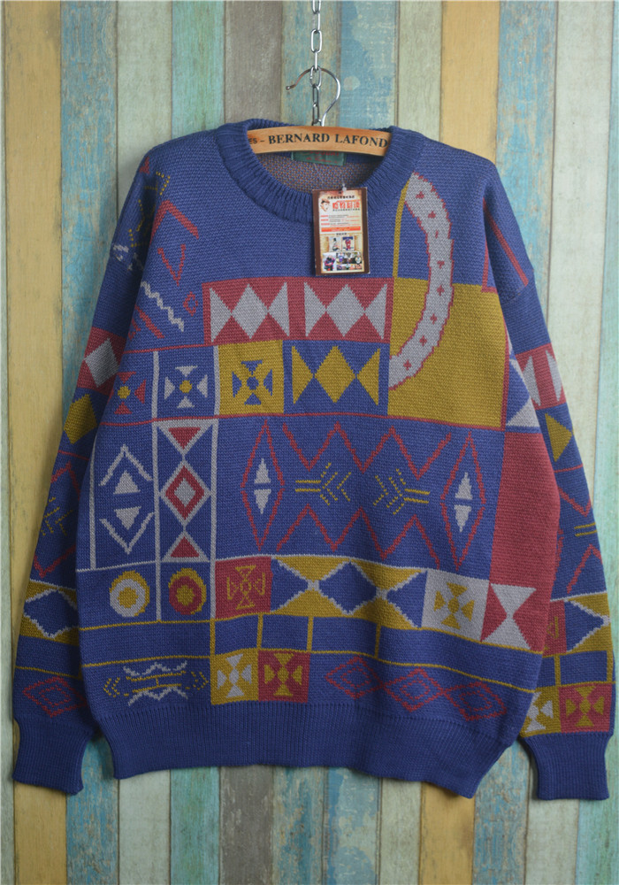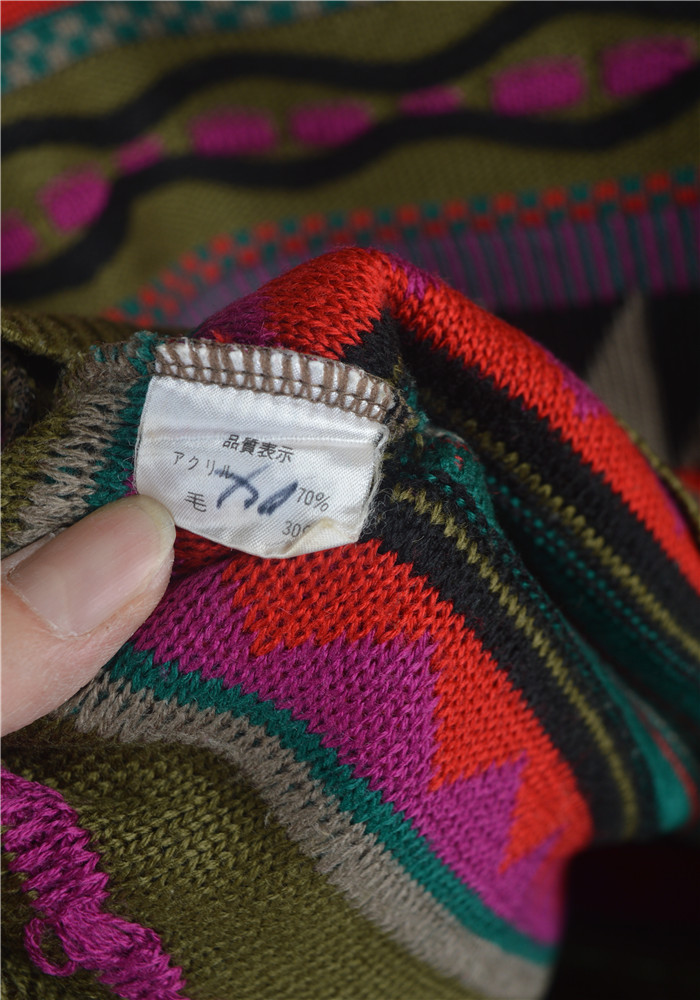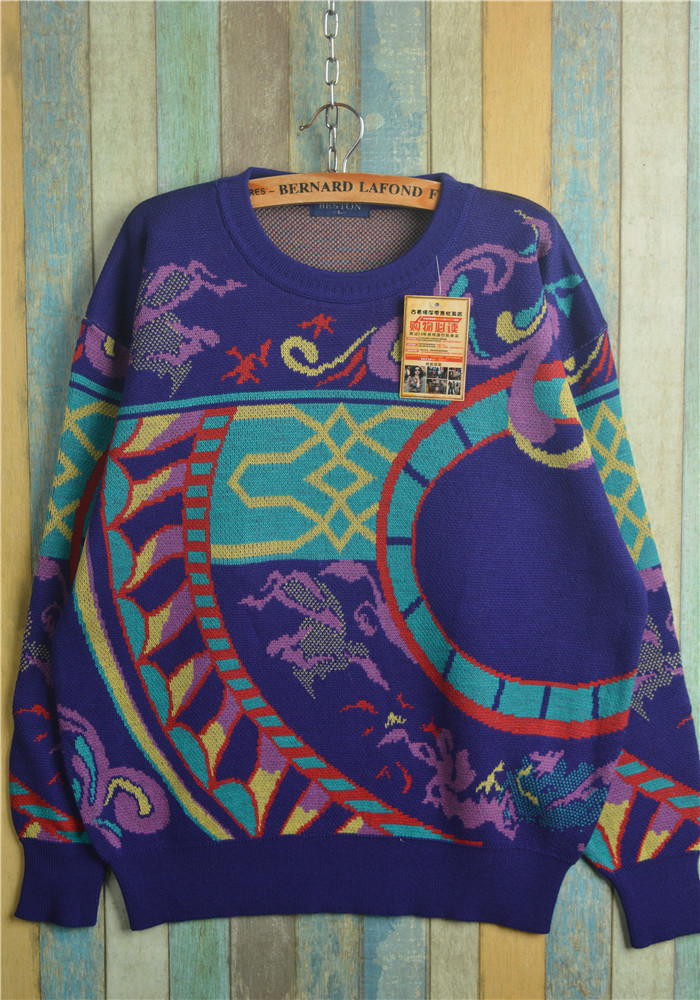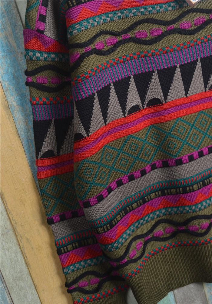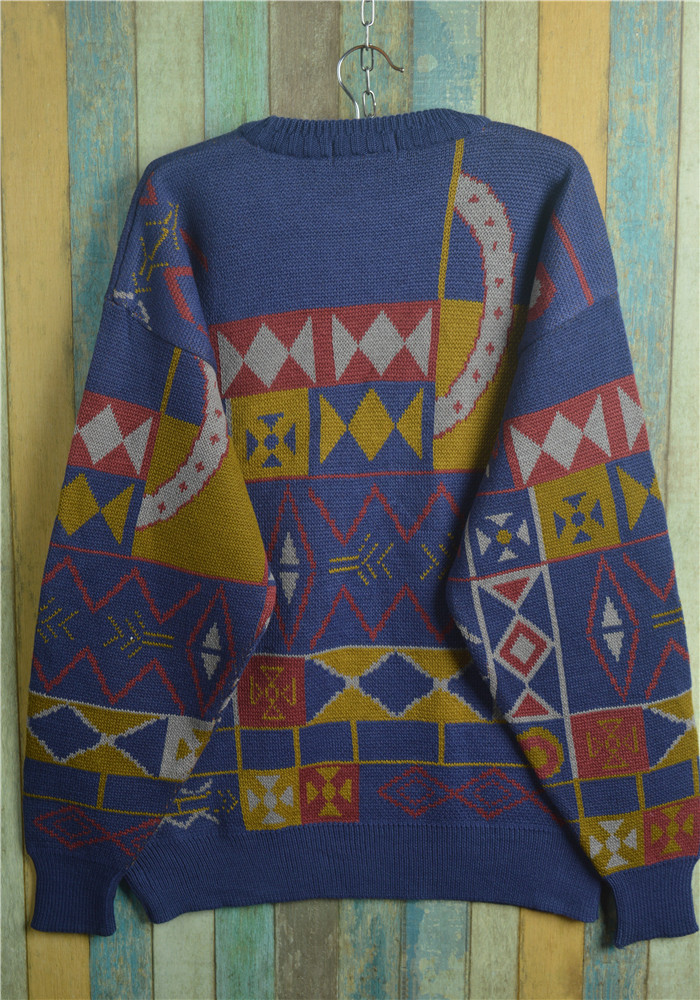 Vintage古著精品民族風嬉哈風格霹靂復古波普七彩圖案套頭羊毛衣