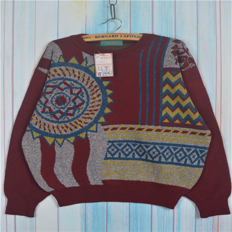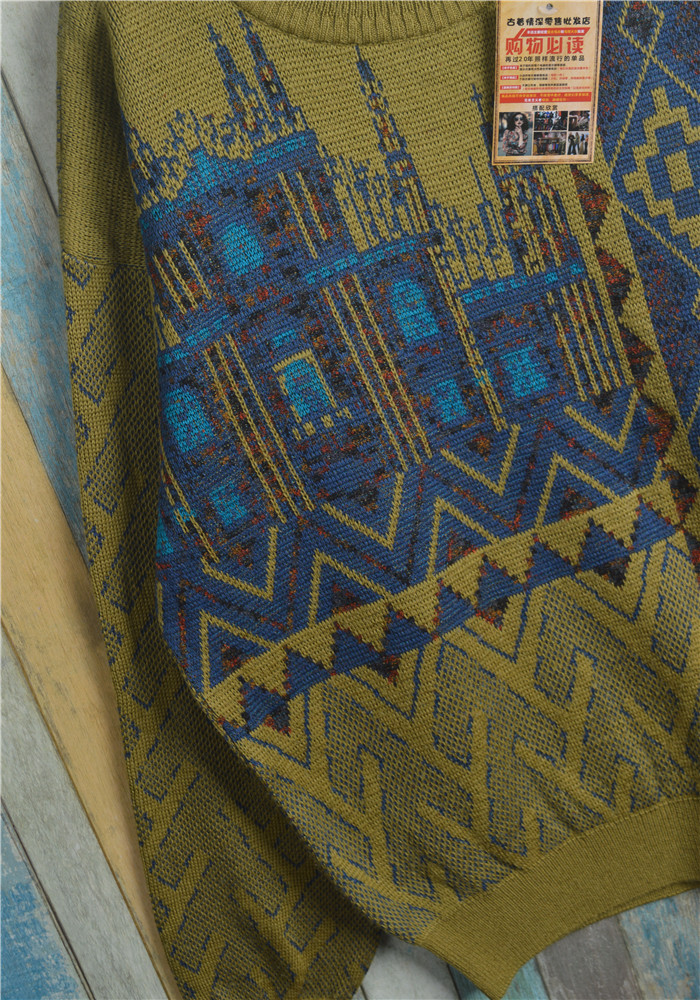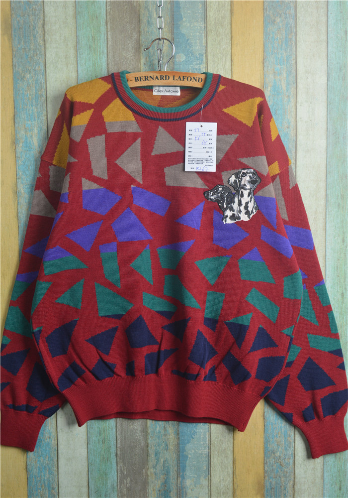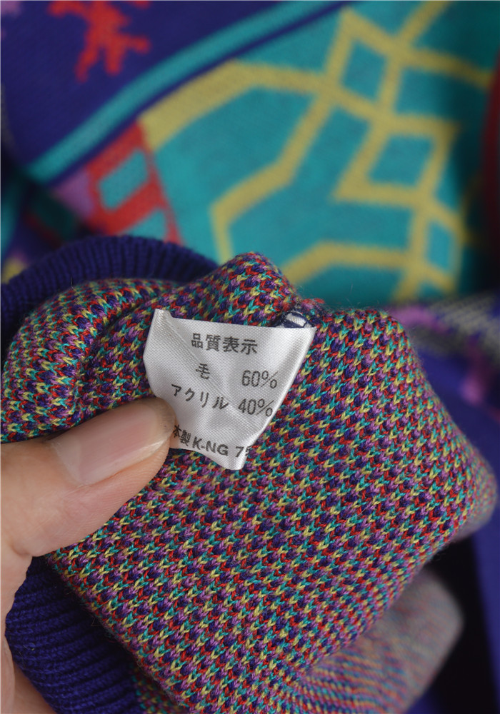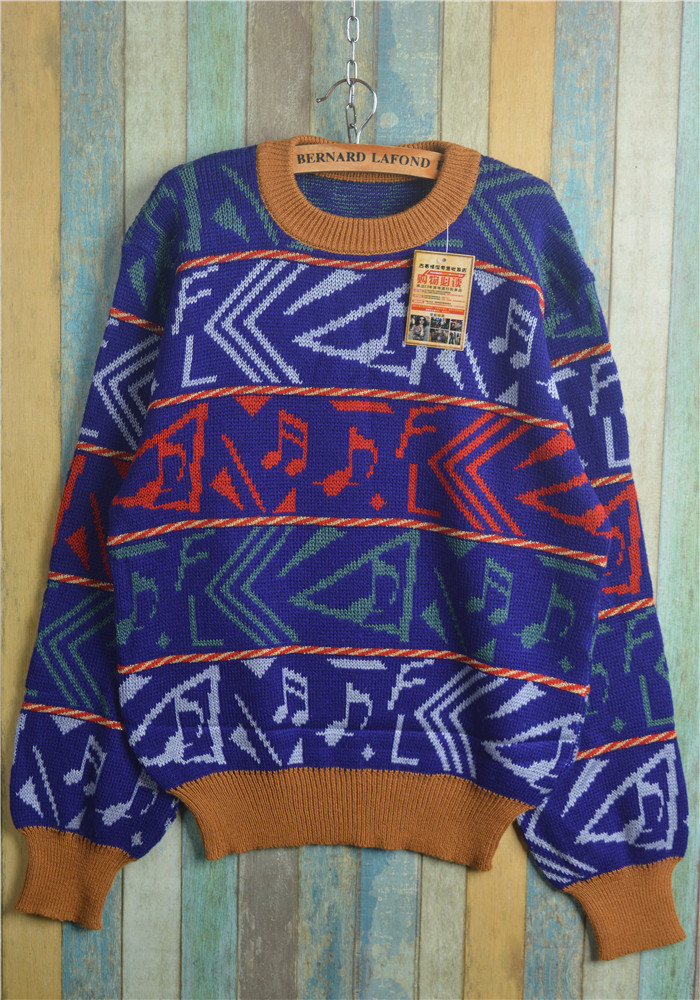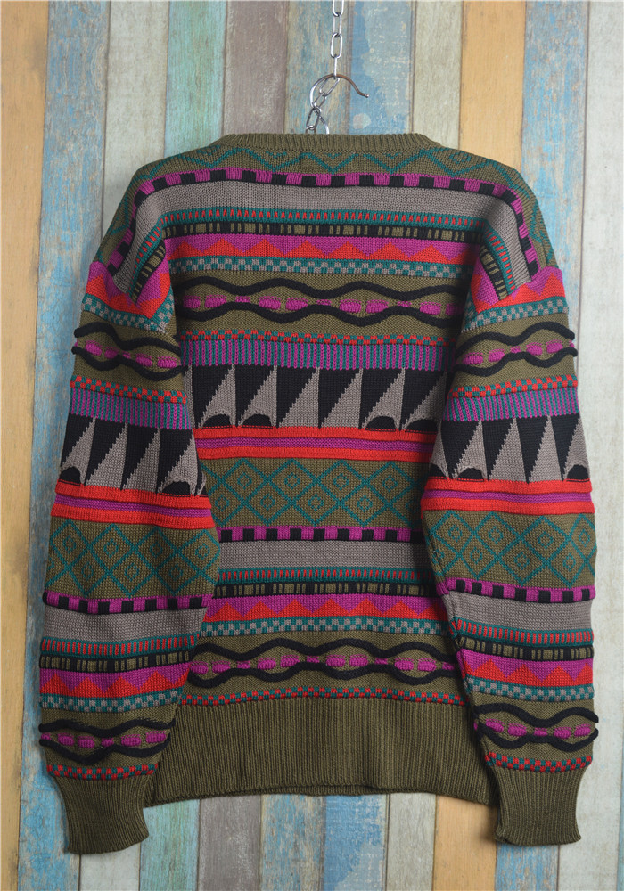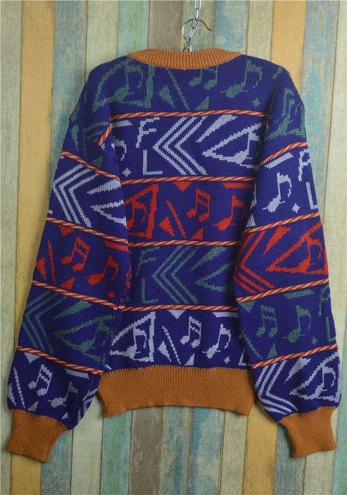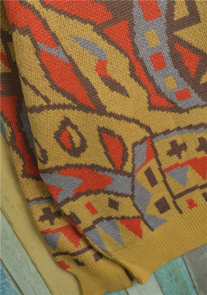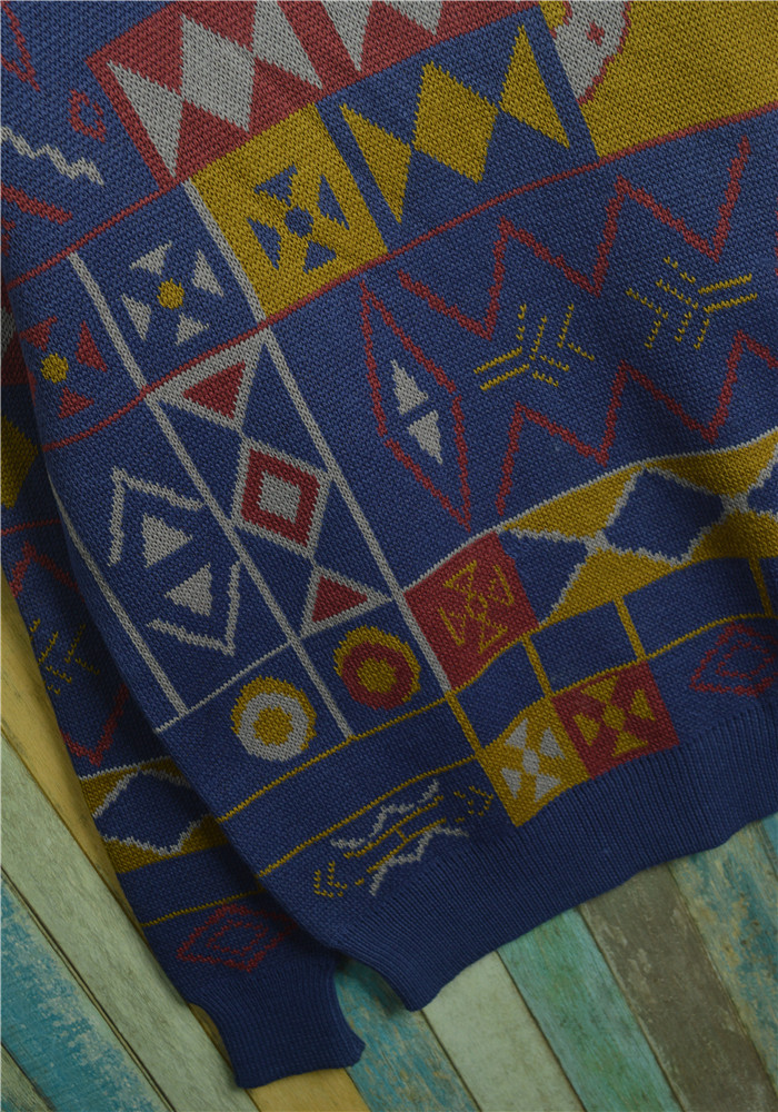 Vintage古著精品民族風嬉哈風格霹靂復古波普七彩圖案套頭羊毛衣