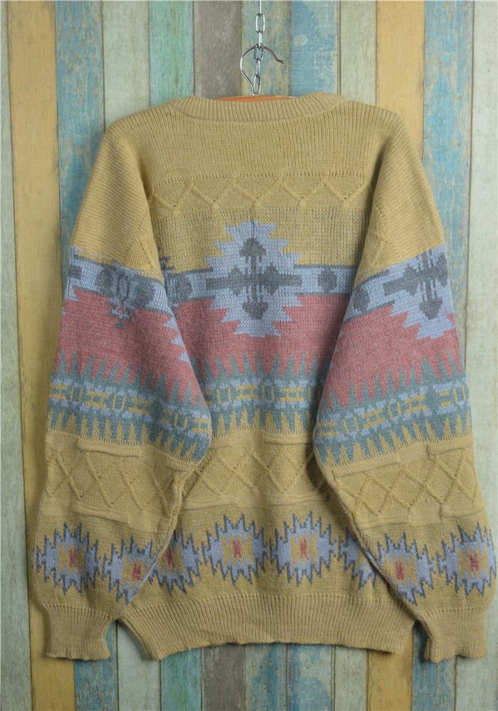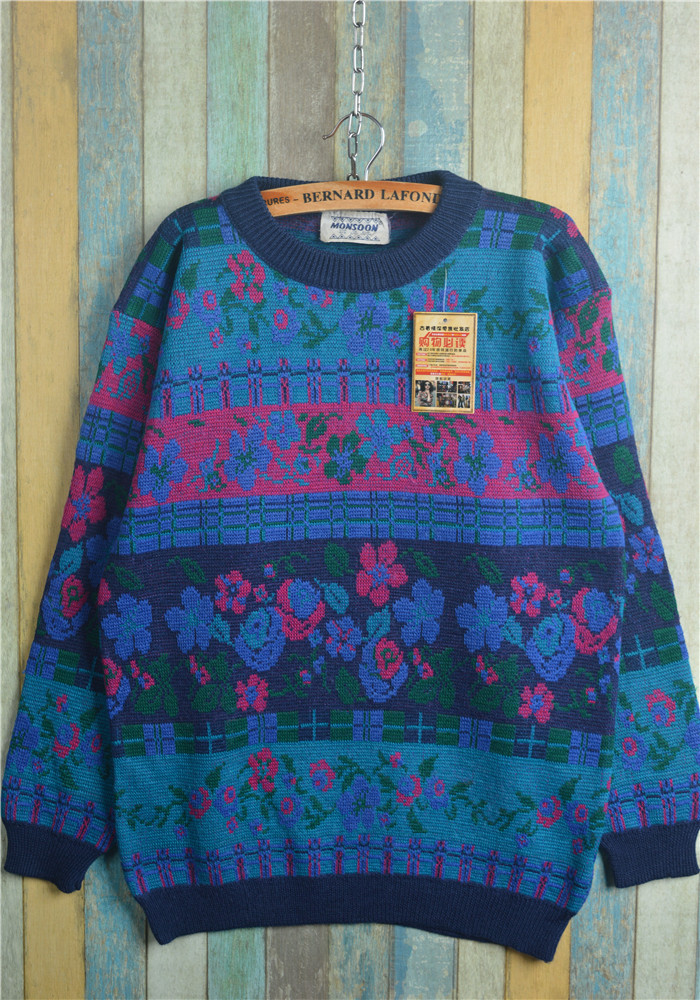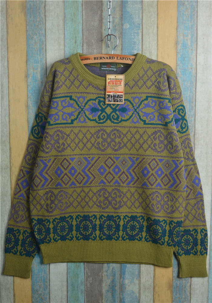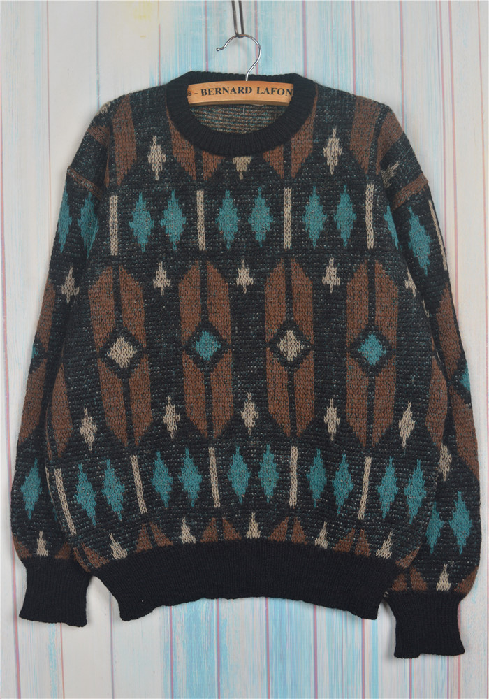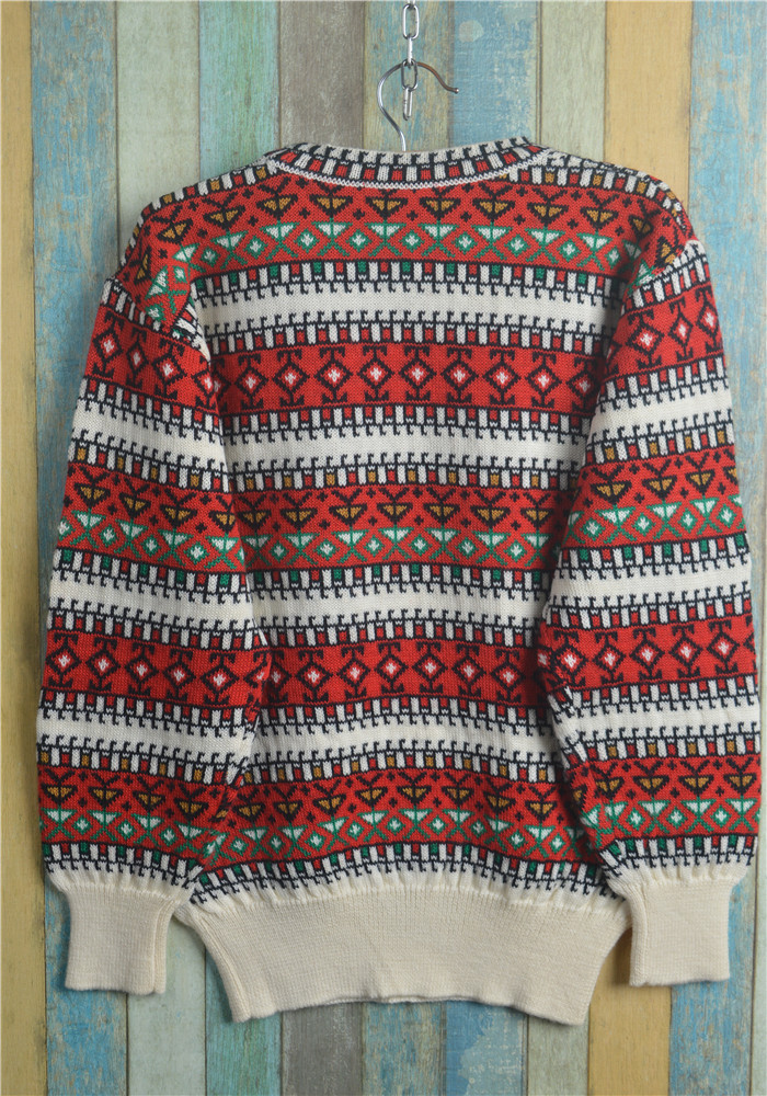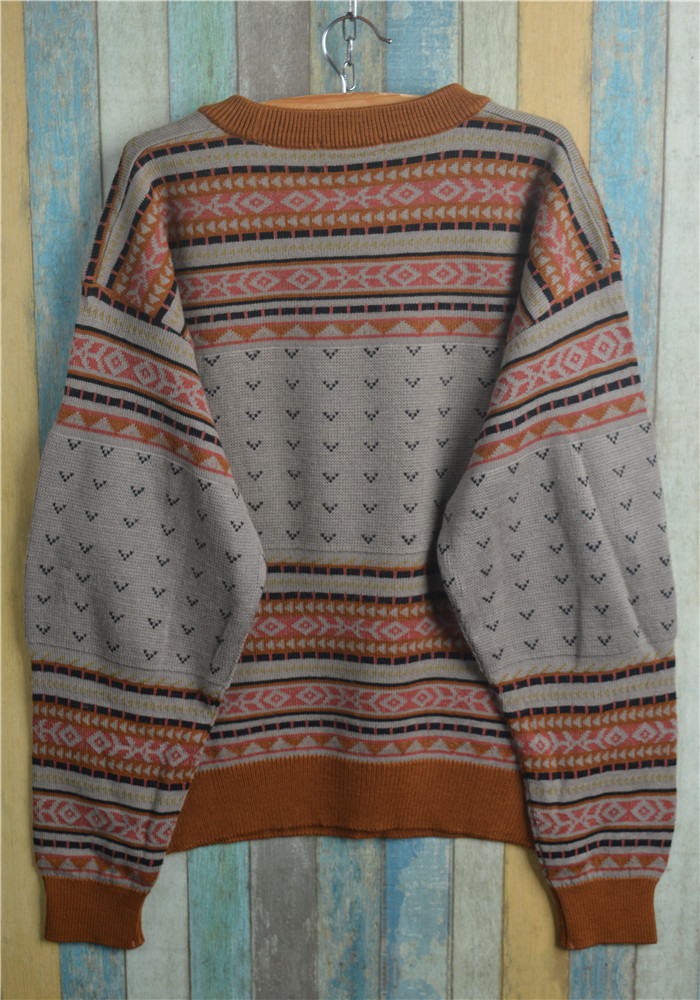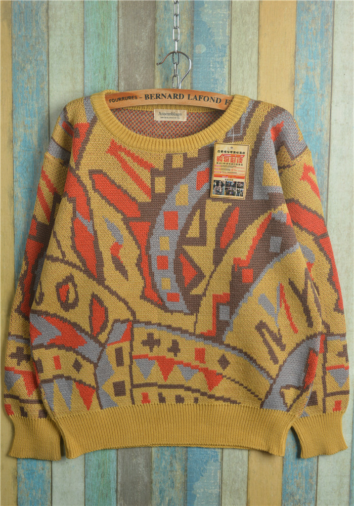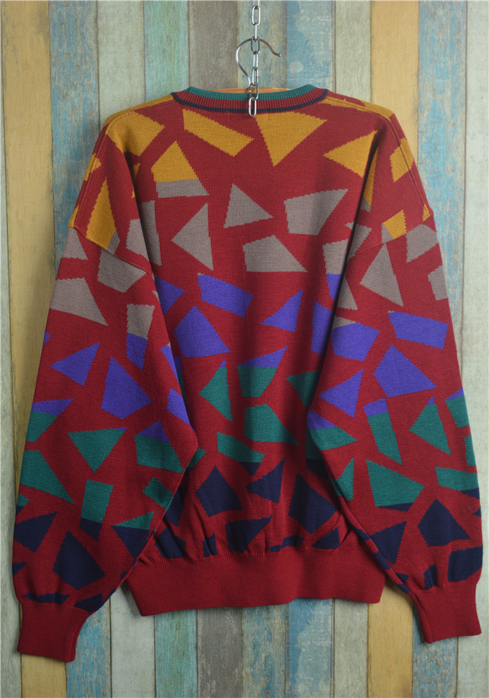 Vintage古著精品民族風嬉哈風格霹靂復古波普七彩圖案套頭羊毛衣