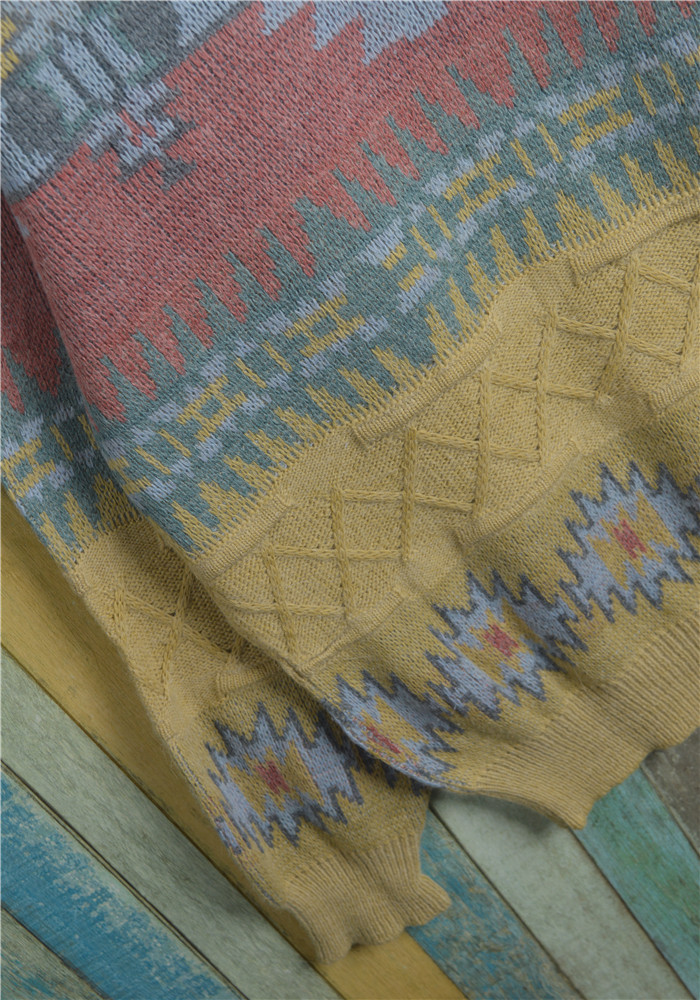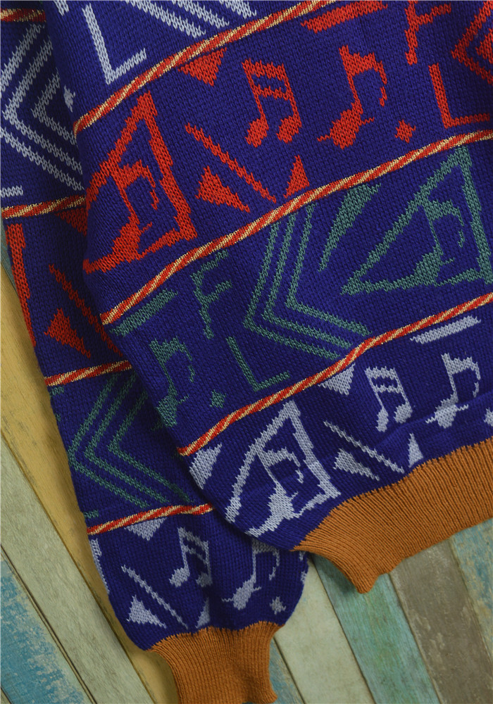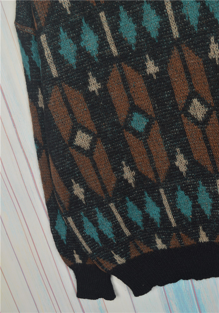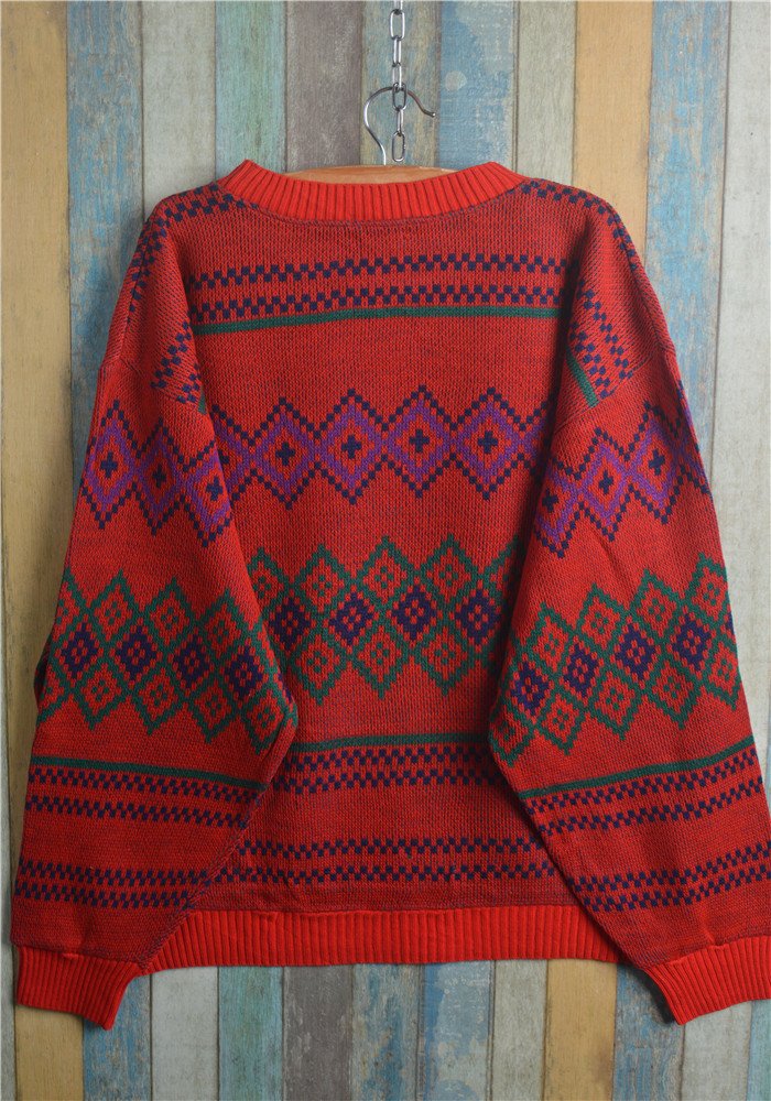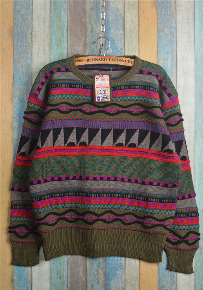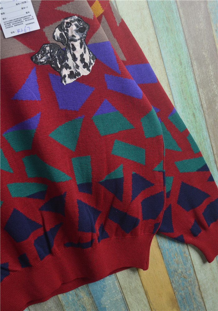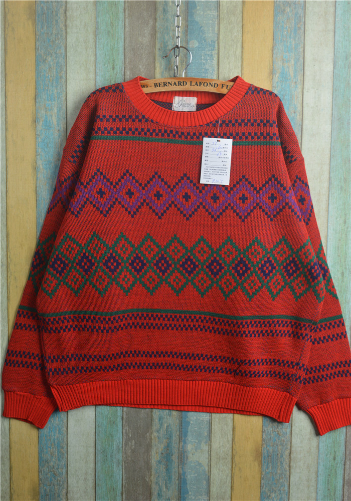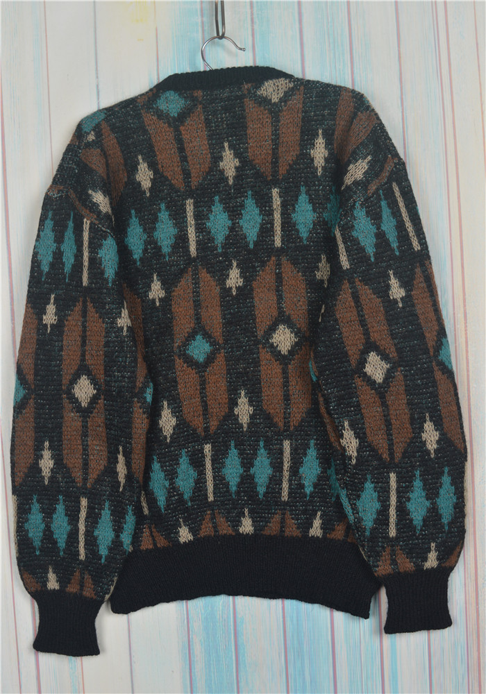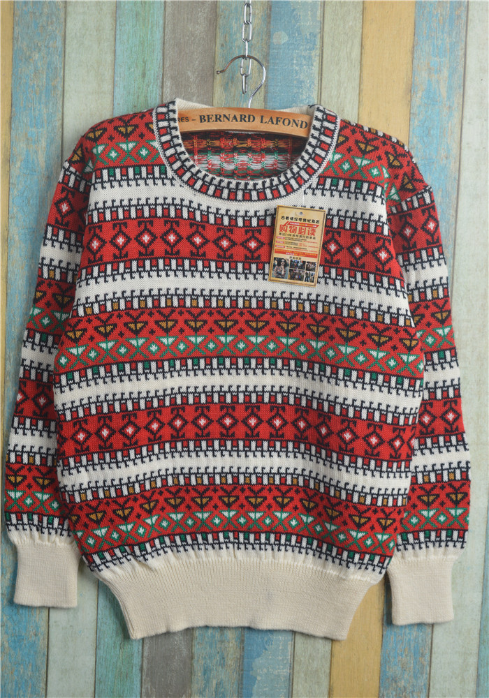 Vintage古著精品民族風嬉哈風格霹靂復古波普七彩圖案套頭羊毛衣