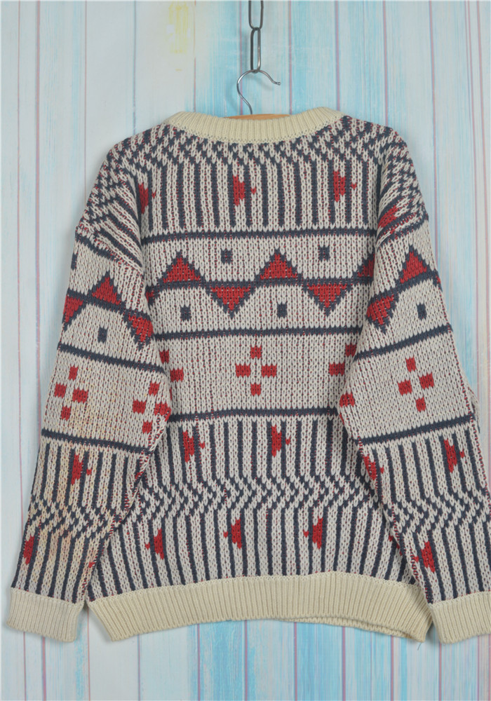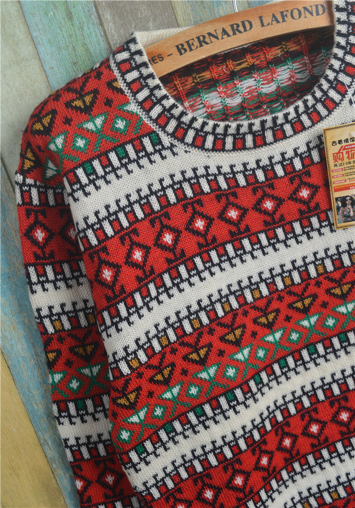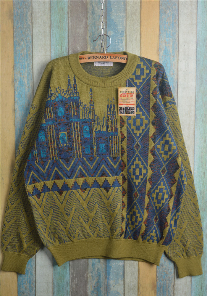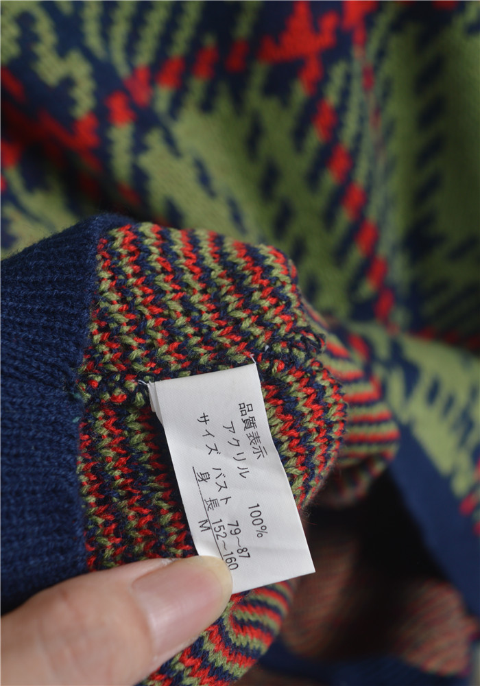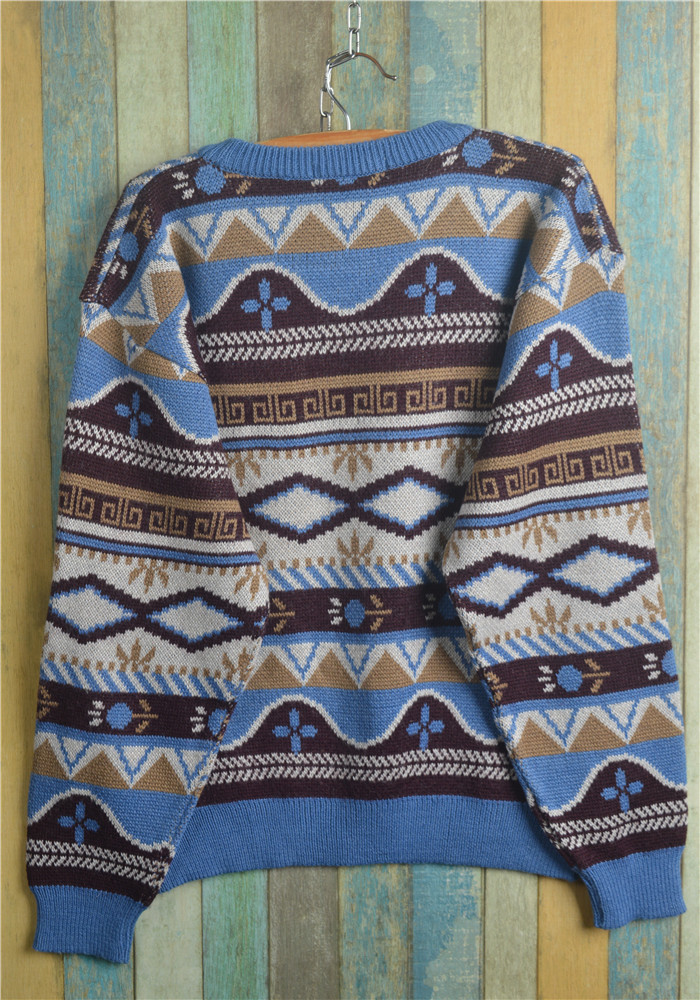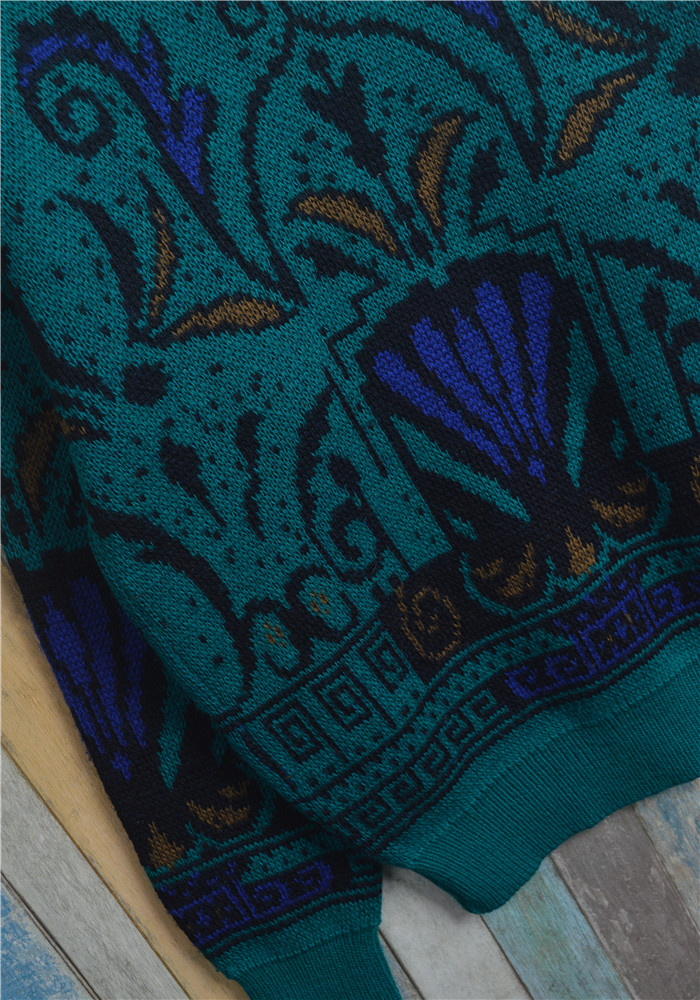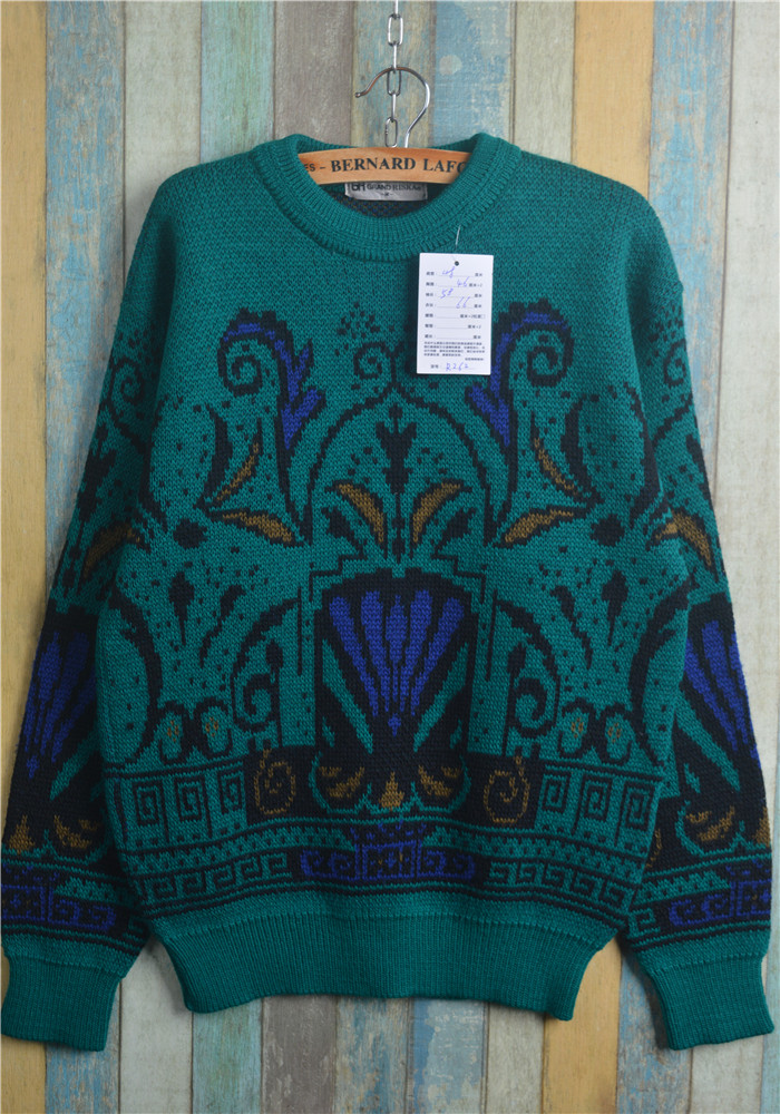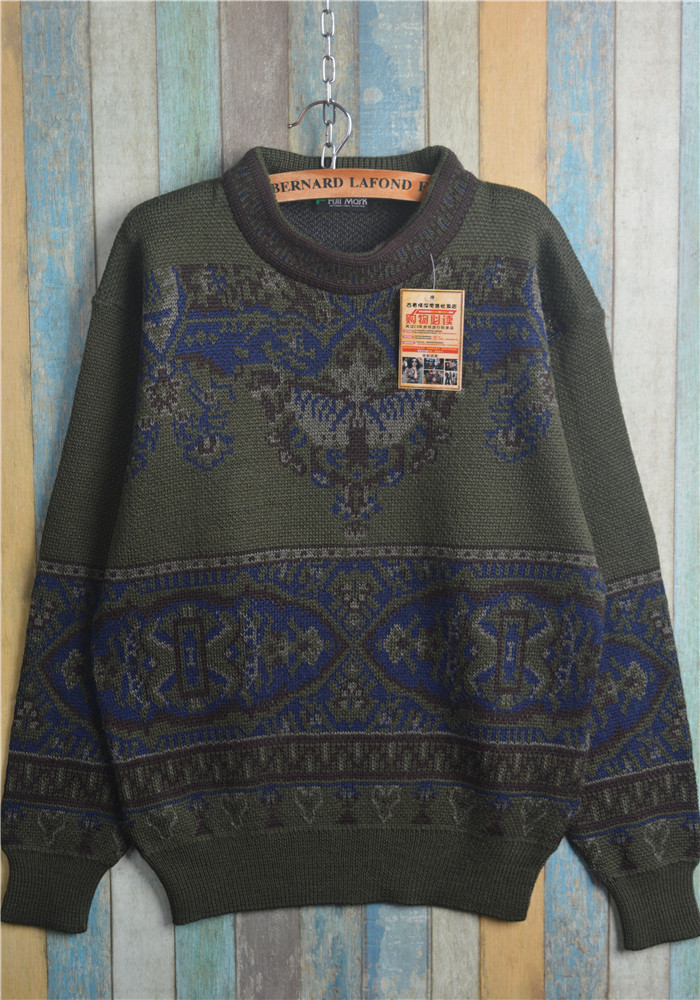 Vintage古著精品民族風嬉哈風格霹靂復古波普七彩圖案套頭羊毛衣