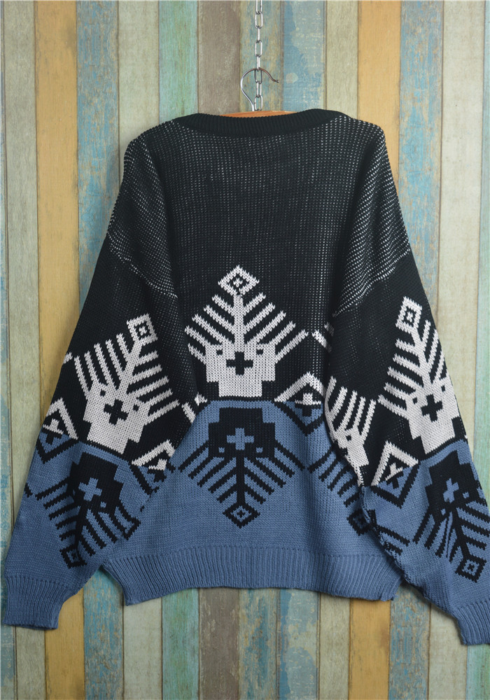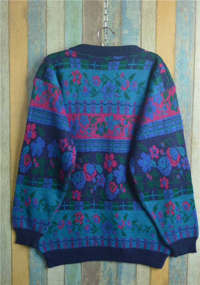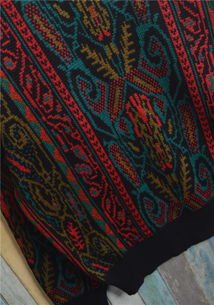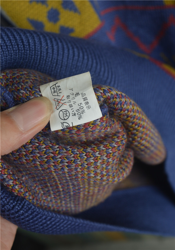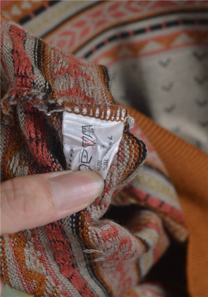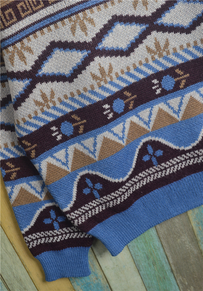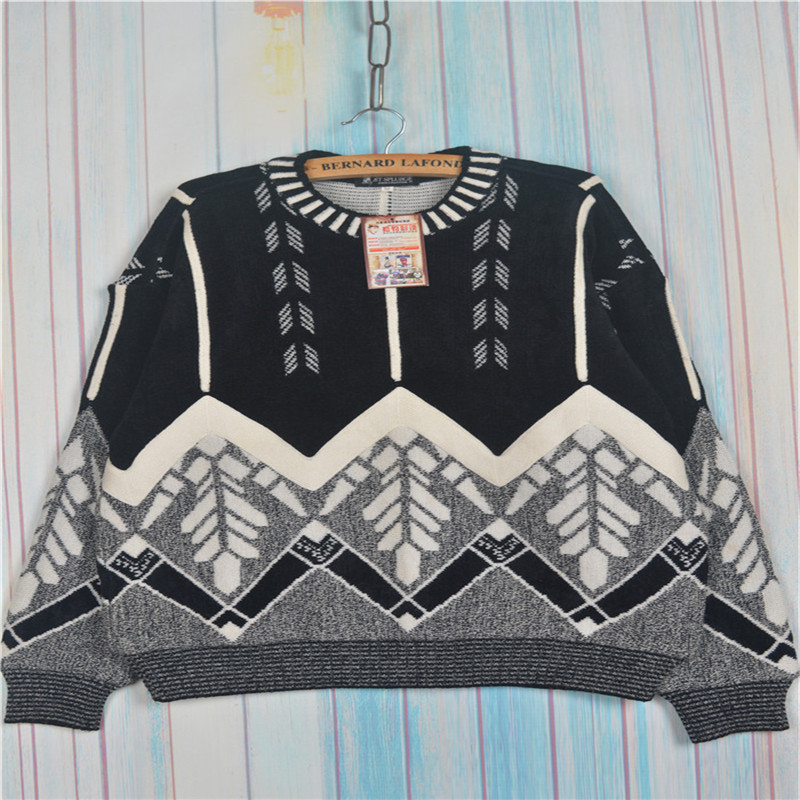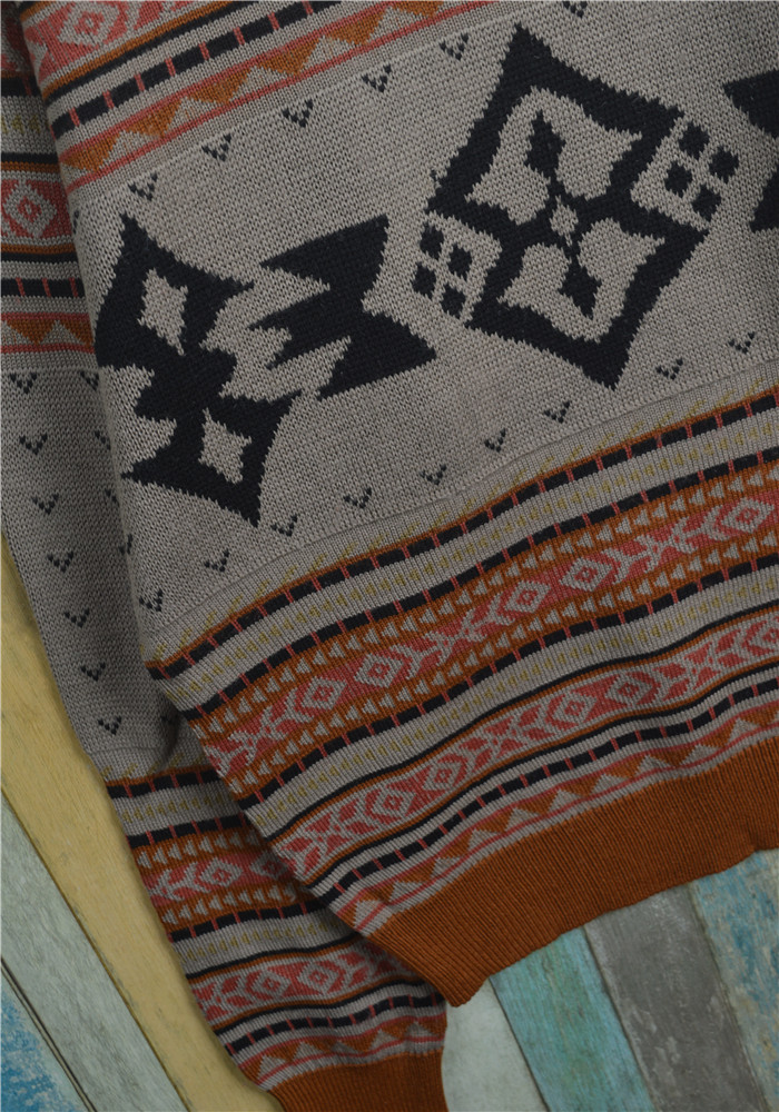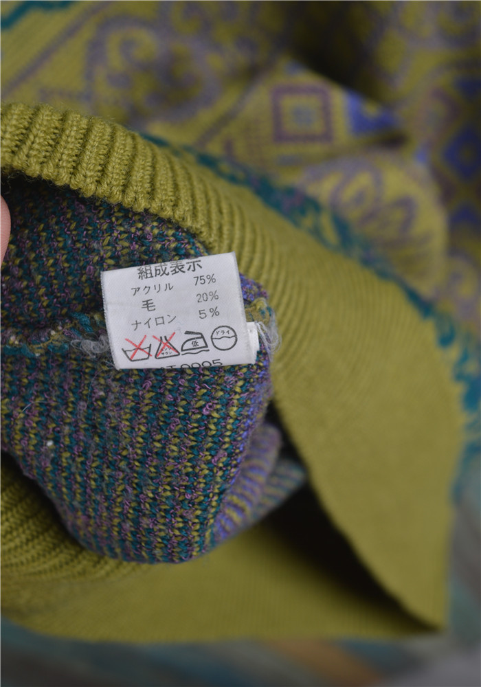 Vintage古著精品民族風嬉哈風格霹靂復古波普七彩圖案套頭羊毛衣
