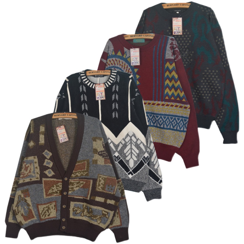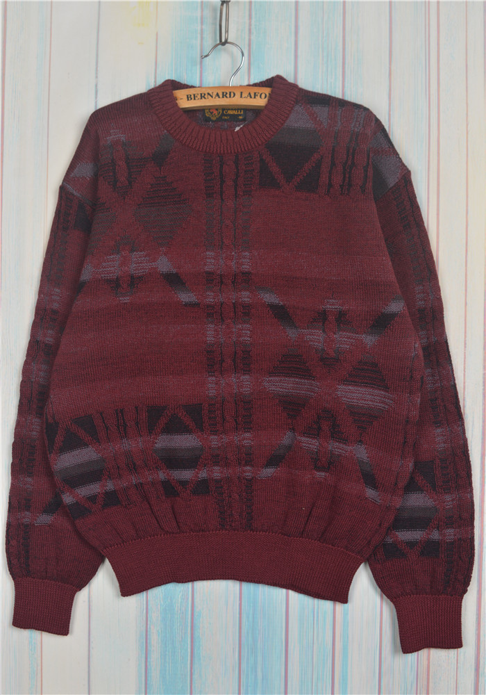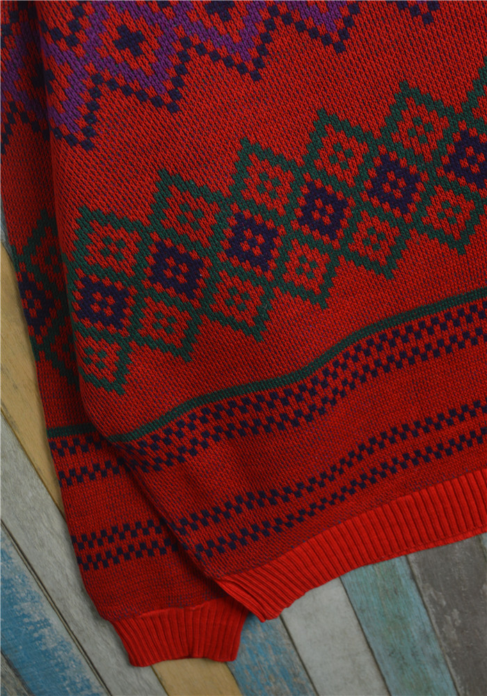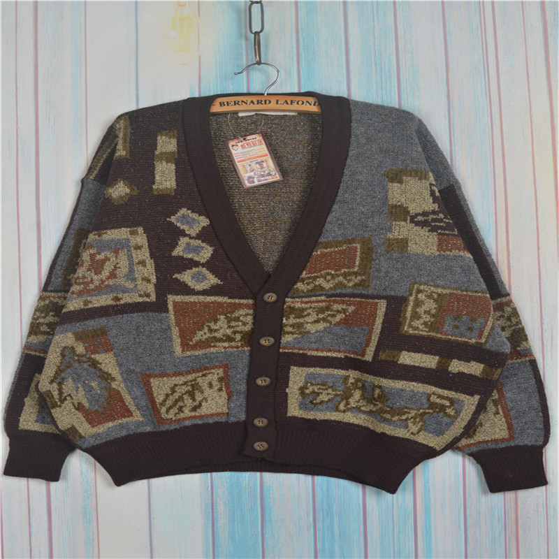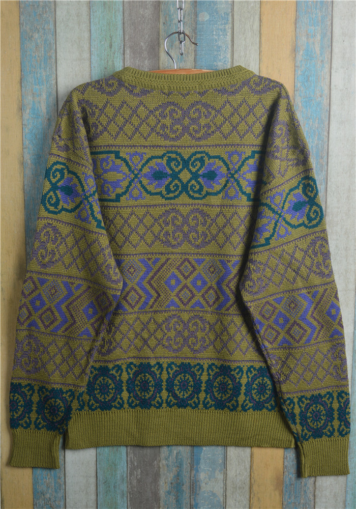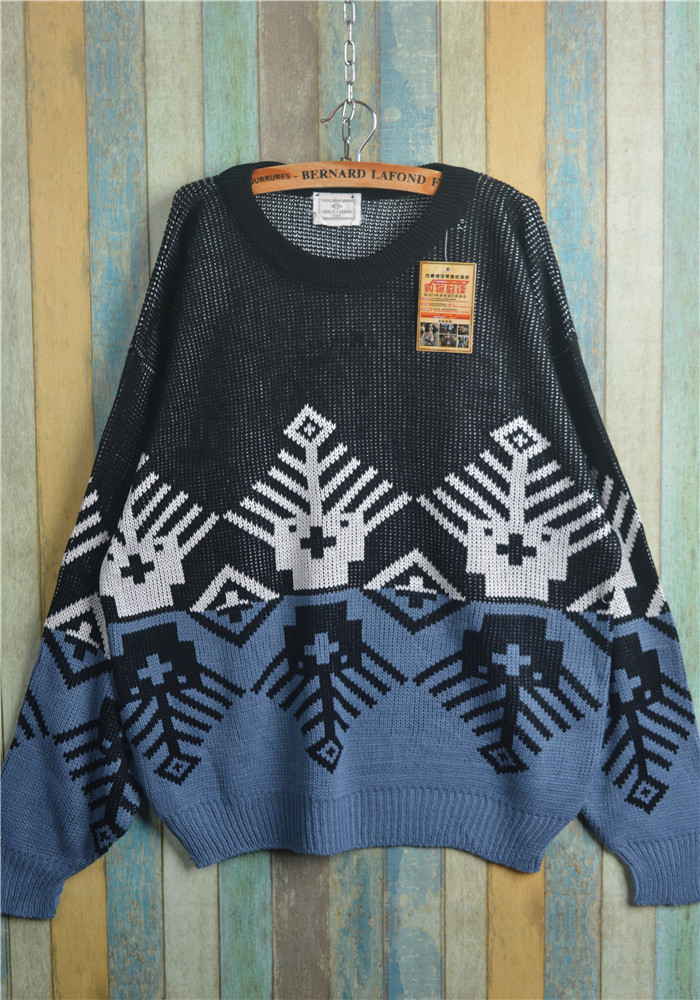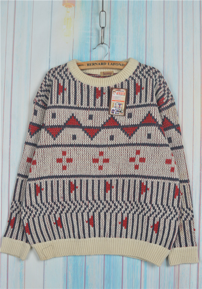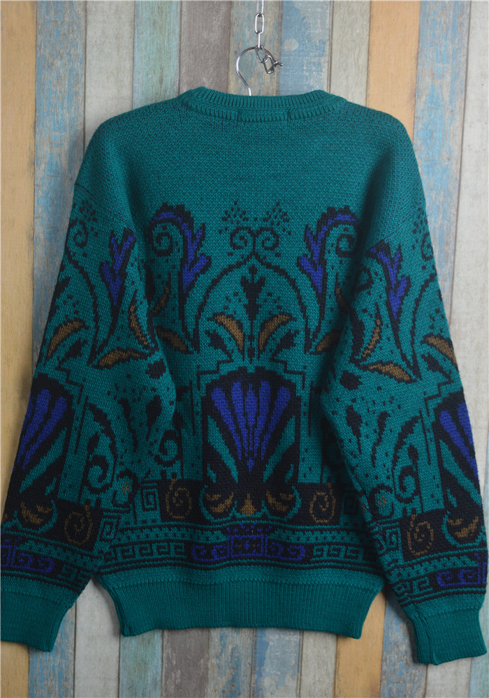 Vintage古著精品民族風嬉哈風格霹靂復古波普七彩圖案套頭羊毛衣