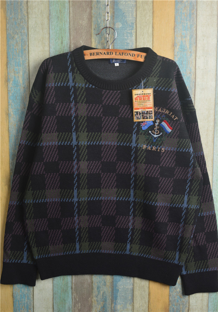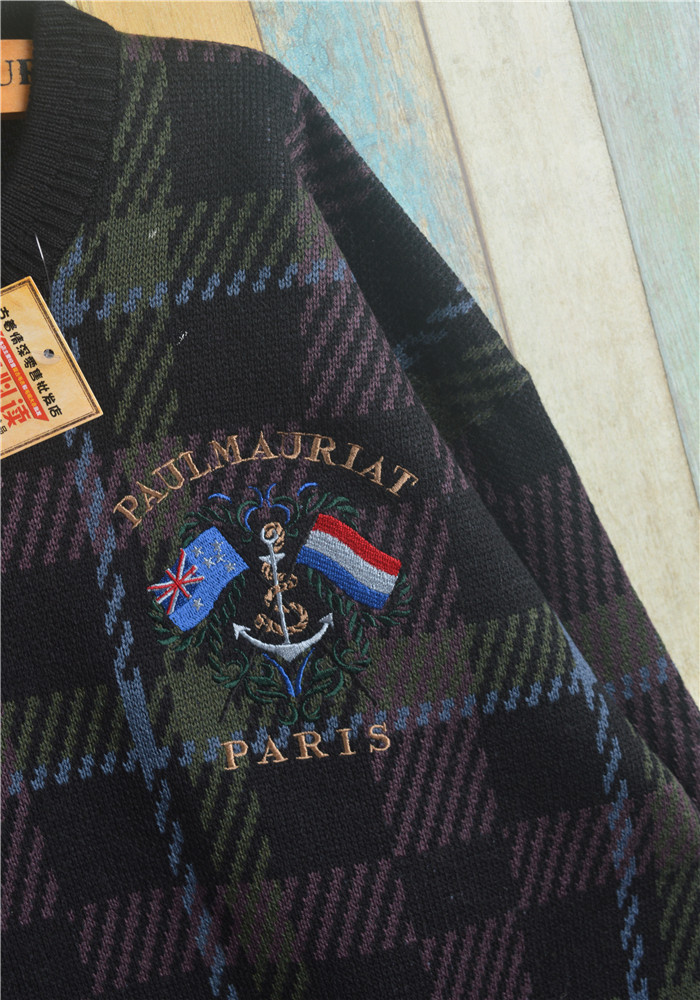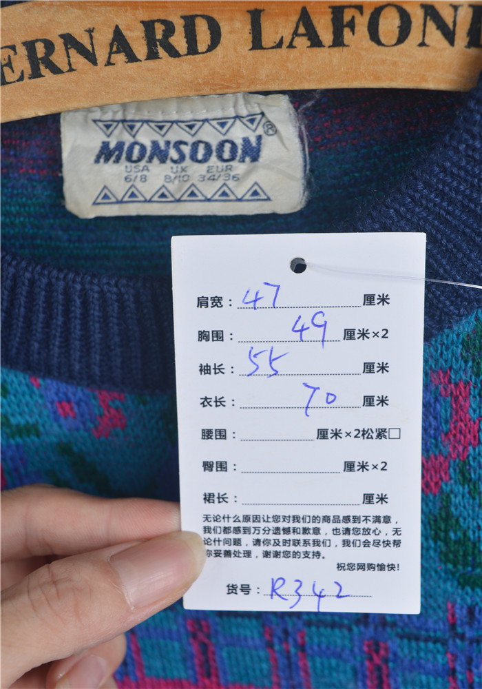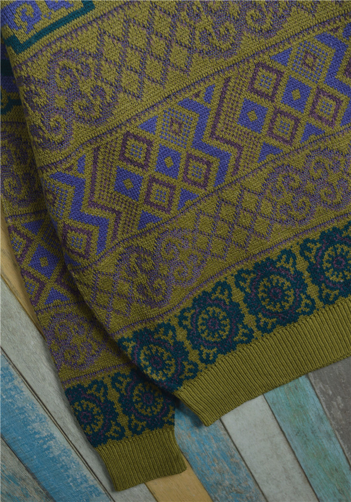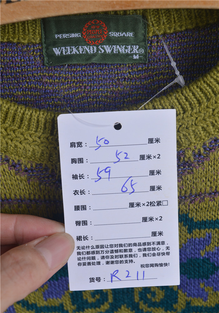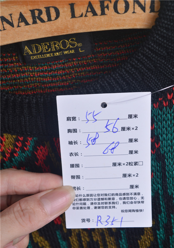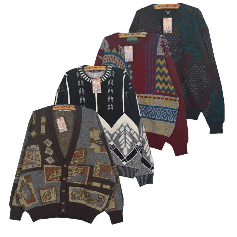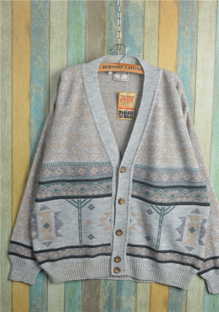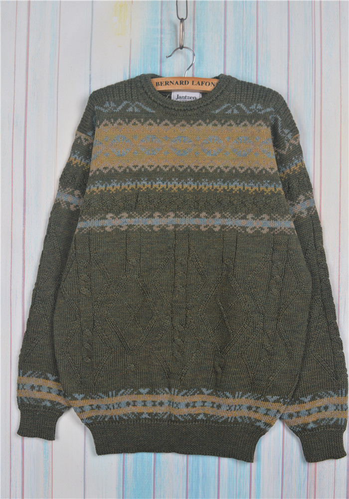 Vintage古著精品民族風嬉哈風格霹靂復古波普七彩圖案套頭羊毛衣