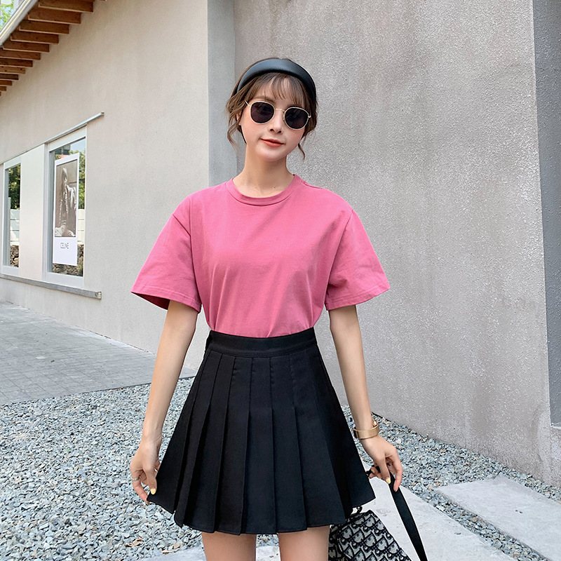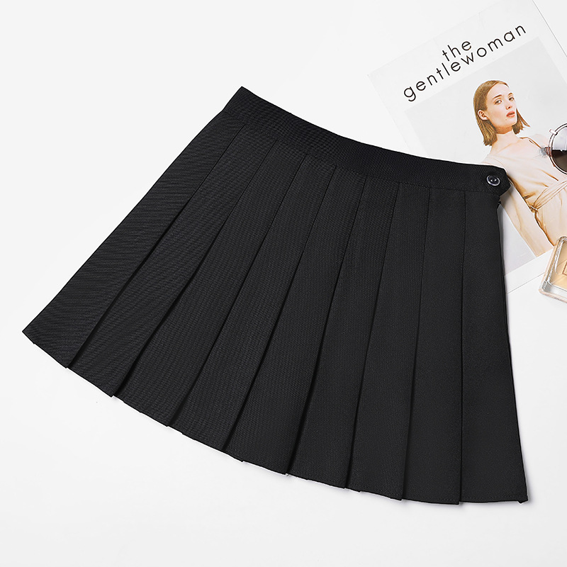 半身裙2023新款高腰短裙大码a字裙韩版扣子义乌黑色百褶裙女夏