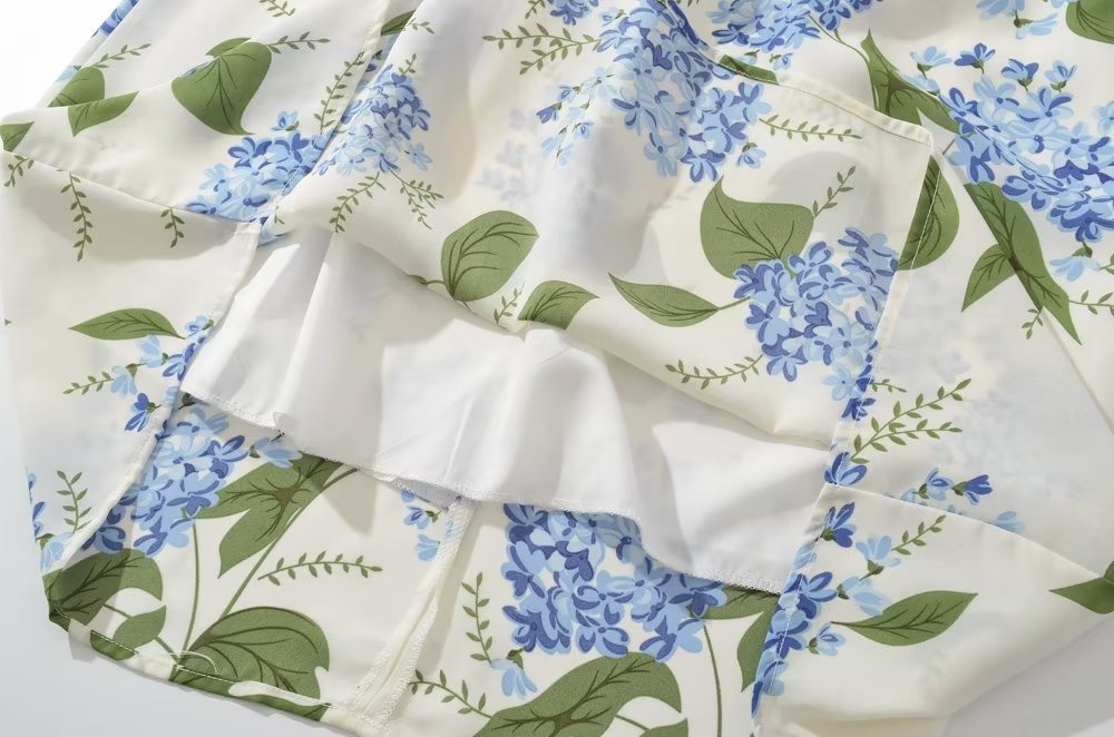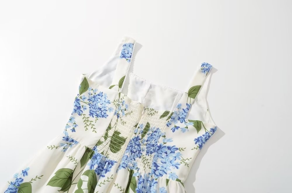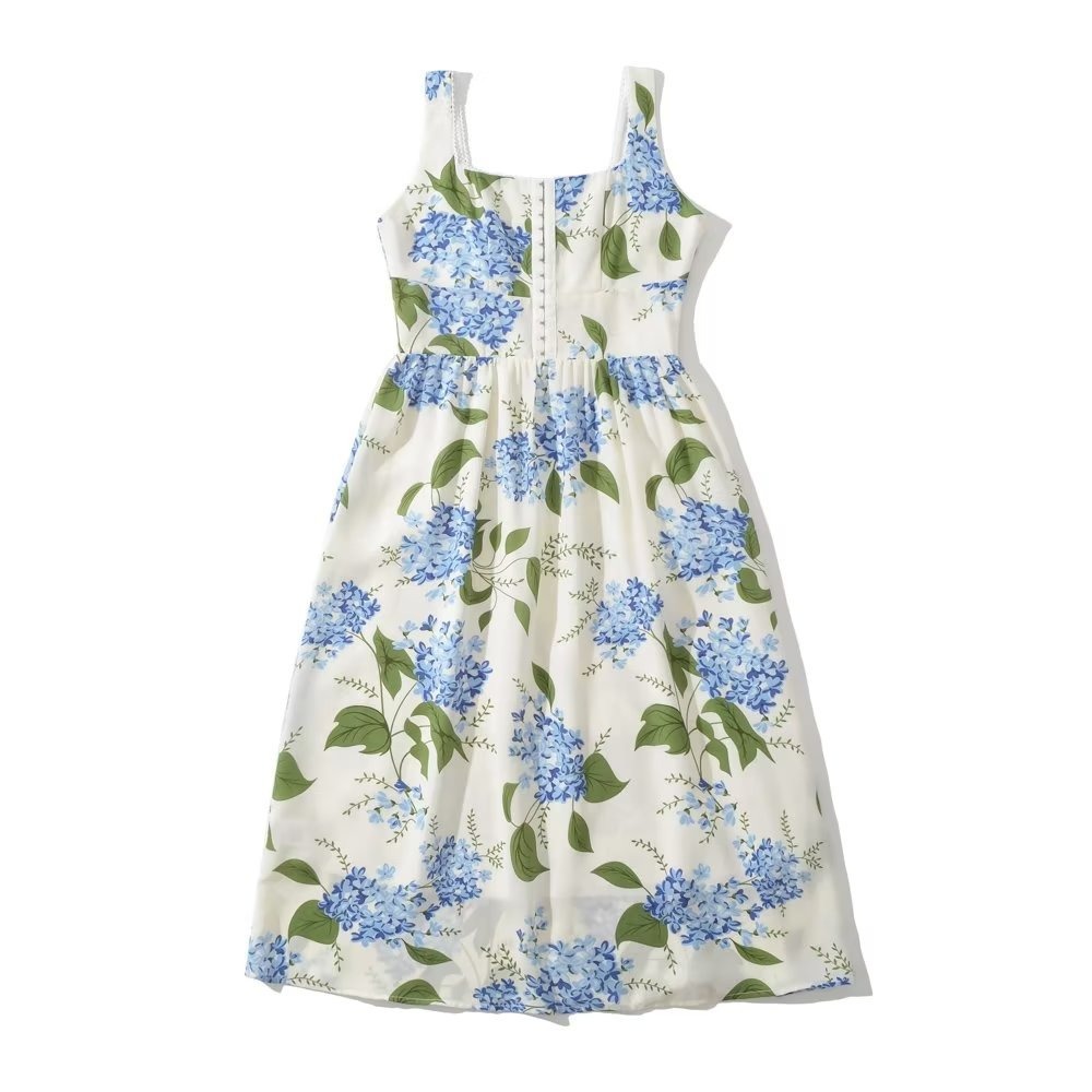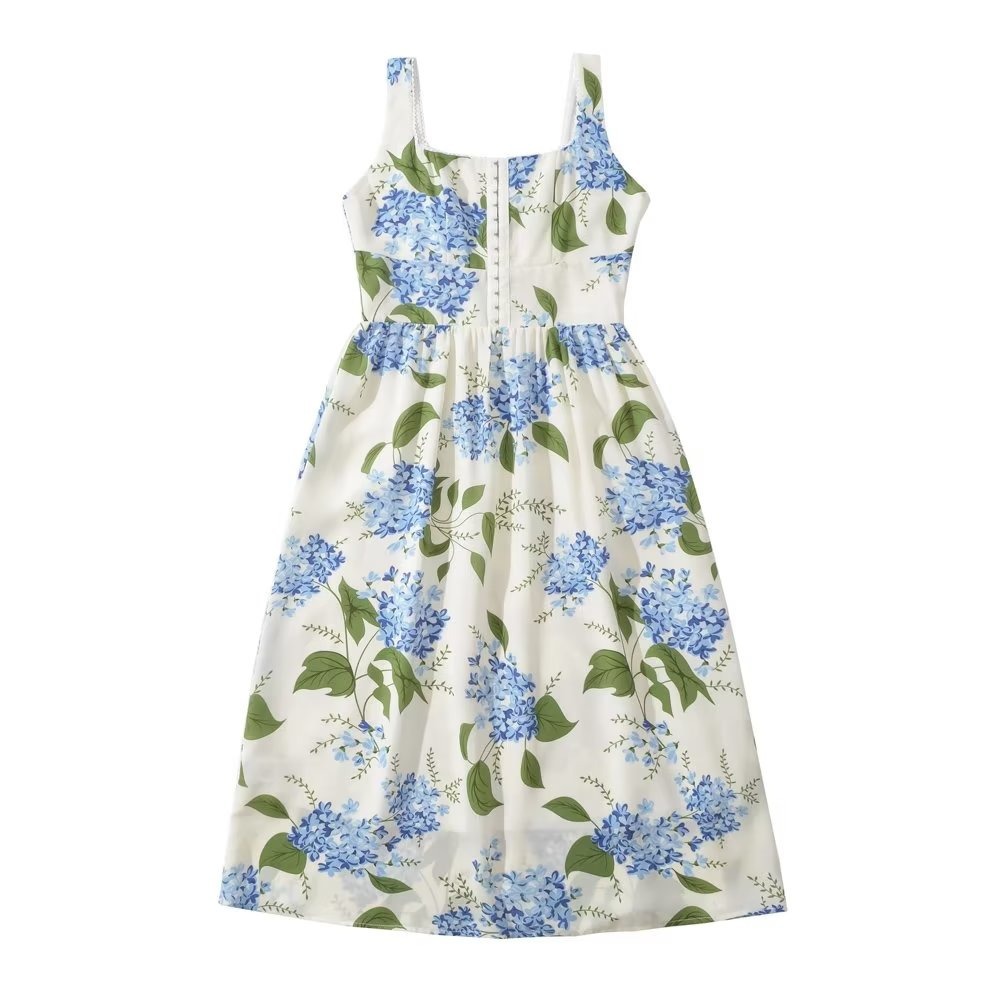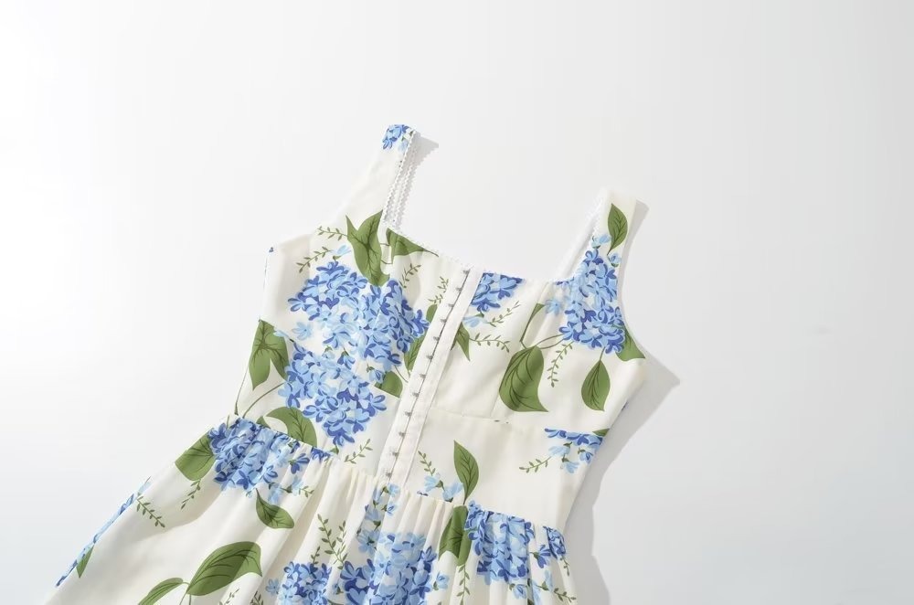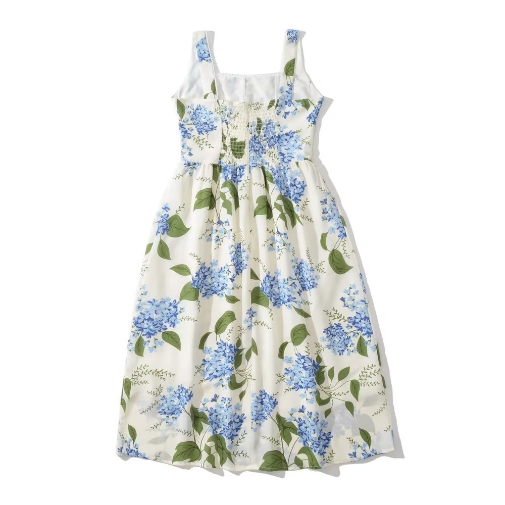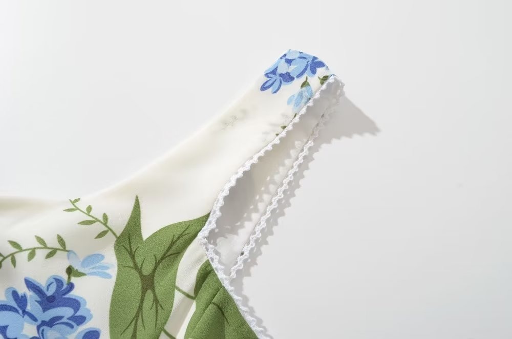 2023夏季新款吊带碎花印花蕾丝拼接中长款连衣裙批发