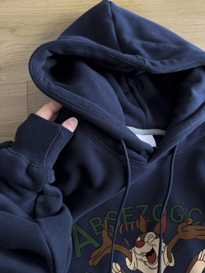 回头率超高!艺术生风格卫衣女韩系宽松百搭简约印花连帽上衣外套