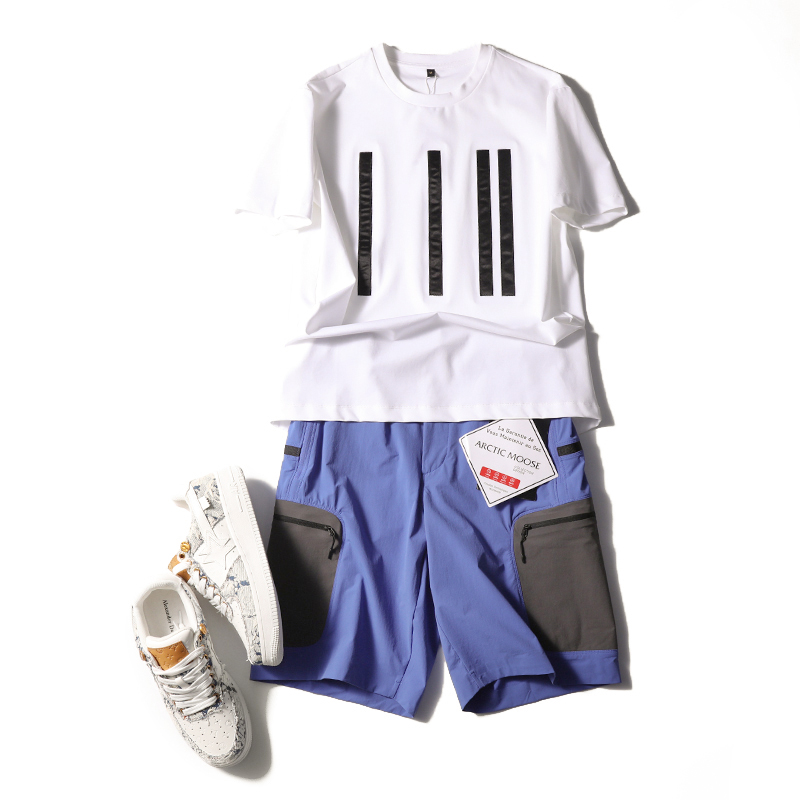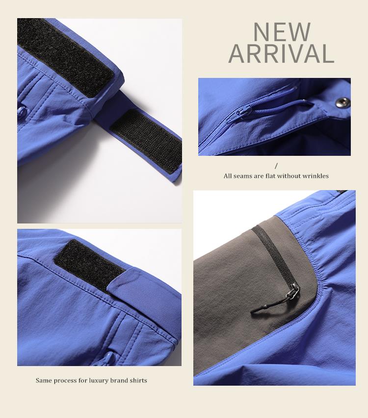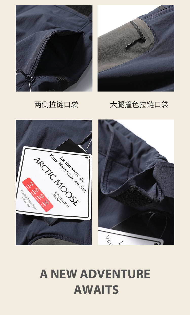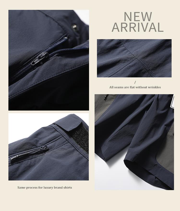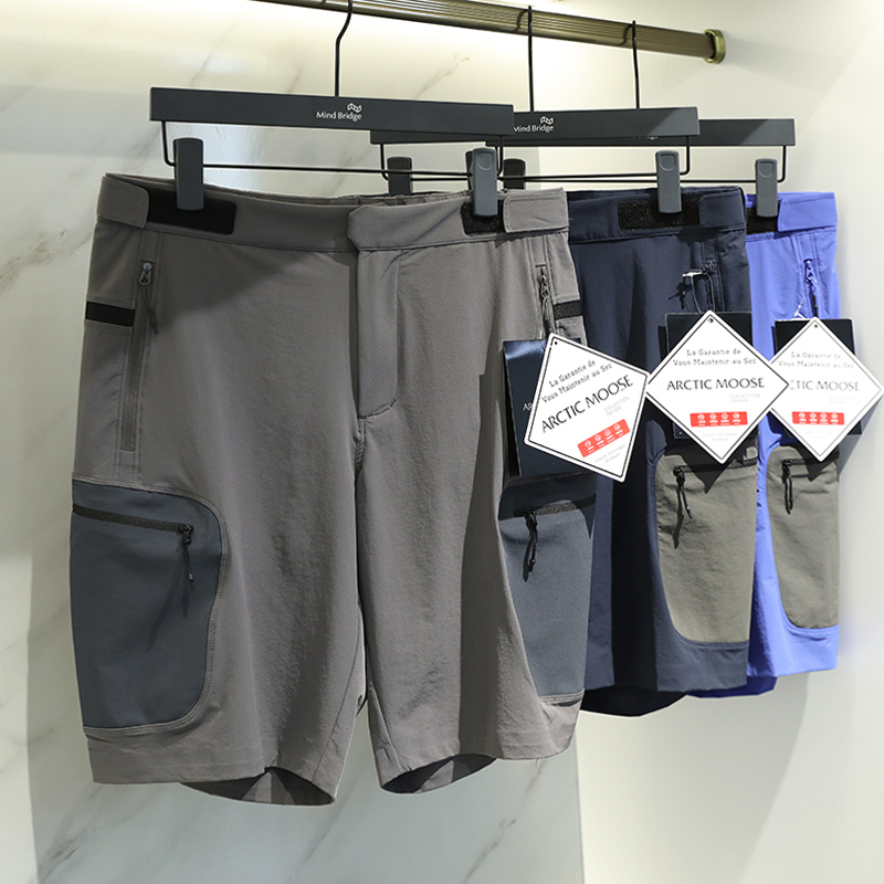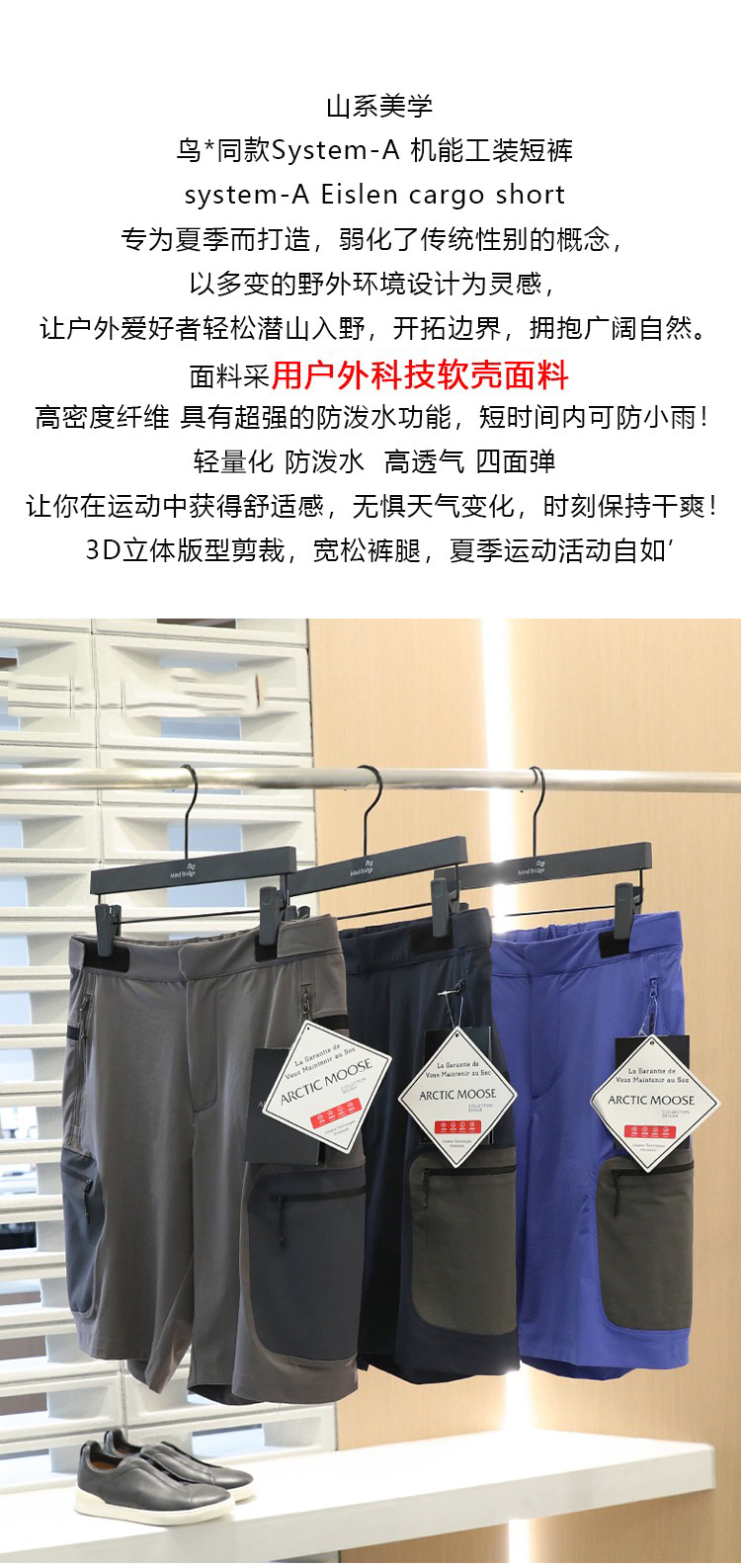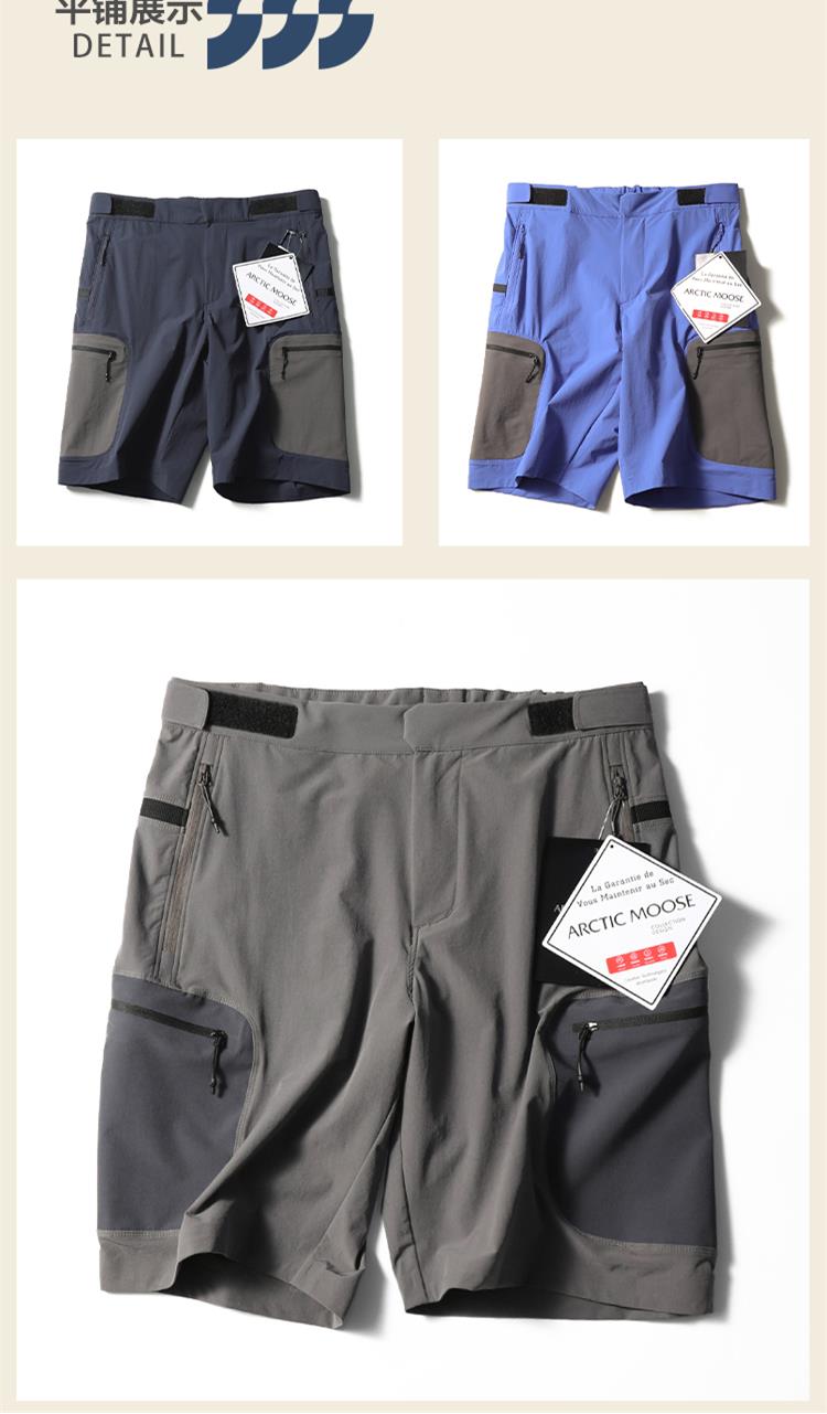 戶外機能風!撞色拼接設計!寬鬆版型!夏季防水男士休閒軟殼短褲
