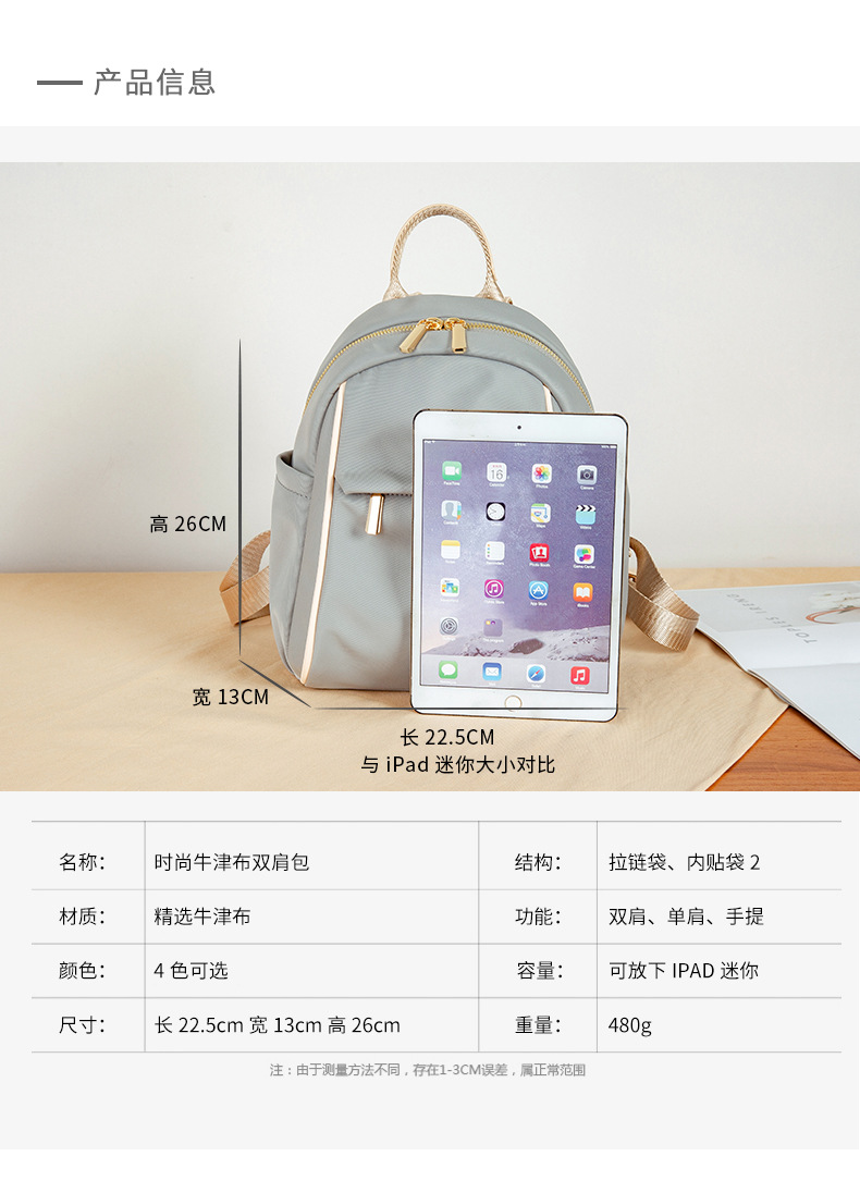 韩版ins小包包女双肩包甜美淑女小背包轻便大学生简约旅行书包女