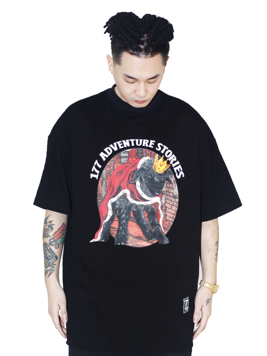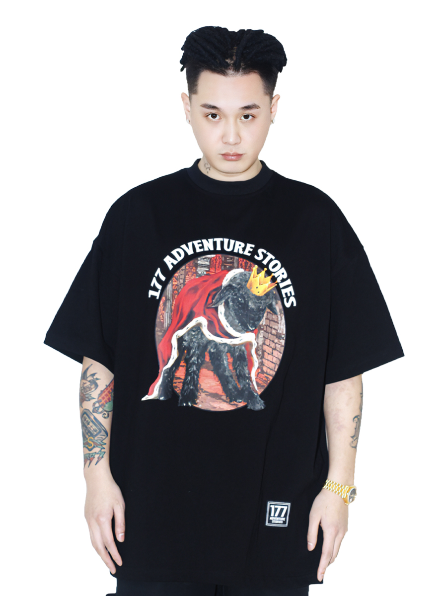 177的冒險故事加冕皇冠小羊春夏原創國潮印花圓領寬鬆短袖TEE圓領