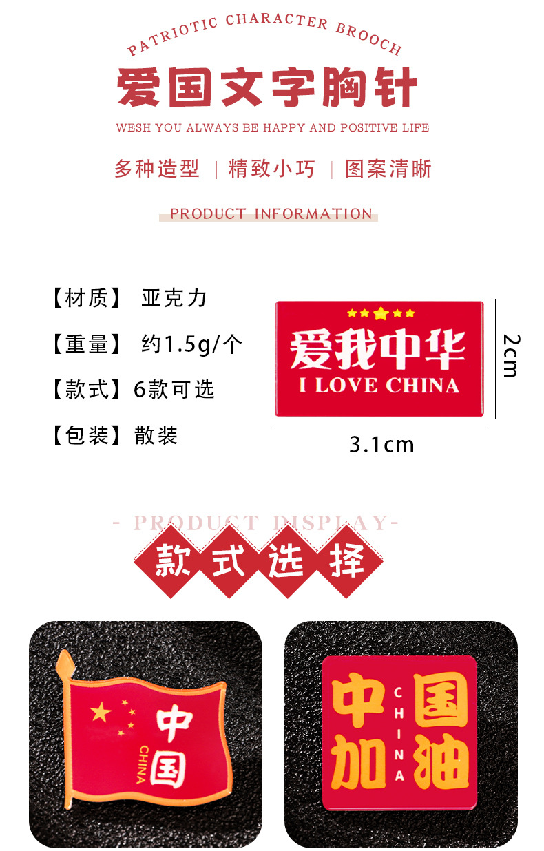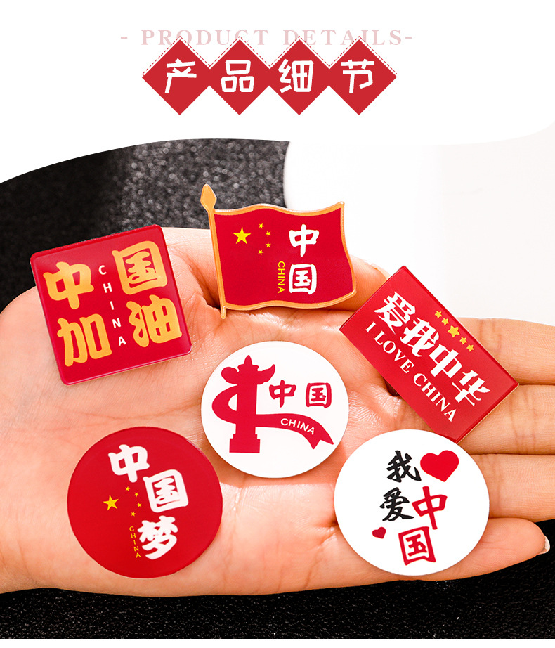 国庆节胸针 中国梦纪念徽章学生节日小礼品亚克力配件幼儿园别针