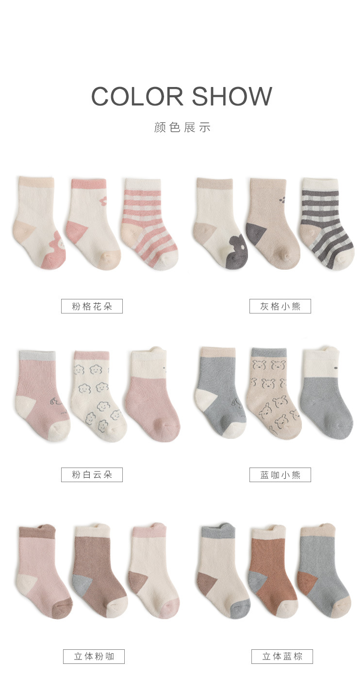 2022冬季新品宝宝袜子加厚保暖新生婴儿袜可爱卡通男女儿童中筒袜