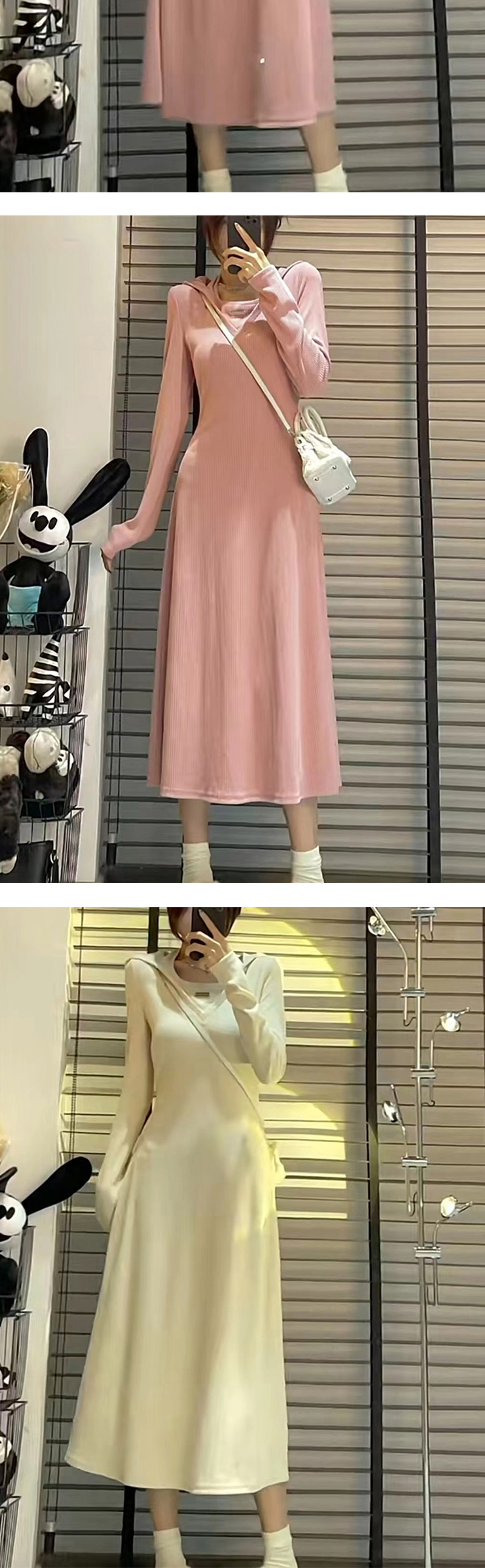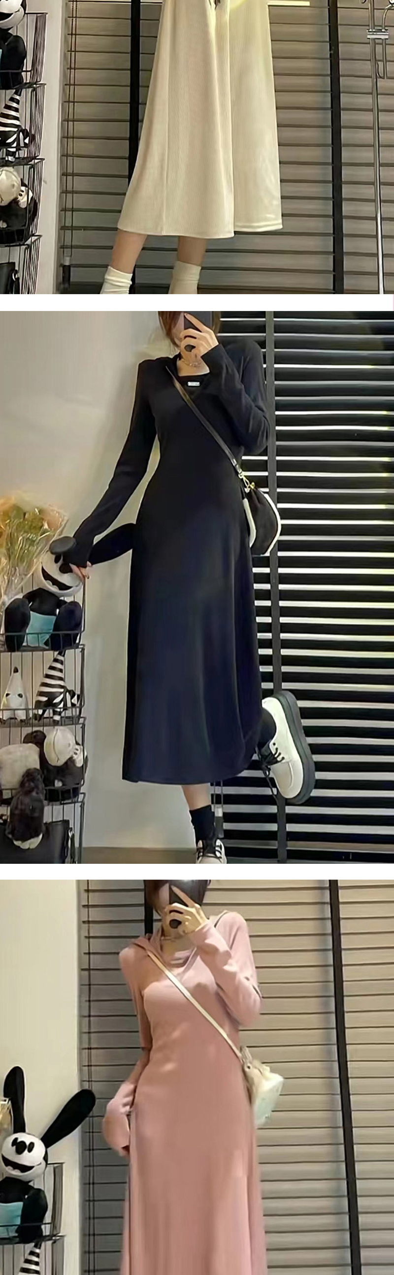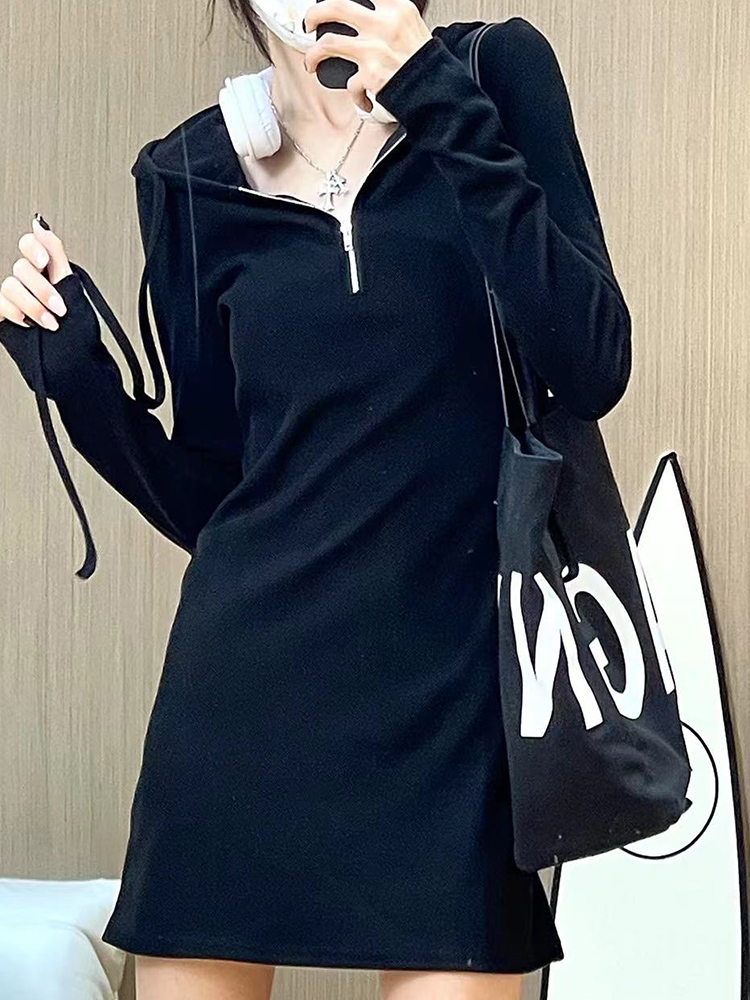 法式氣質假兩件連帽運動衫裙2023春季新款包臀魚尾裙修身中長洋裝