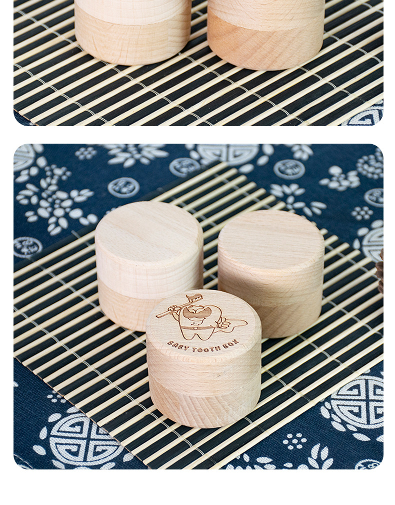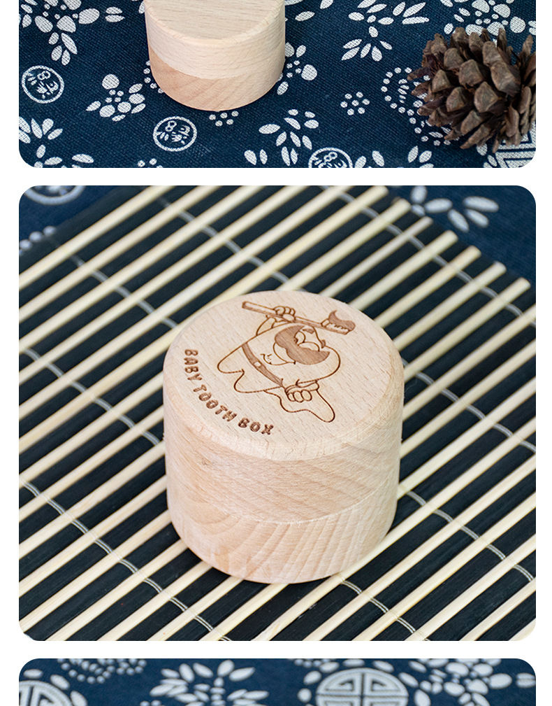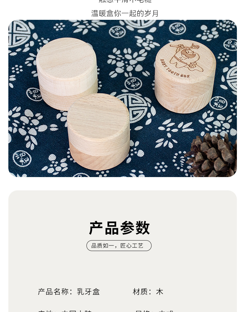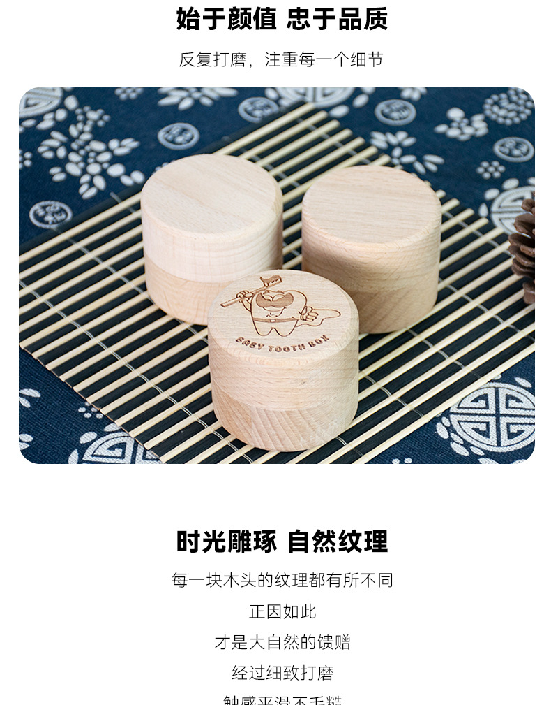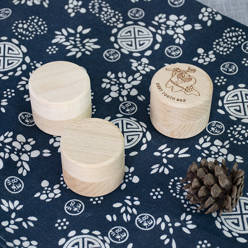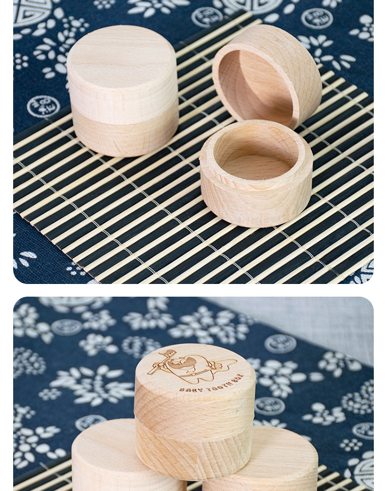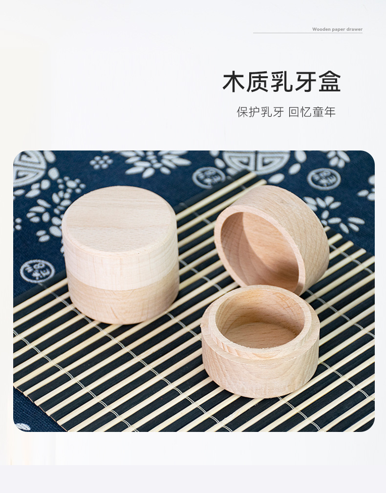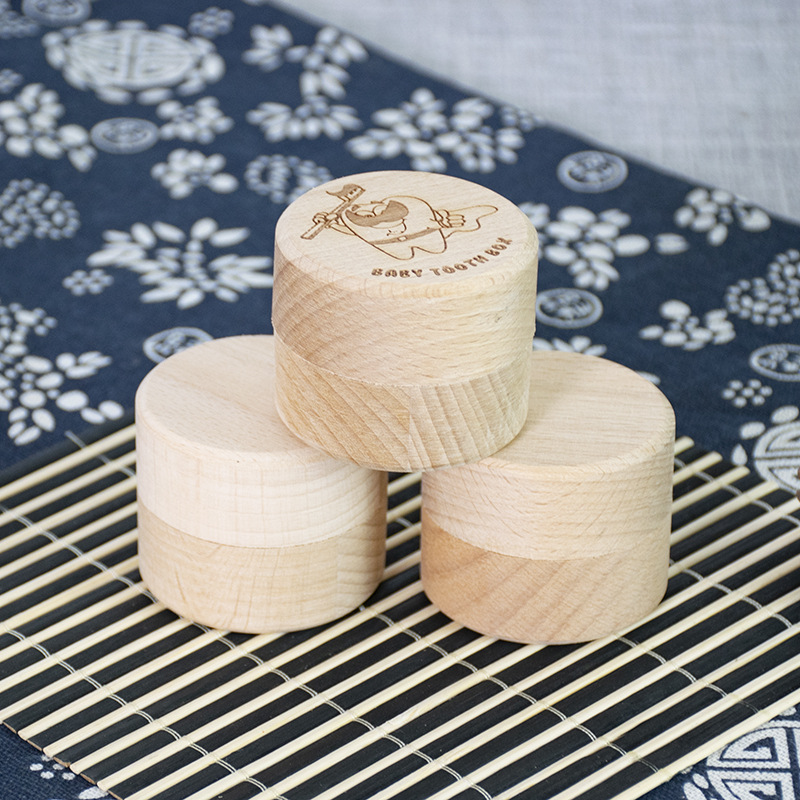 榉木戒指盒木质乳牙盒牙仙子女盒男宝宝圆形实木扣盖礼物盒跨境