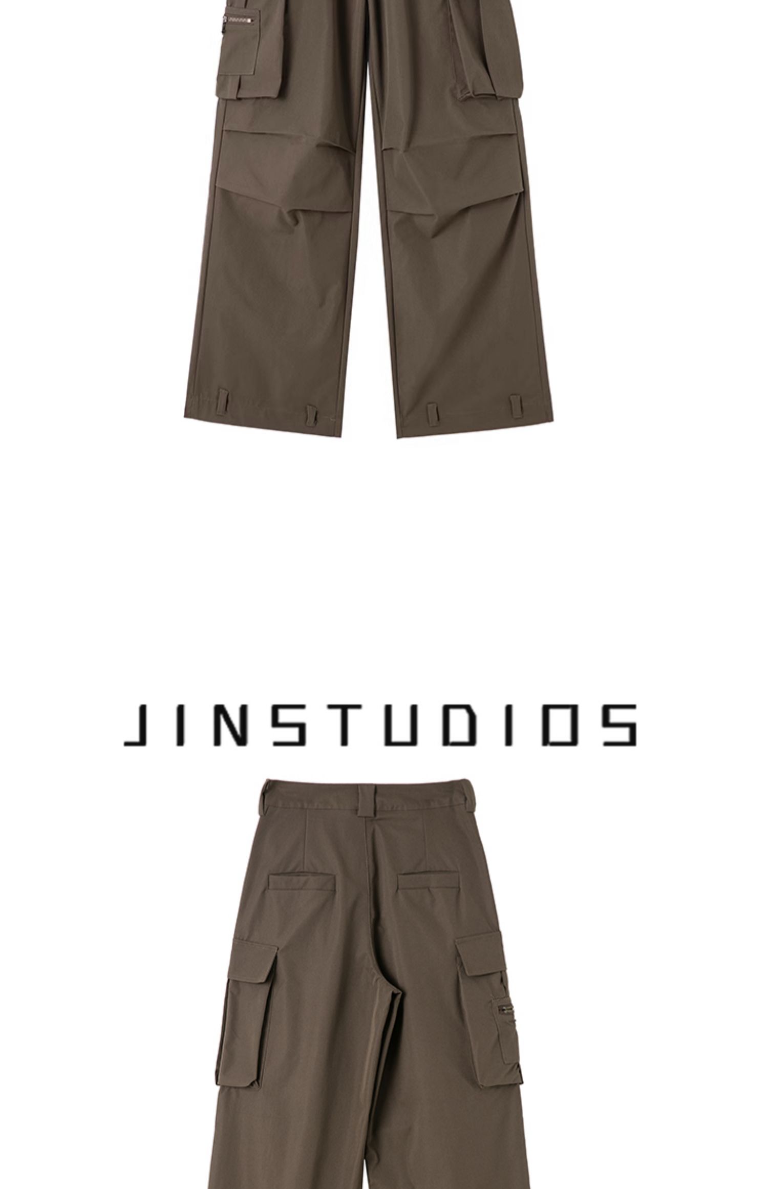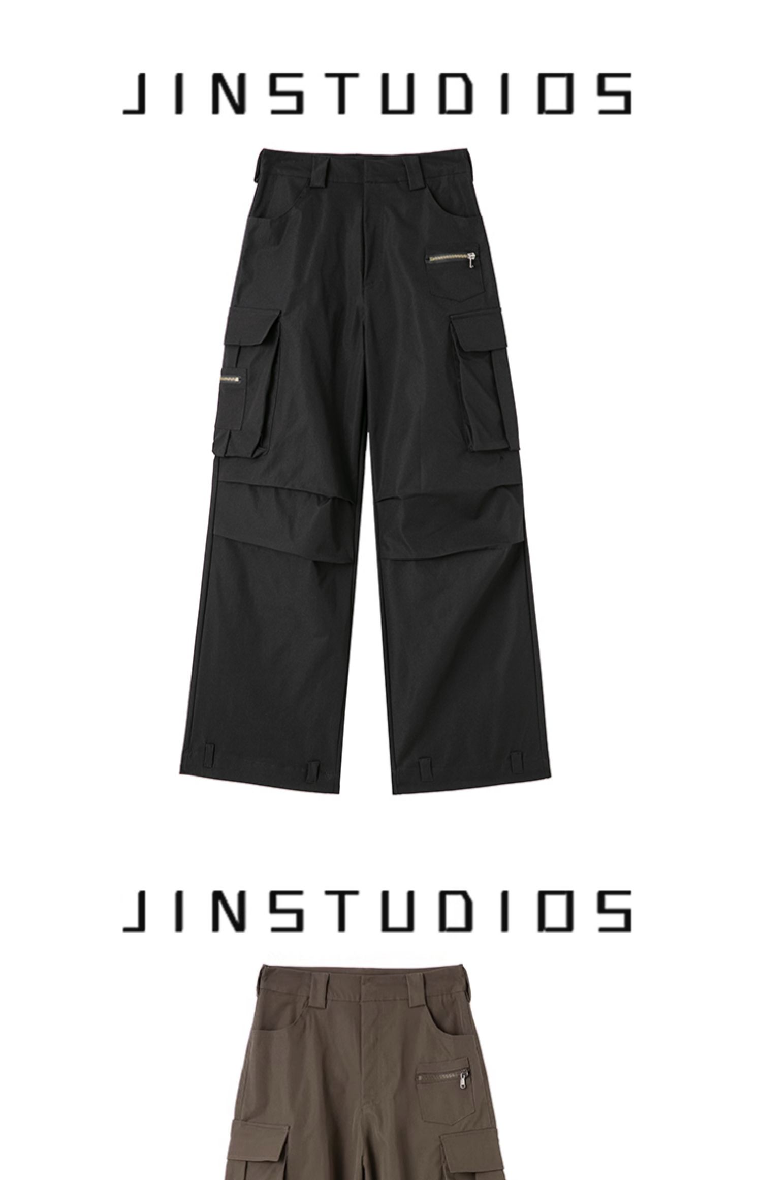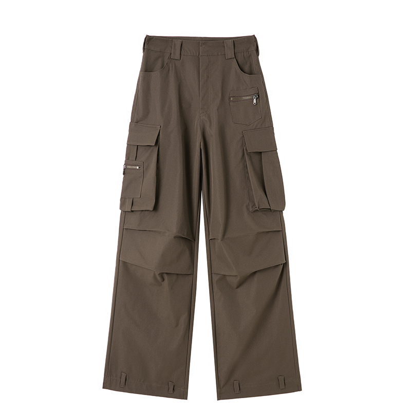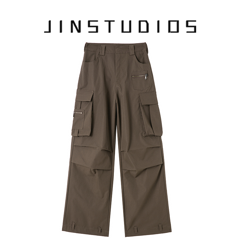 JIN自制2023夏個性褶皺大口袋高腰美式工裝褲寬鬆百搭復古闊腿褲