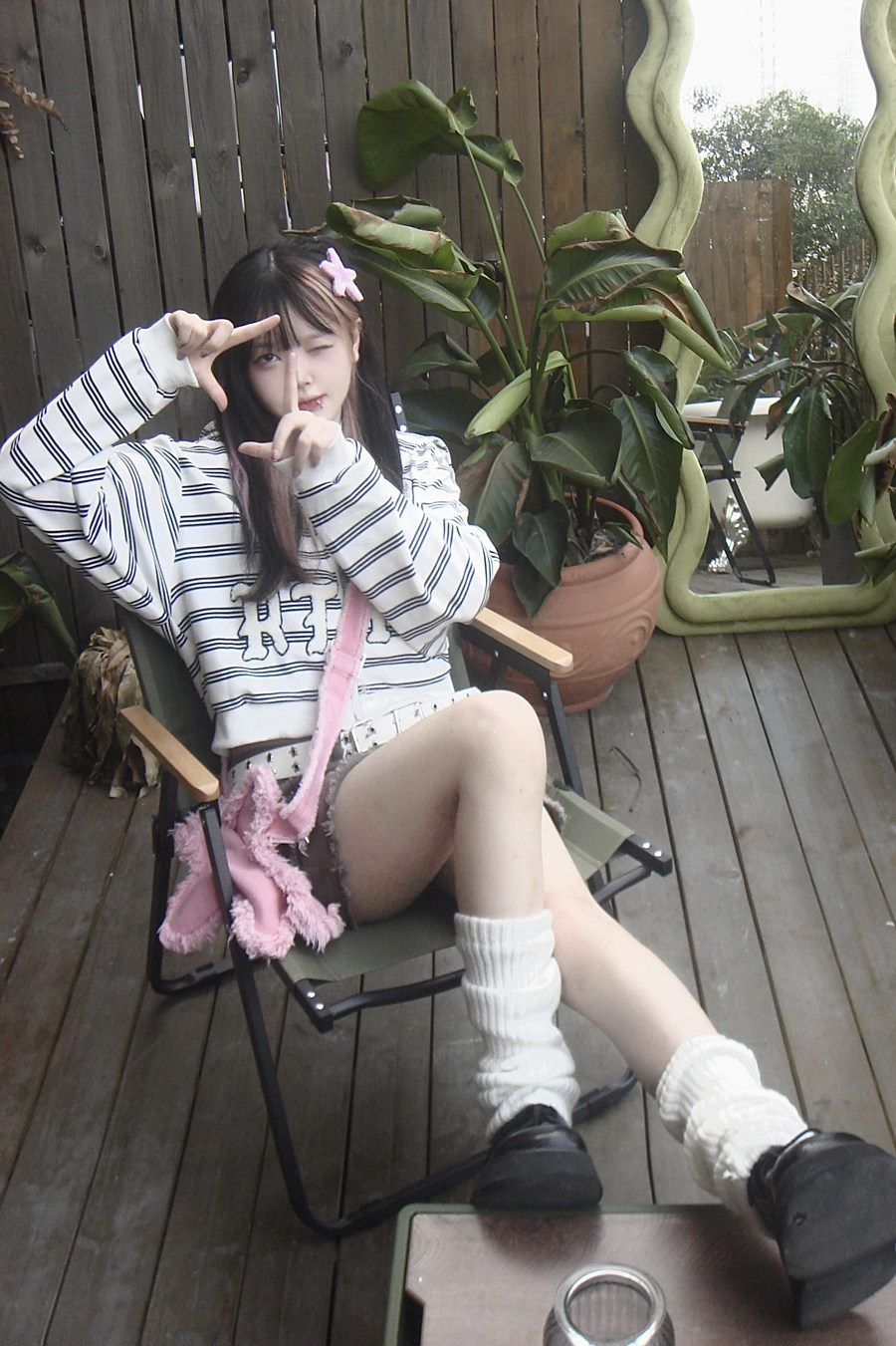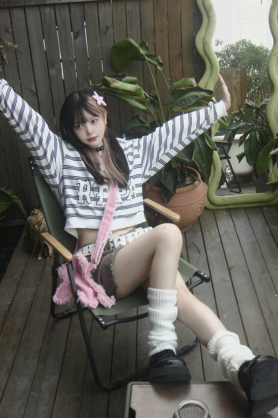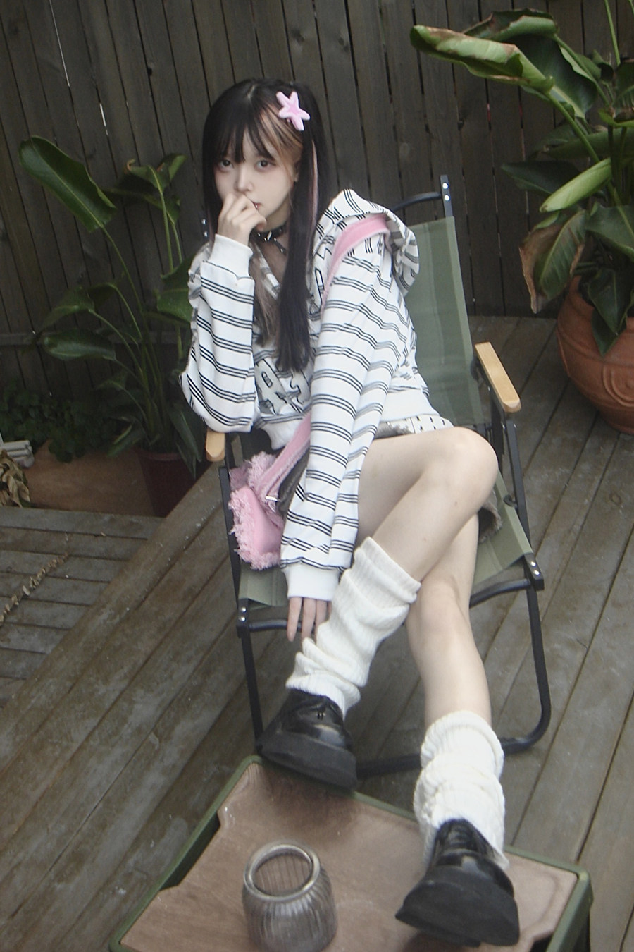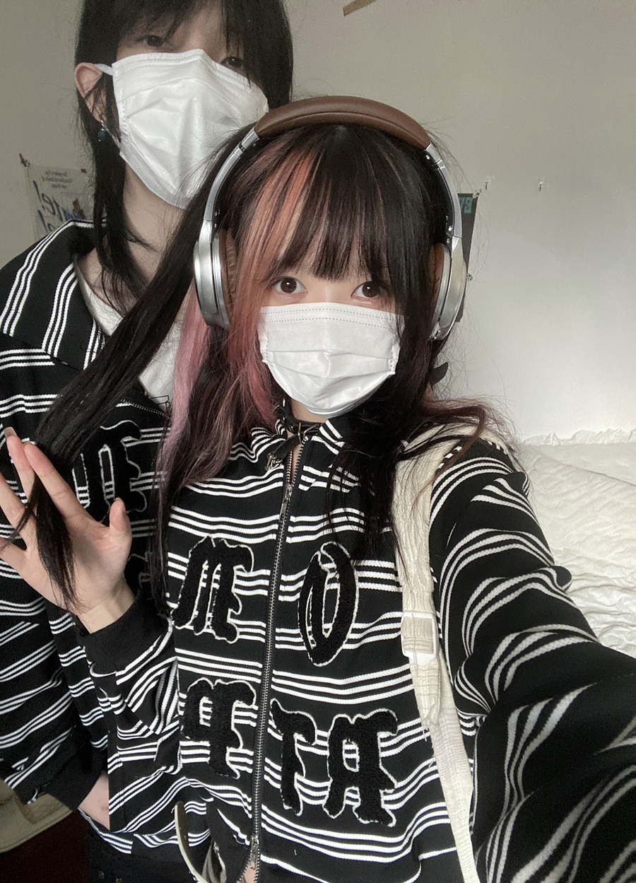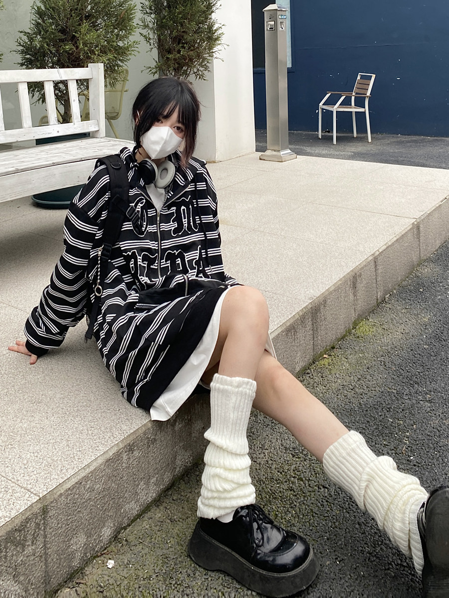 Takeoff咖哩秋新款條紋連帽開衫衛衣短外套寬鬆潮ins街頭情侶bf