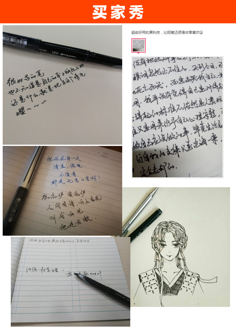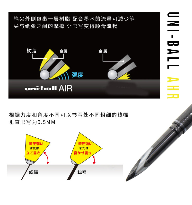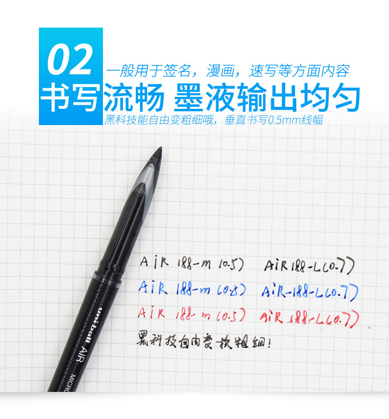 三菱中性筆AIR日本uni黑科技自由控墨UBA-188草圖簽字筆0.5簽字筆