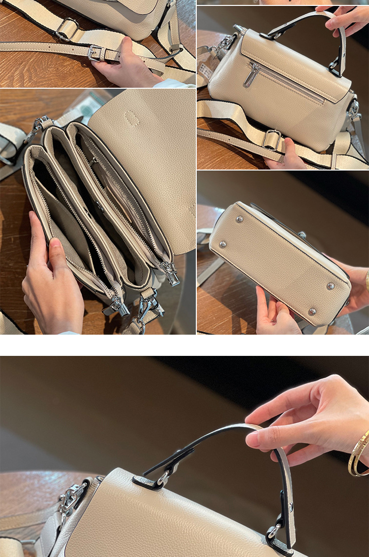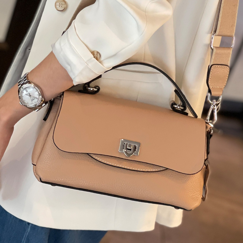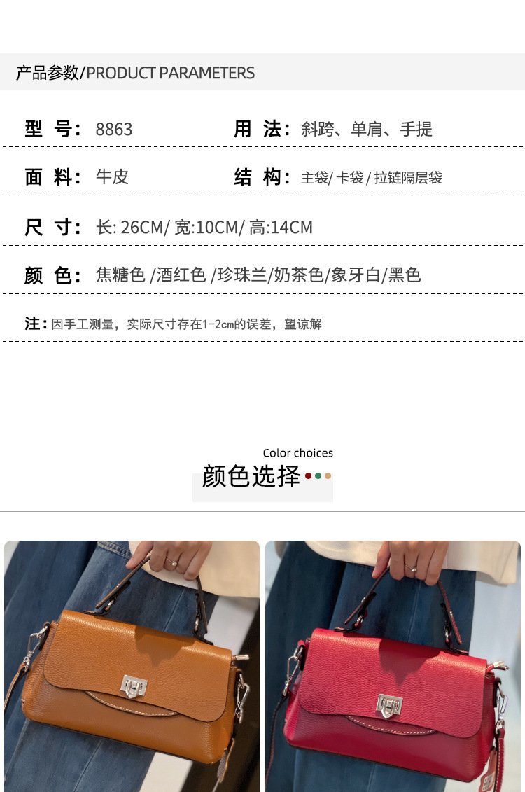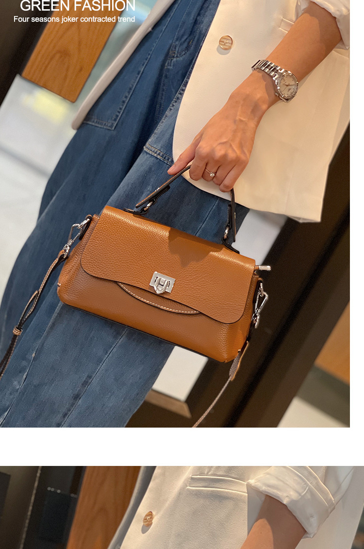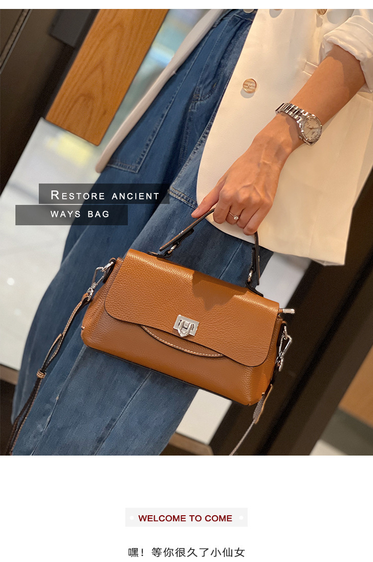 批发真皮时尚女包小众设计百搭手提斜挎包头层牛皮大容量翻盖包