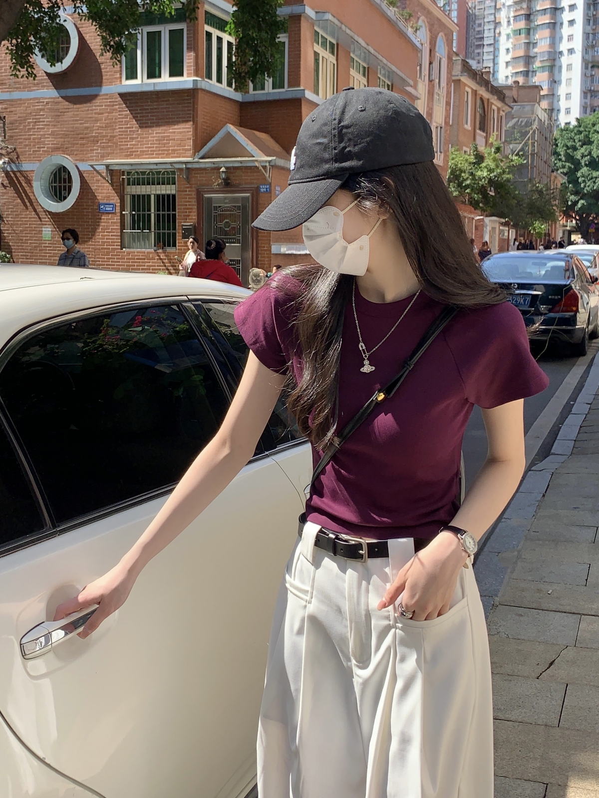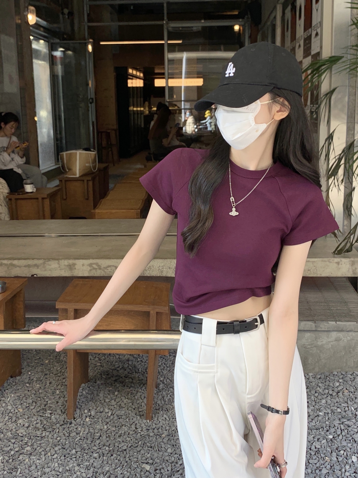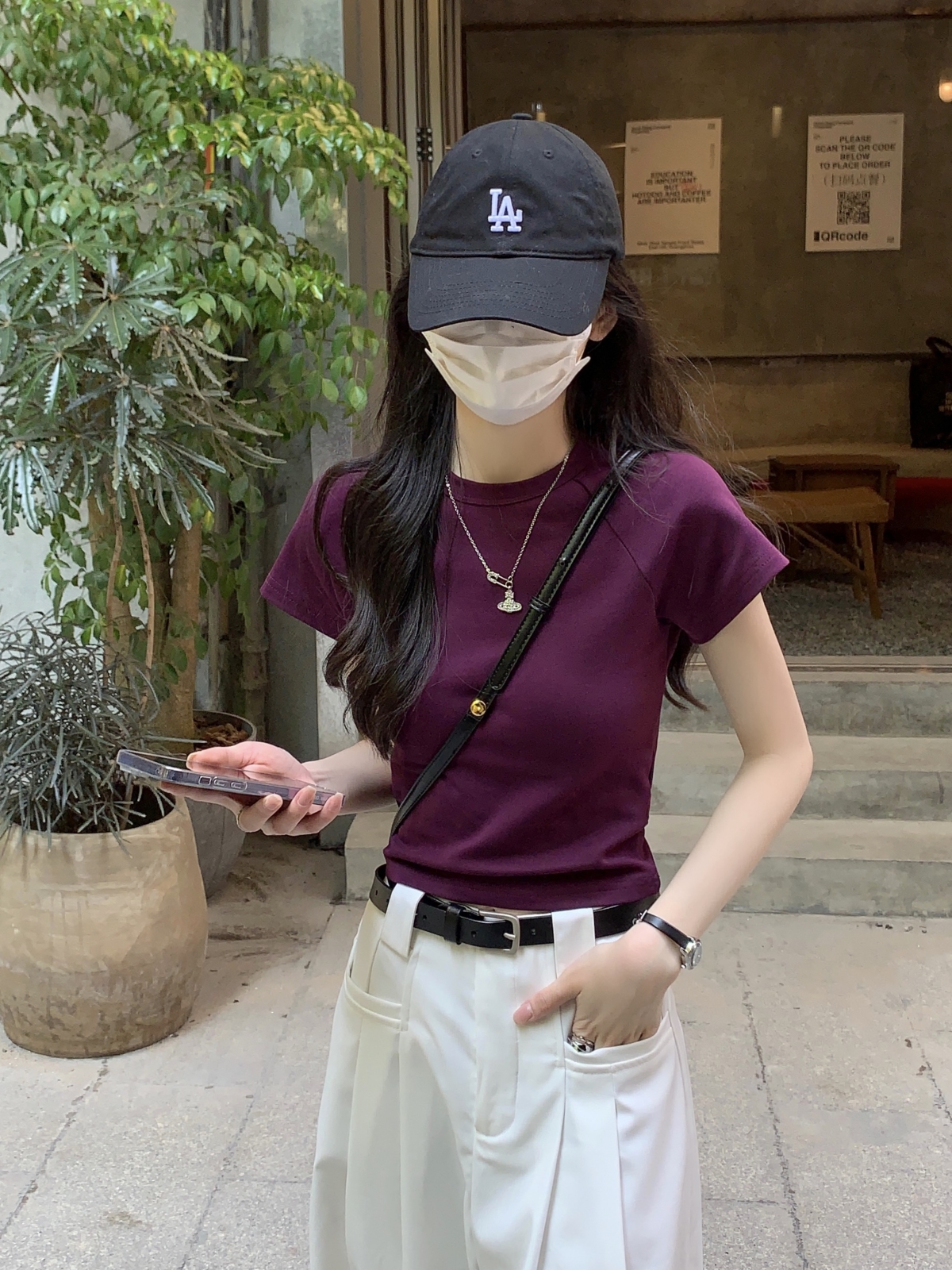 紫色修身短袖正肩T恤女2023新款夏季設計感小眾辣妹短款顯瘦上衣