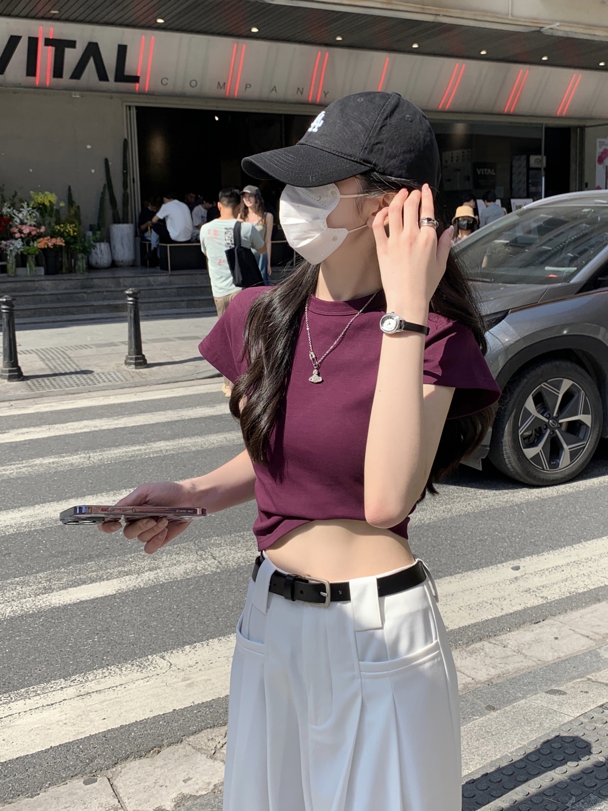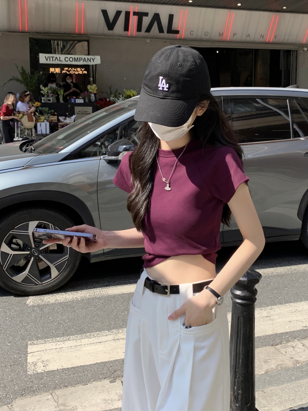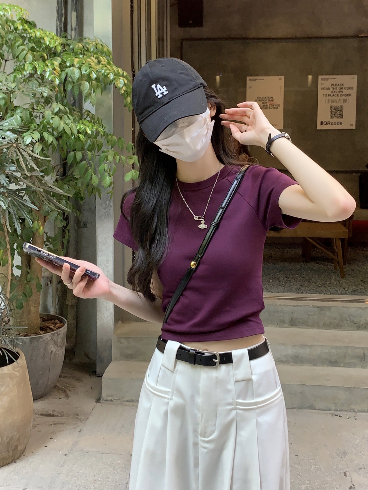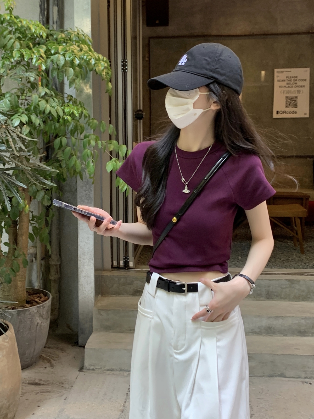 紫色修身短袖正肩T恤女2023新款夏季設計感小眾辣妹短款顯瘦上衣