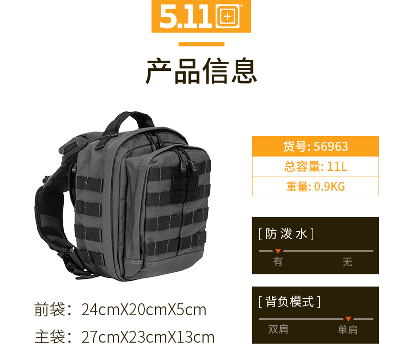 5.11衝鋒6號單肩包 511斜肩包戰術突擊包斜挎包胸包裝備包 56963