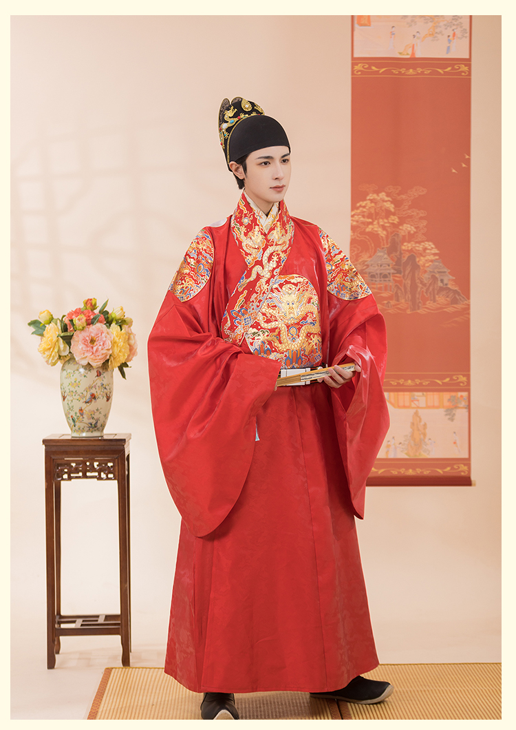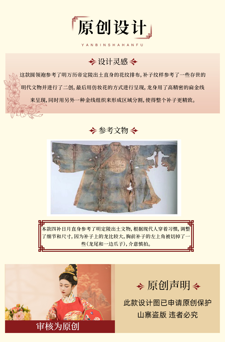 【硯濱紗】四補直身女明圓領四補圓領袍男明制漢服