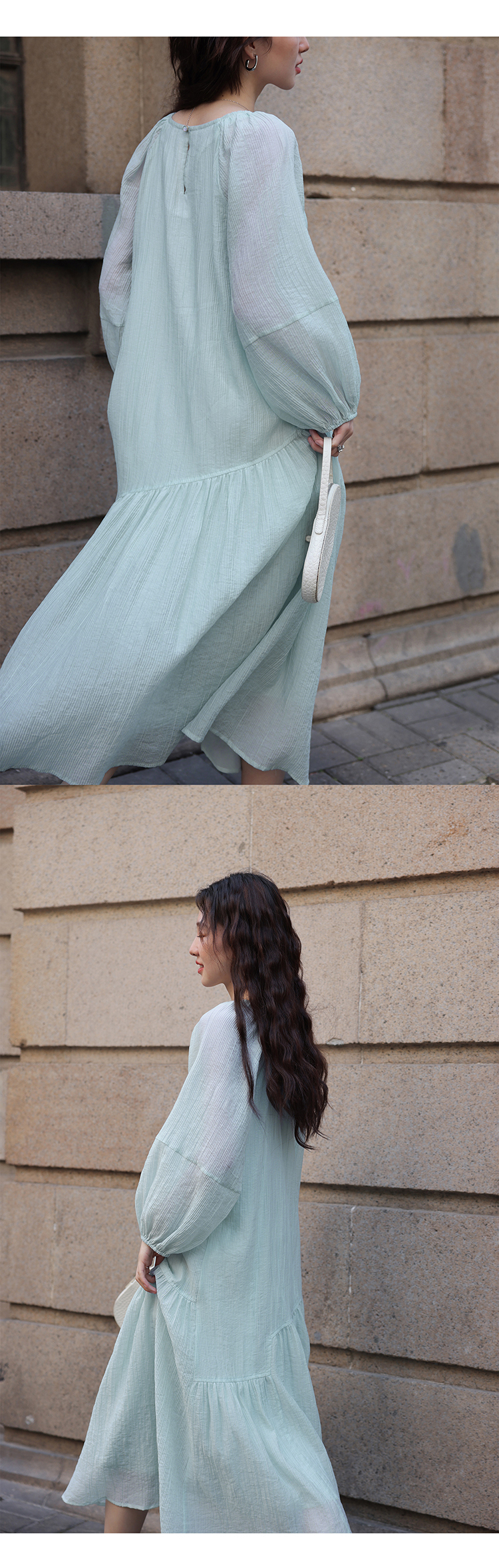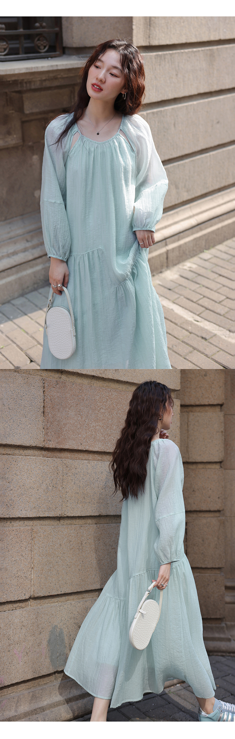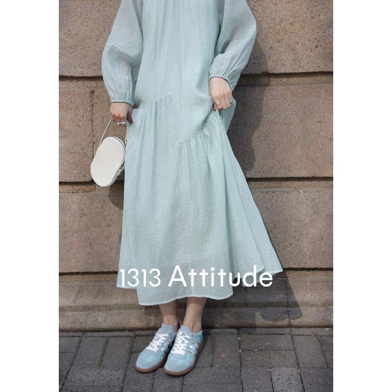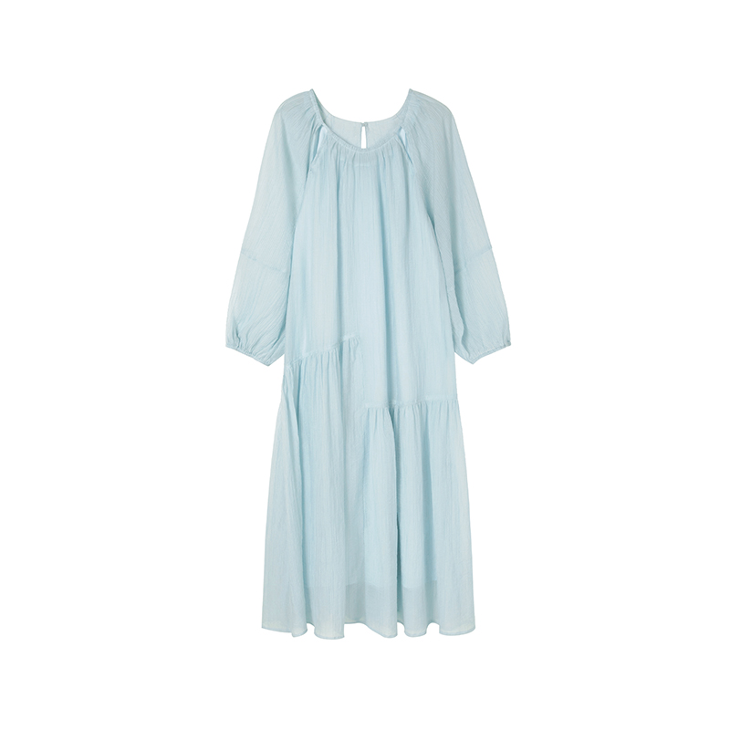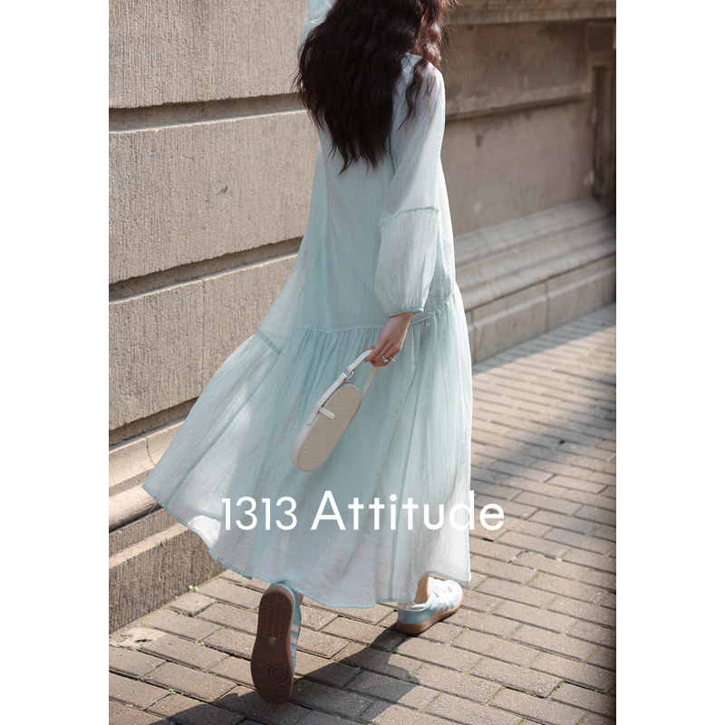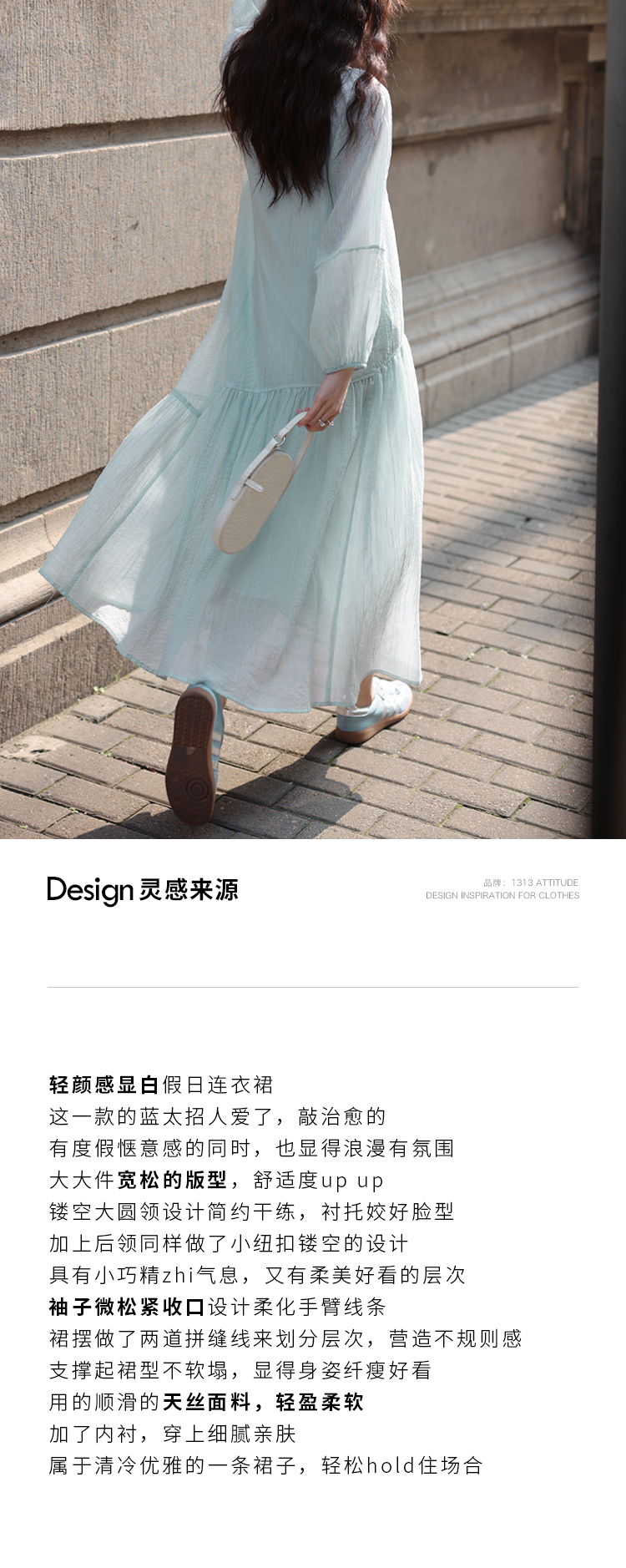 1313治癒氛圍感!66%天絲洋裝度假風顯白皮冰川藍長裙