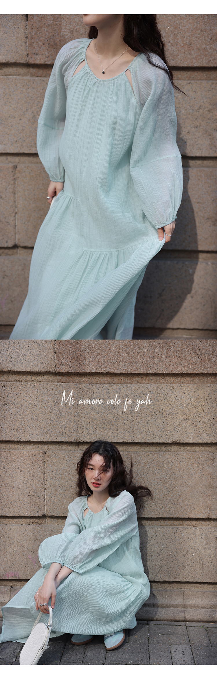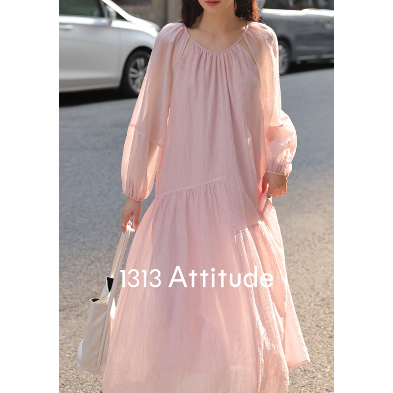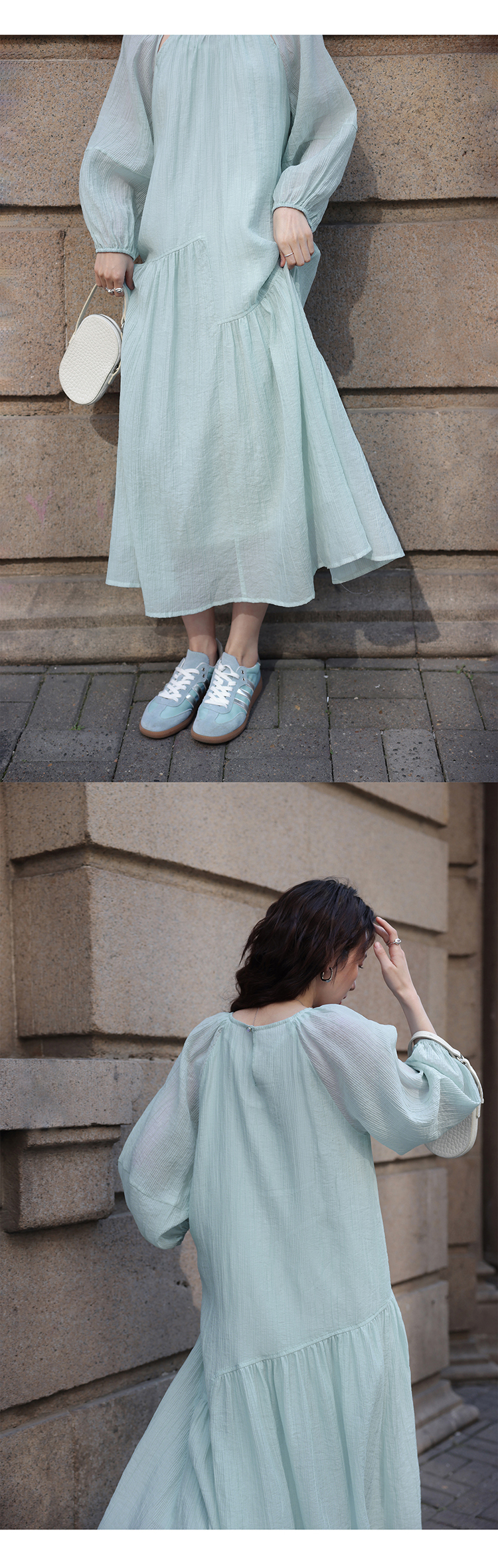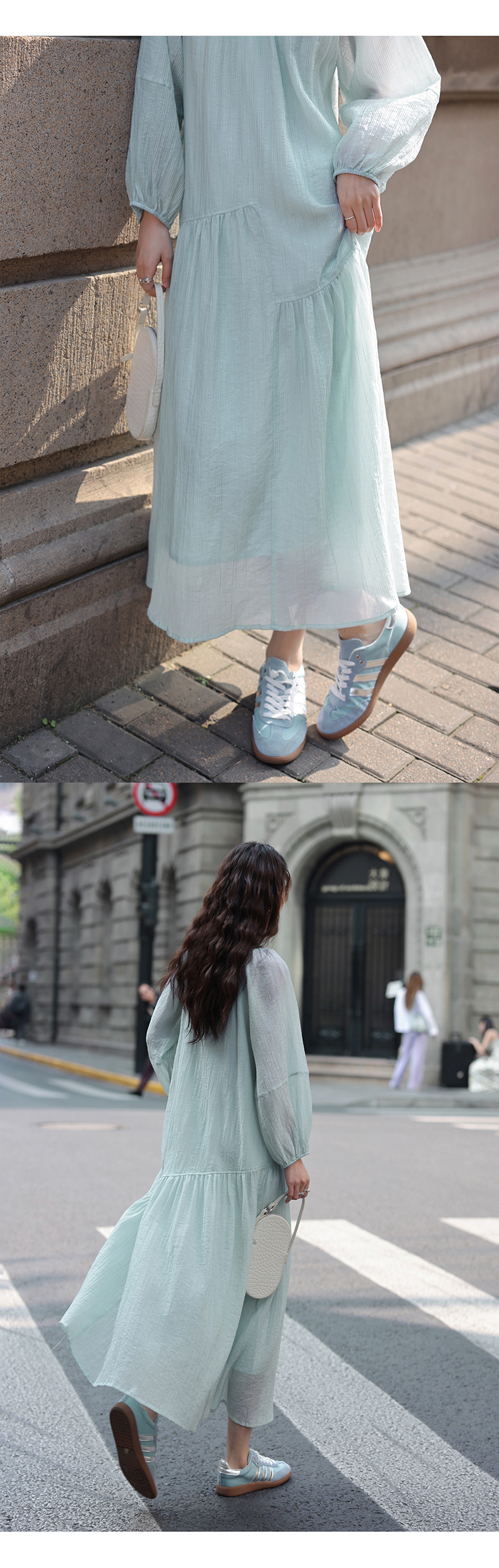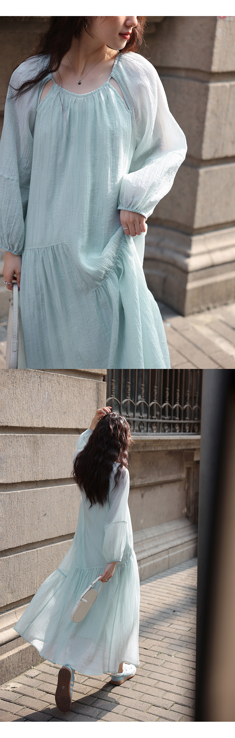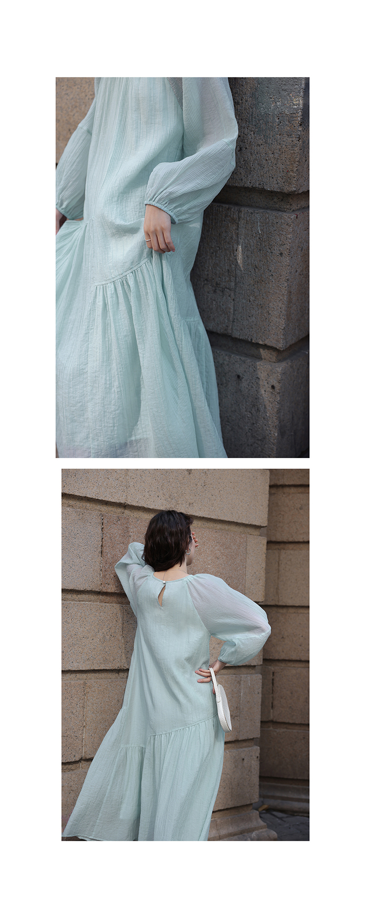 1313治癒氛圍感!66%天絲洋裝度假風顯白皮冰川藍長裙