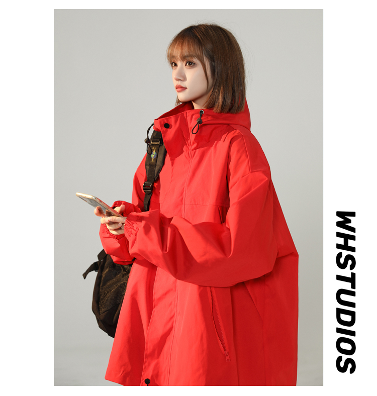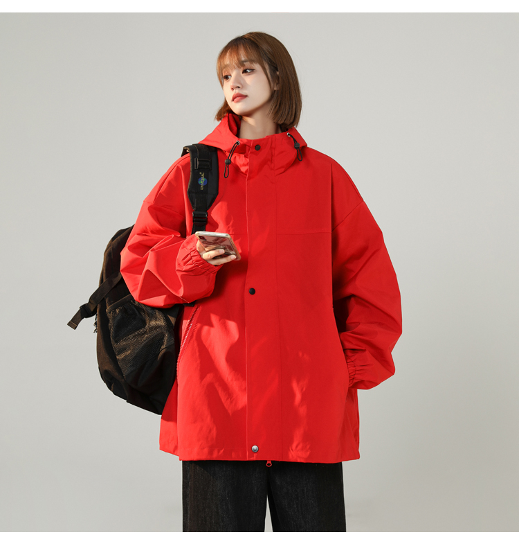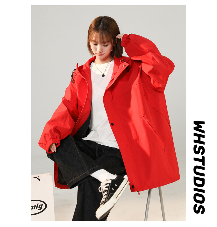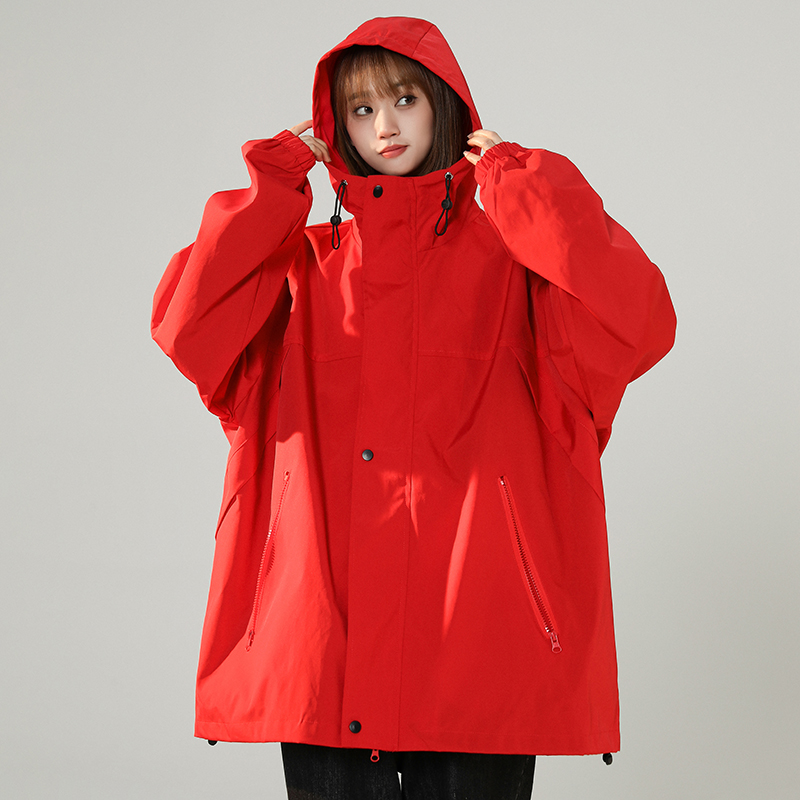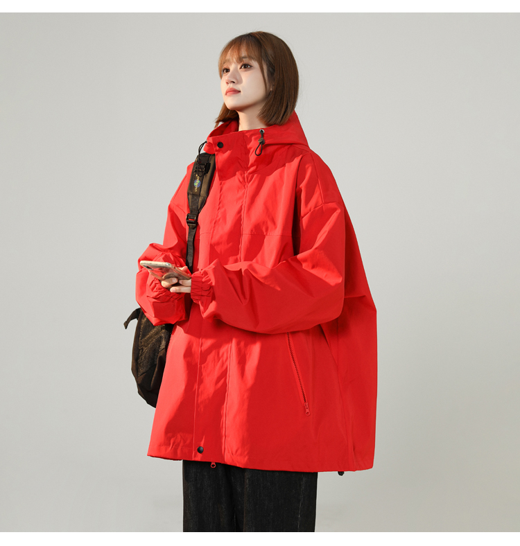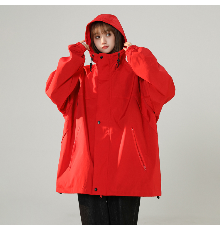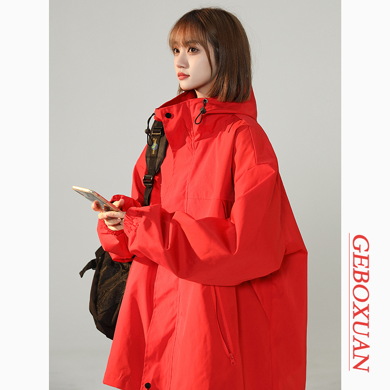 連帽衝鋒衣女今年流行漂亮春季2023兔年紅色大尺碼mm胖潮外套夾克