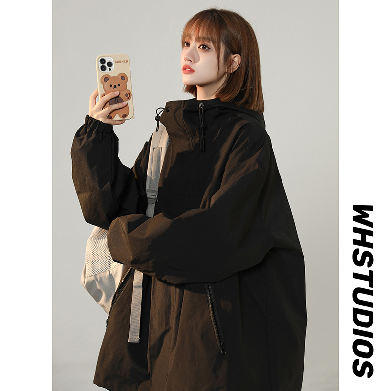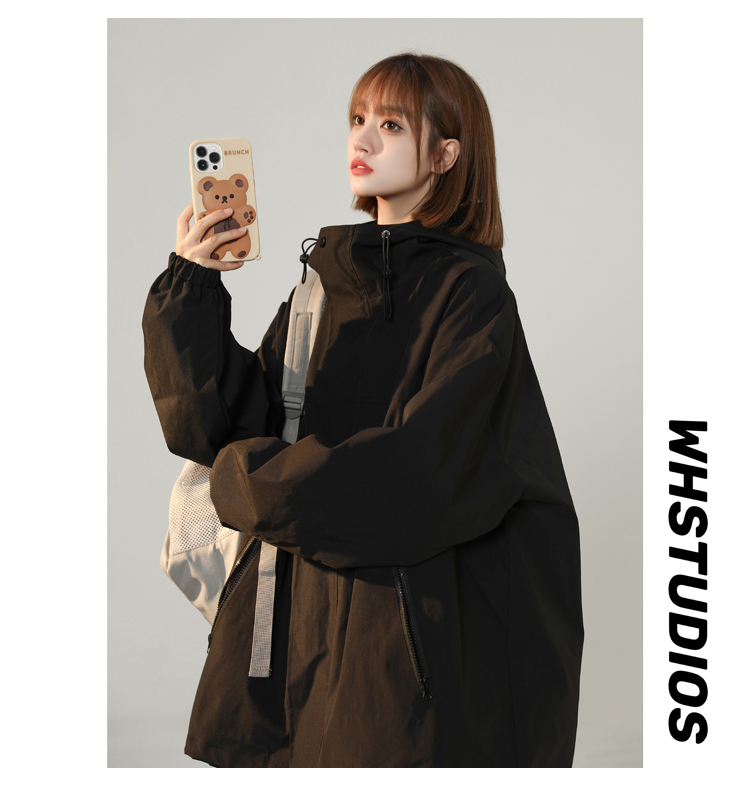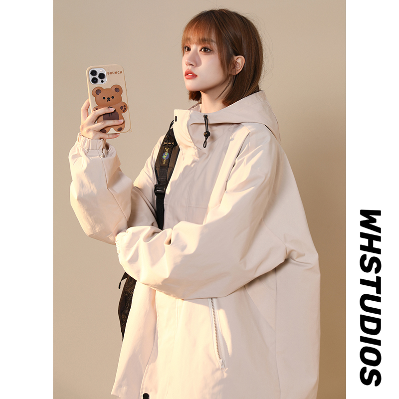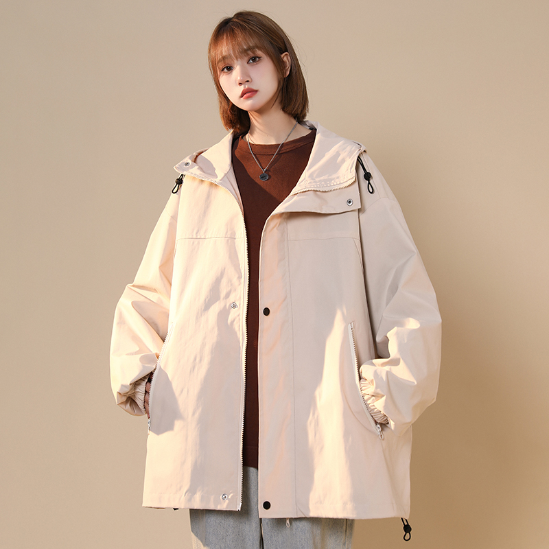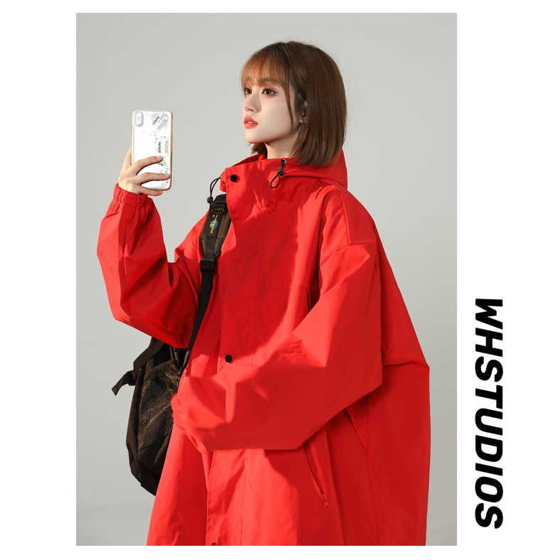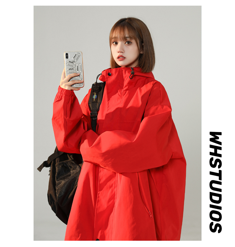 連帽衝鋒衣女今年流行漂亮春季2023兔年紅色大尺碼mm胖潮外套夾克