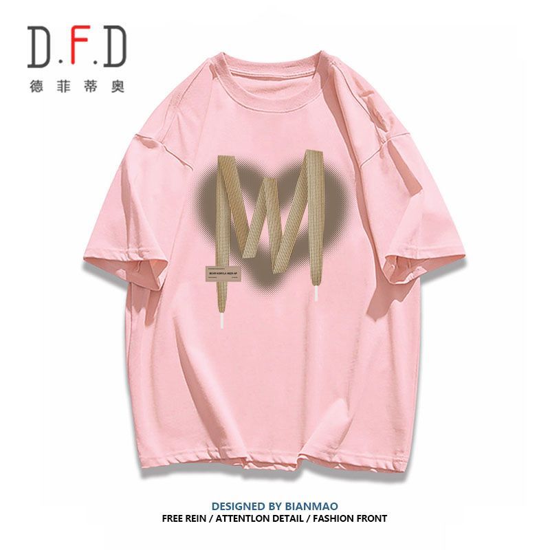 美式復古正肩短袖t恤女夏2023新款小眾設計感純棉多巴胺穿搭上衣