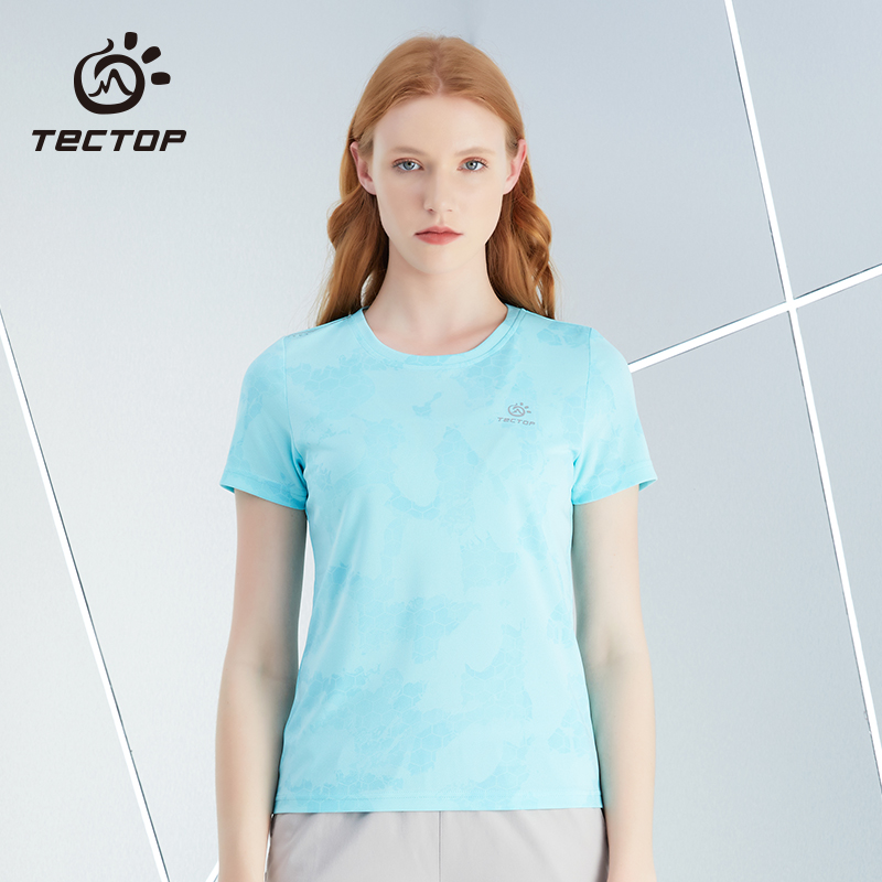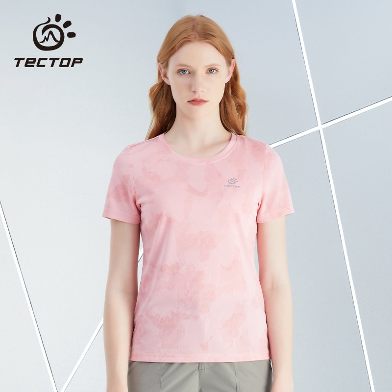 探拓新款網眼透氣彈力寬鬆時尚速乾衣輕薄徒步登山短袖女士