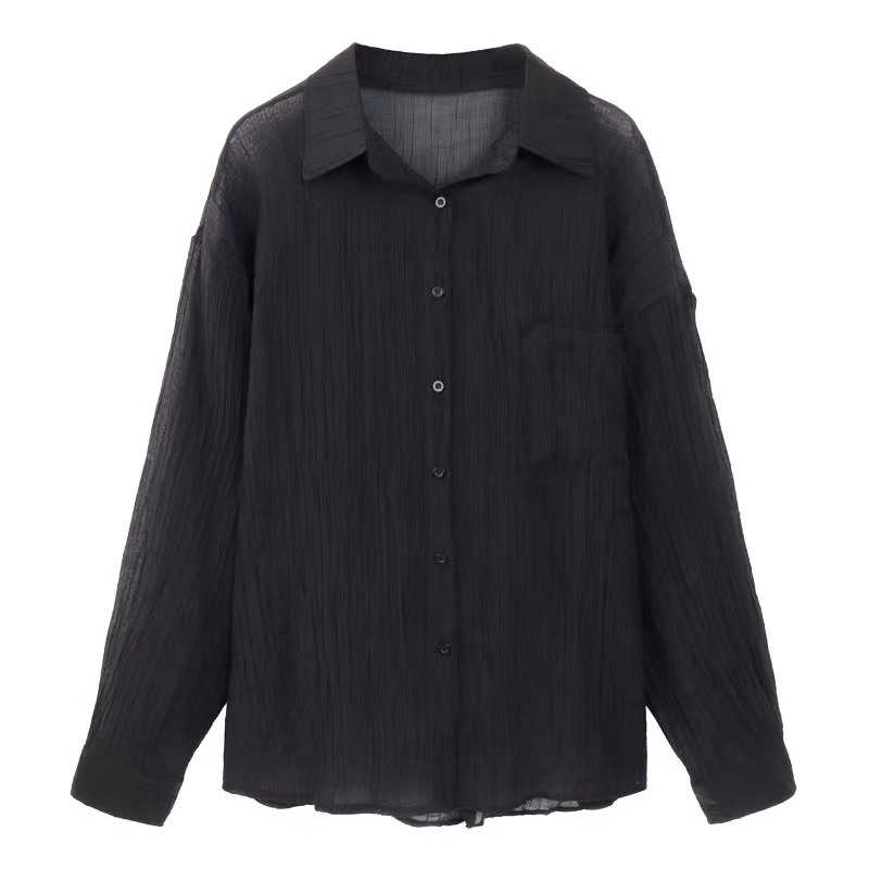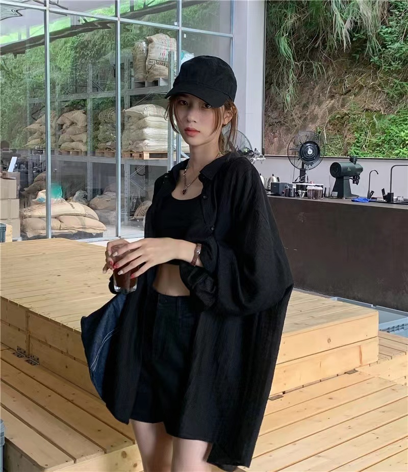 黑色設計感防嗮襯衫外套女春秋2023大尺碼胖mm寬鬆顯瘦外搭長袖上衣