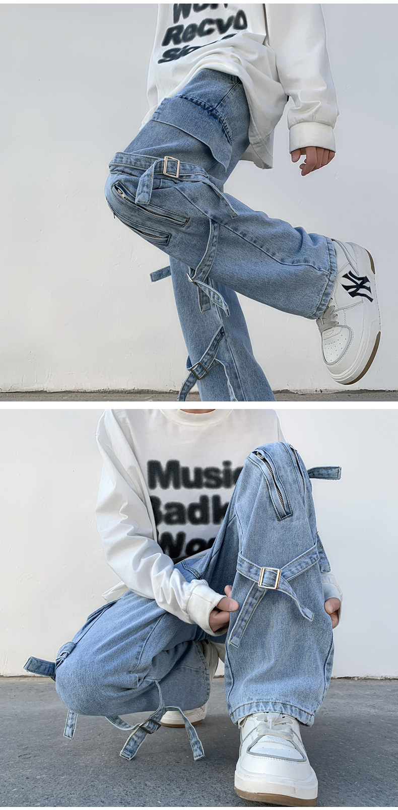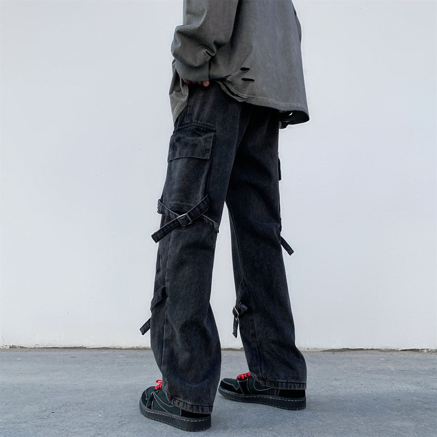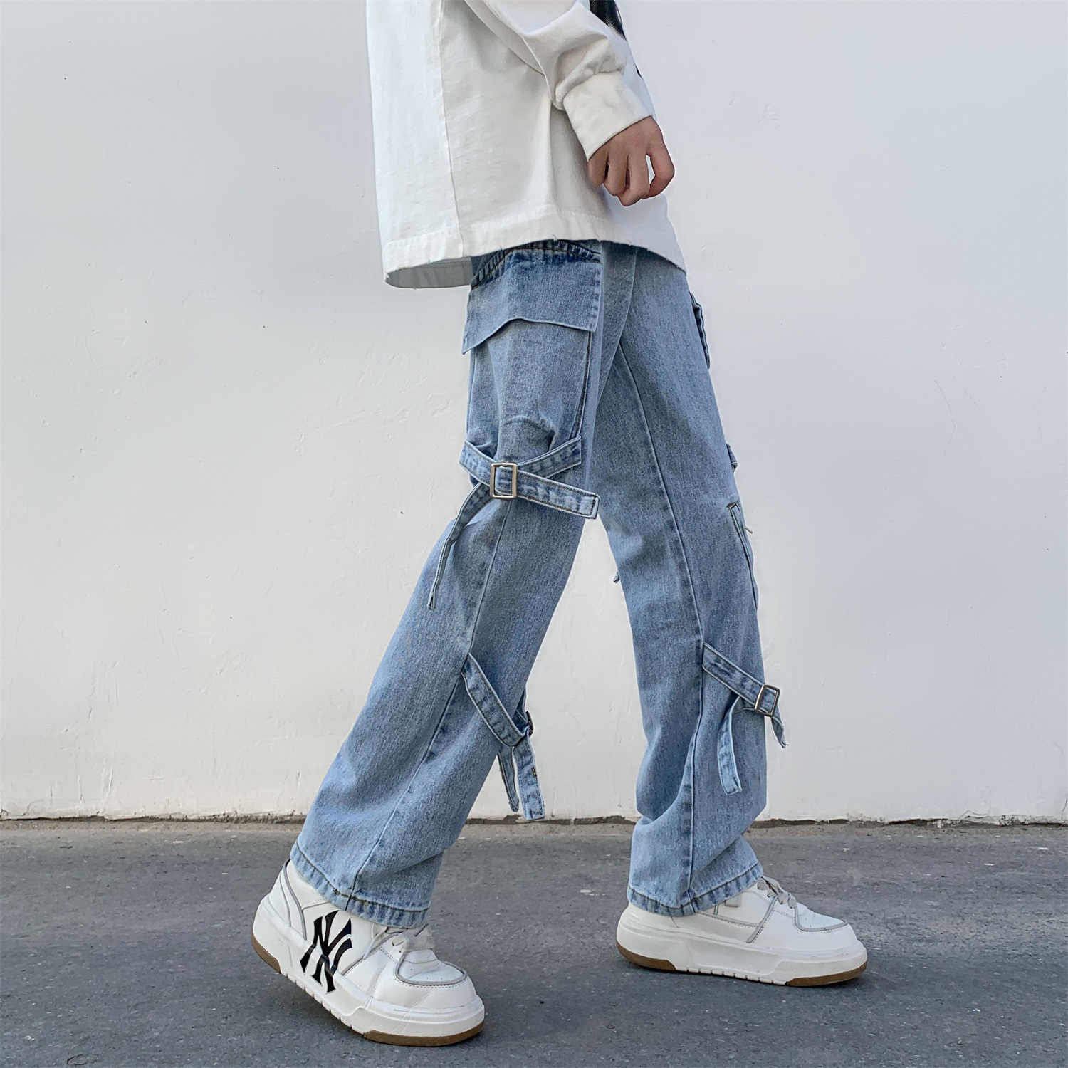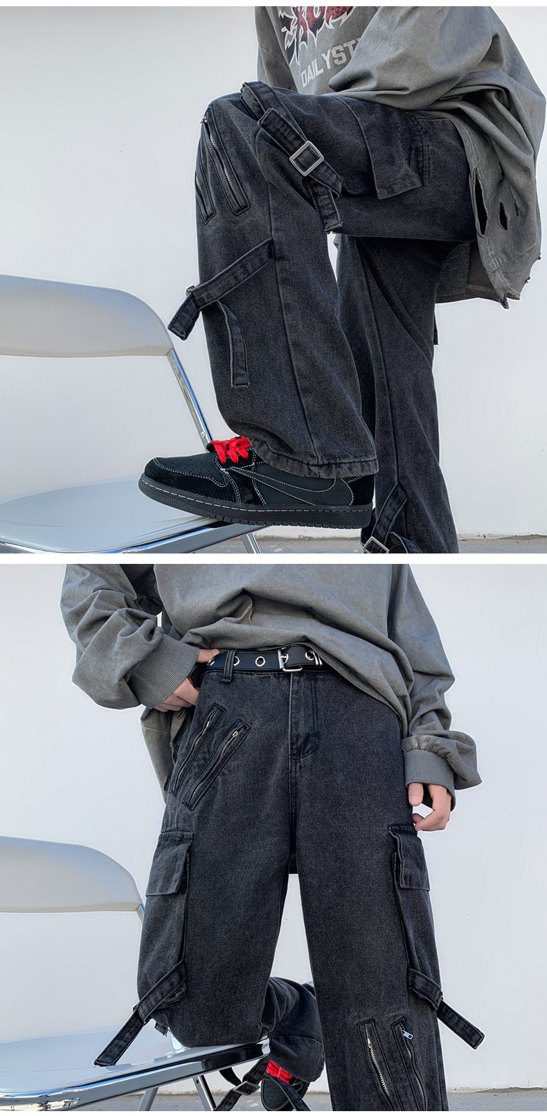 美式hiphop褲子潮高街vibe工裝褲ulzzang設計感復古牛仔褲女春秋