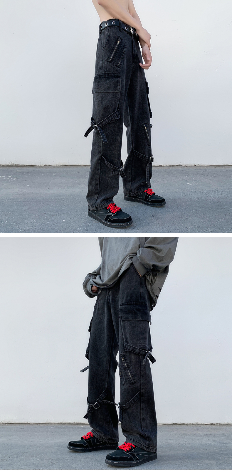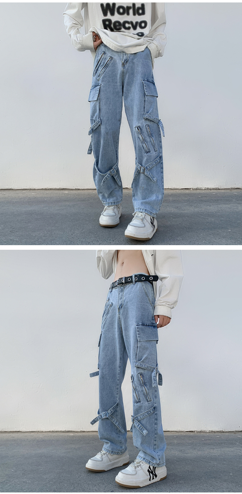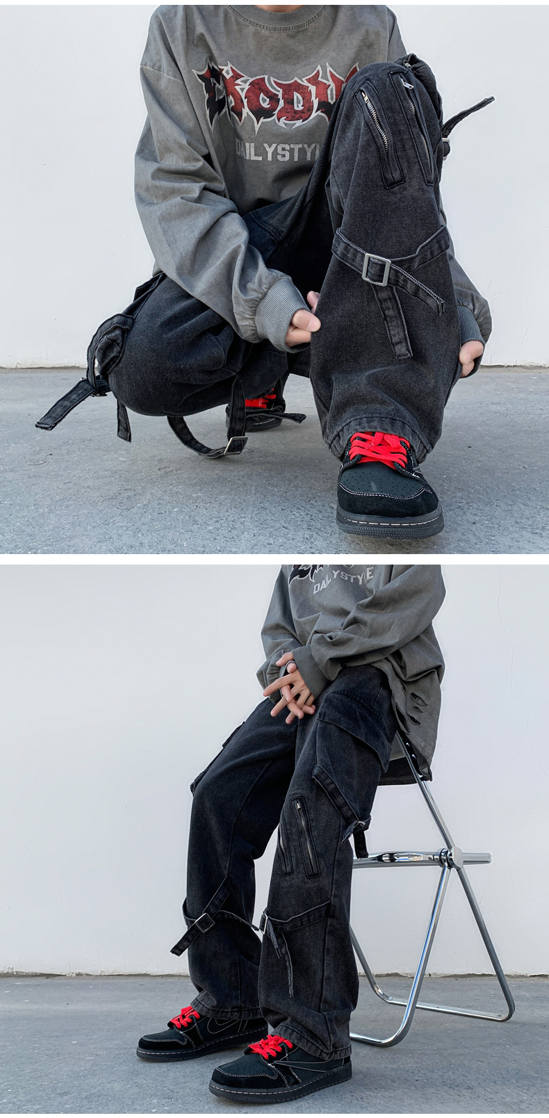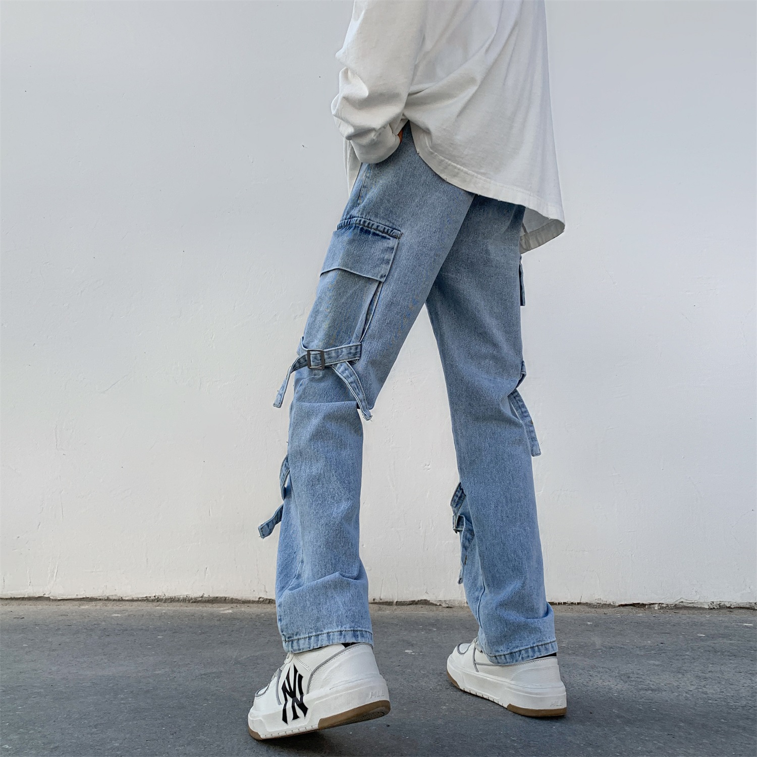 美式hiphop褲子潮高街vibe工裝褲ulzzang設計感復古牛仔褲女春秋