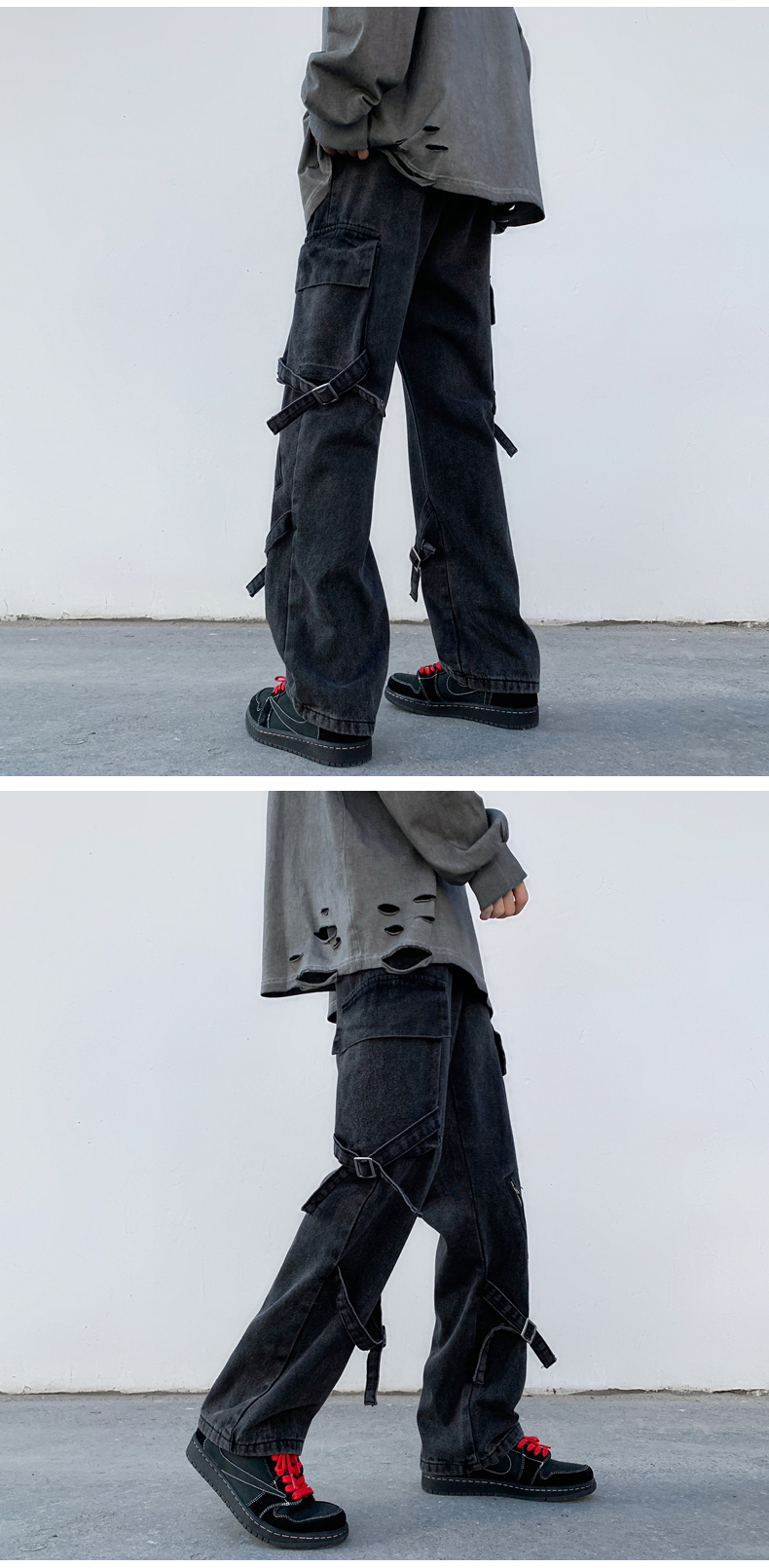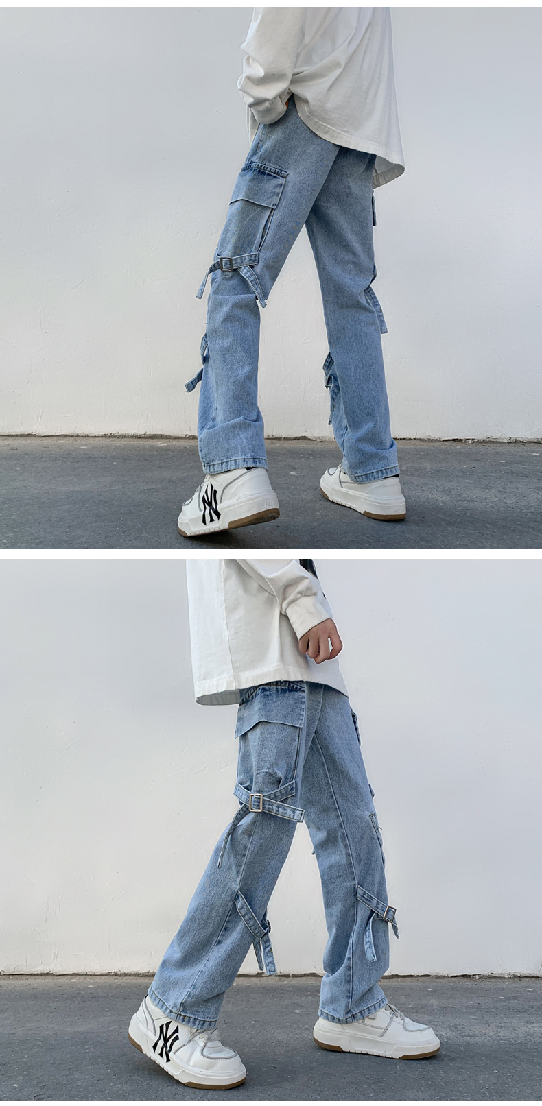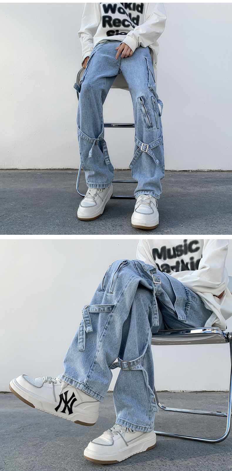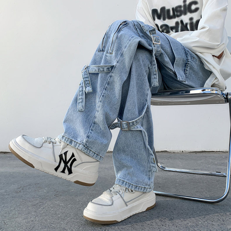 美式hiphop褲子潮高街vibe工裝褲ulzzang設計感復古牛仔褲女春秋