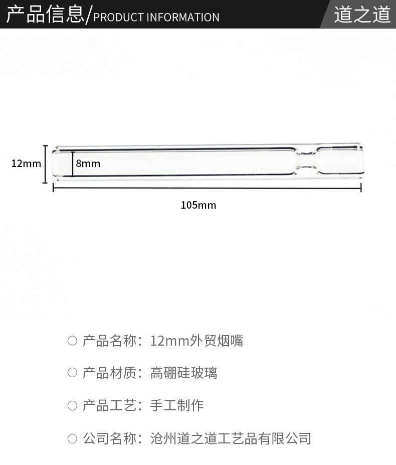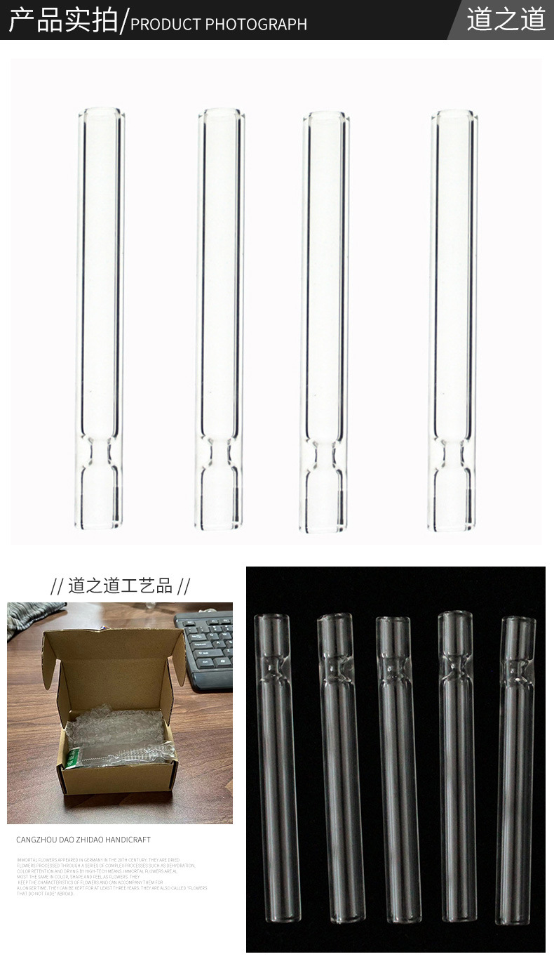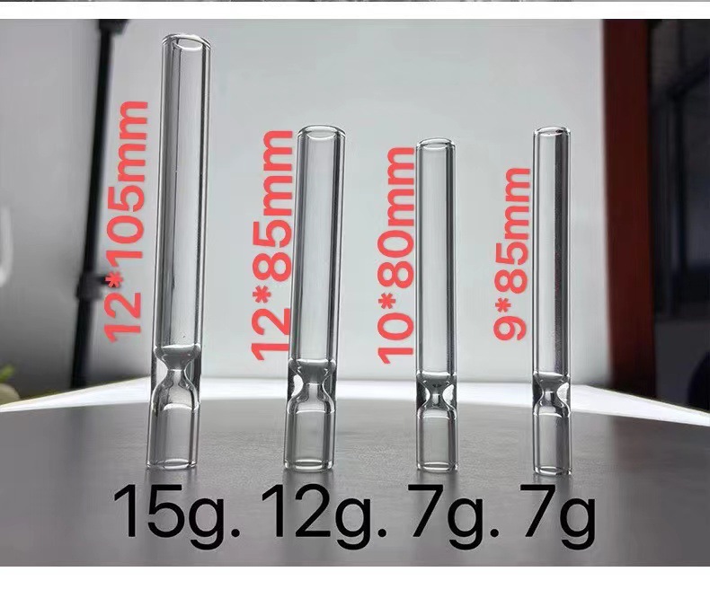 跨境现货透明玻璃烟管烟嘴 缩口高硼硅烟斗直管烟嘴 12mm外贸烟嘴